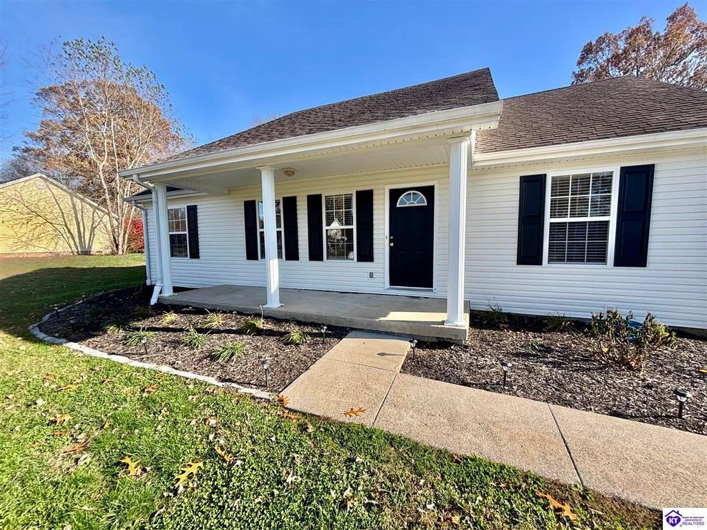 Welcome to 100 Rustic Haven Dr. in Campbellsville, Kentucky. You will undoubtedly appreciate the amenities this property has to offer. The newly painted interior and new flooring are significant advantages. The kitchen's woodwork is particularly noteworthy. The charming front porch leads into a spacious den/living area featuring beautiful vaulted ceilings. The master split floor plan is a standout feature. A notable luxury is that the primary bedroom boasts tray ceilings, and the primary en-suite bathroom includes two walk-in closets and a linen closet. The tile flooring in the bathroom is an added touch. The private deck area and nicely sized yard provide ample space for outdoor entertaining or relaxation. Located in the heart of Kentucky! This beautiful property also features a well-appointed laundry room, conveniently accessible from the one-car garage. There are numerous attributes to admire in this exceptional property.Located in the Heart of Kentucky, this residence is few miles from Green River Lake and offers convenient access to shopping, restaurants, boutiques, a hospital, and the Campbellsville Country Club. Data believed to be correct but not guaranteed. Buyer to verify data prior to offer.