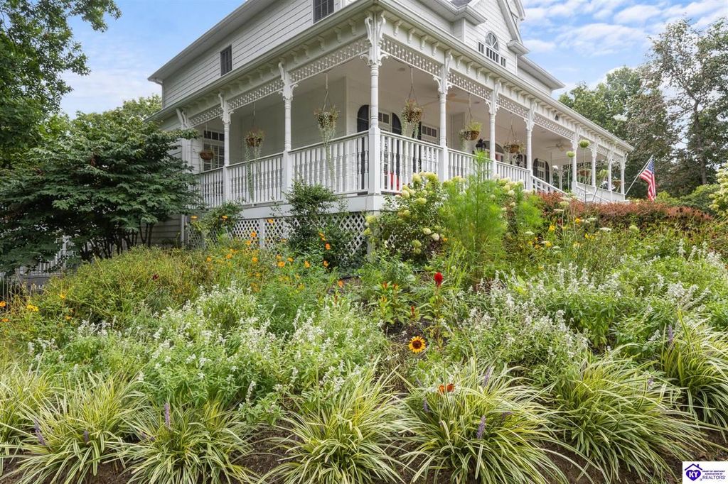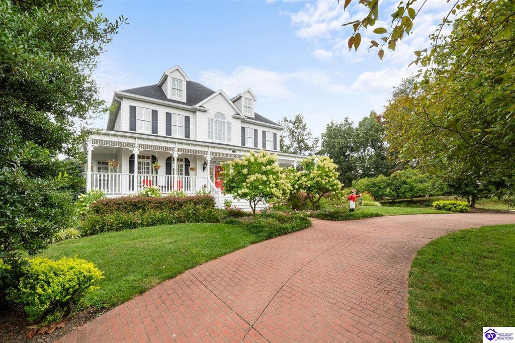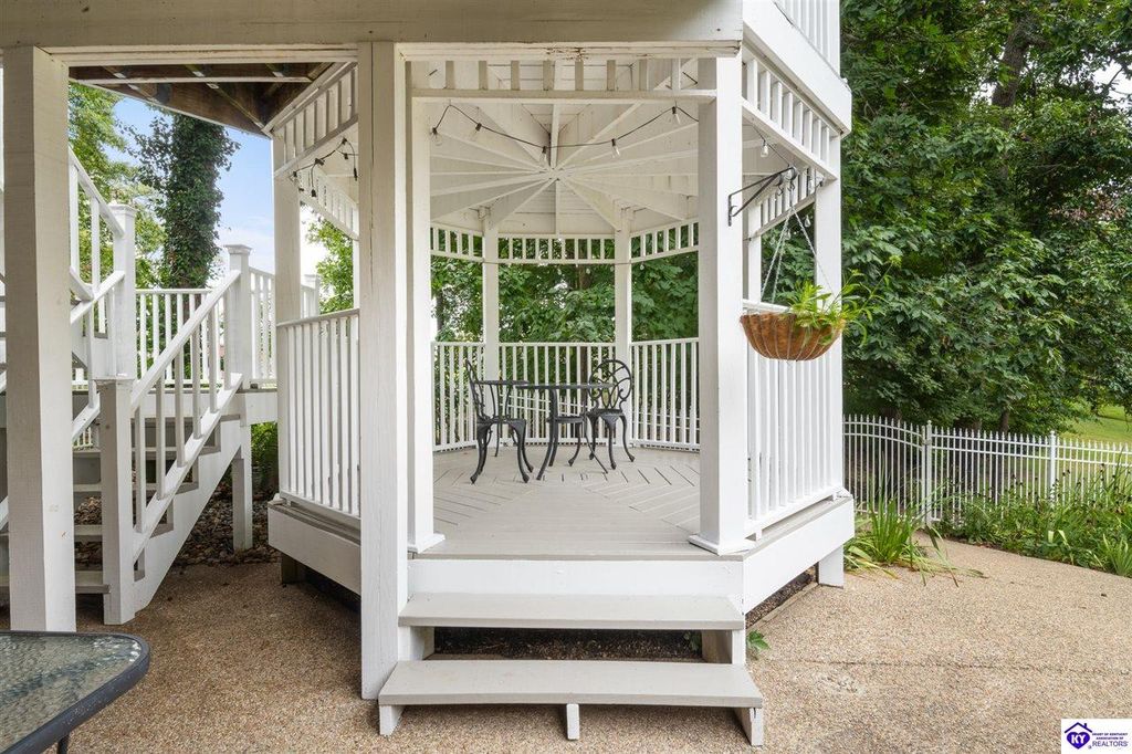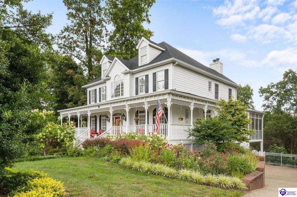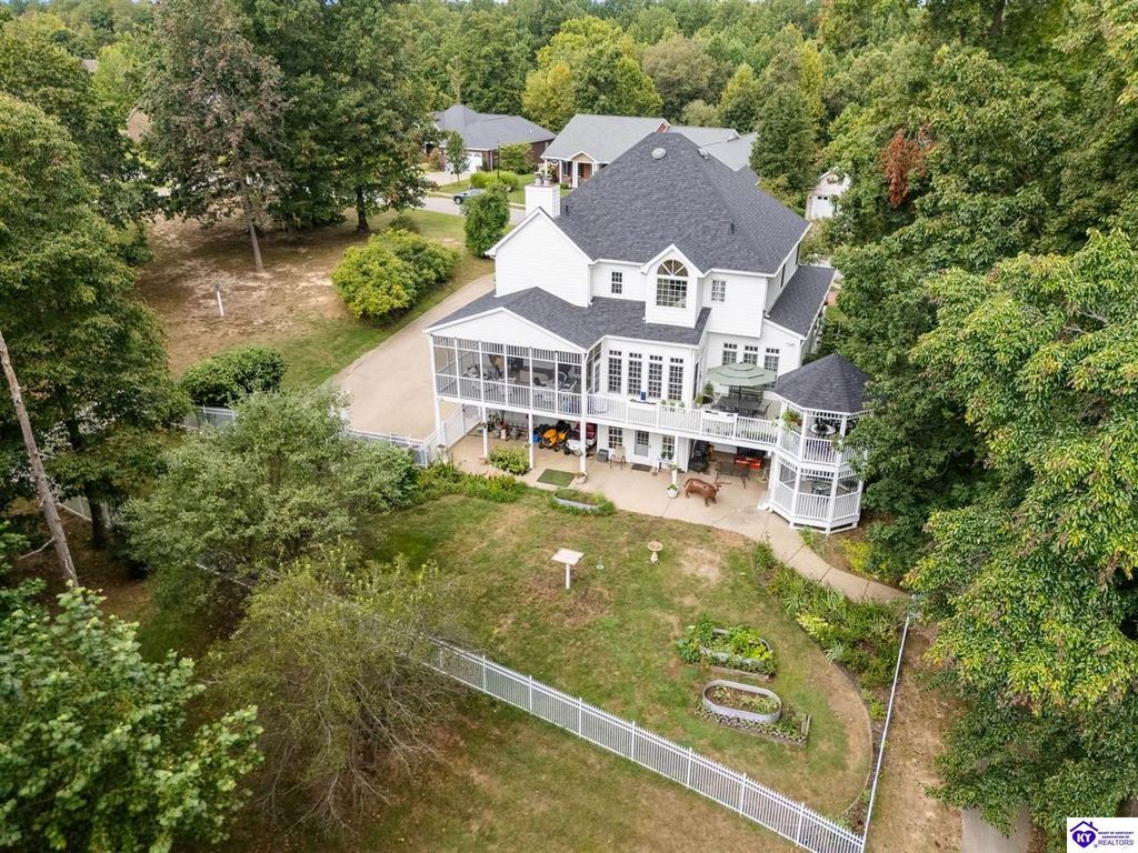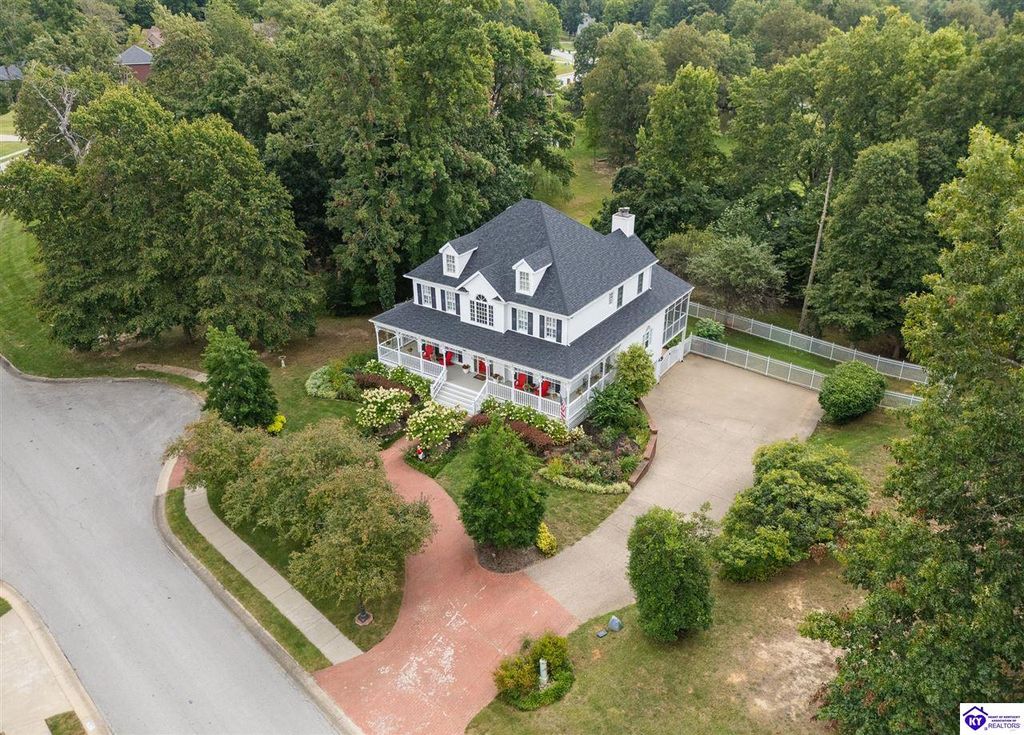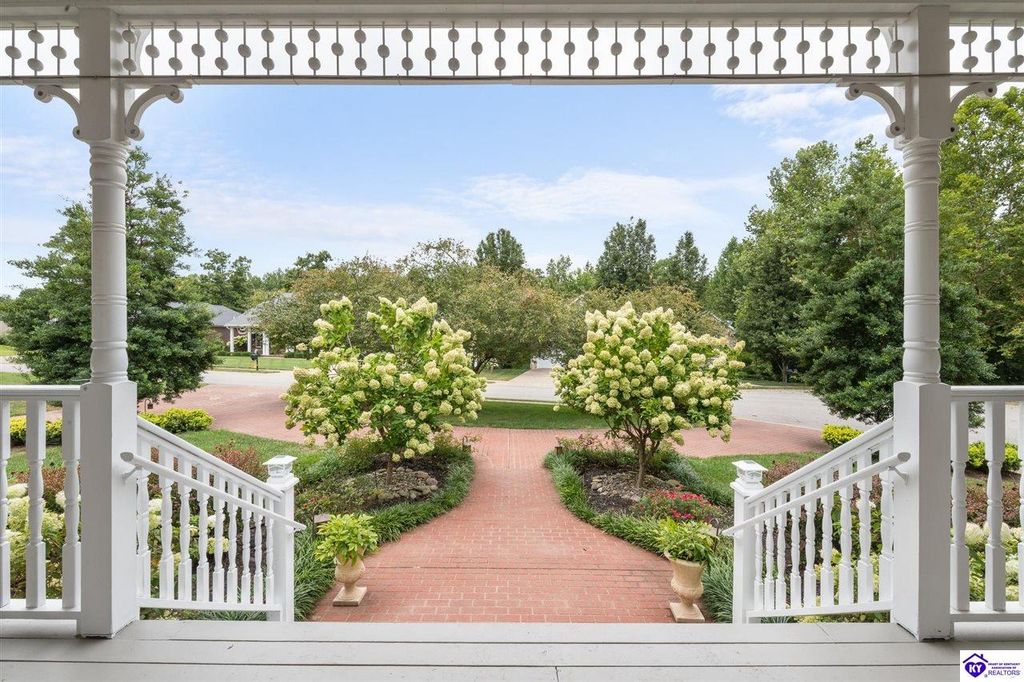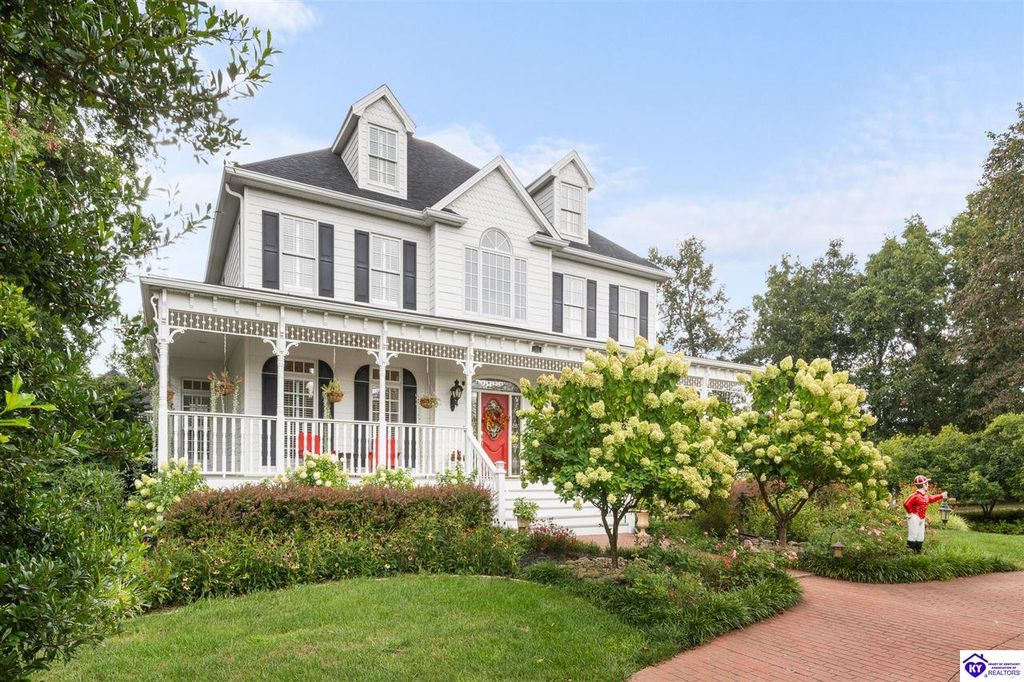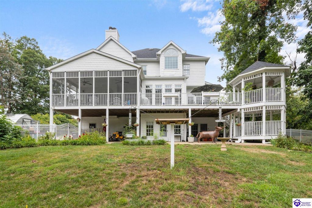 Southern Charm Meets Modern Luxury on Heartland Golf Course. Welcome to a show-stopping custom-built home where timeless Southern elegance and modern convenience blend seamlessly. Nestled on a meticulously landscaped lot overlooking the prestigious Heartland Golf Course, this stunning two-story residence boasts unparalleled curb appeal, complete with 3/4 wrap-around porches and grand double gazebos. Step inside the soaring two-story foyer and immediately feel this home's sophistication. The all-maple wood office with coffered ceilings sets the tone for refined living, while the open concept great room offers lighted built-ins, a cozy window bench, coffered ceilings and a fireplace - all flowing effortlessly onto the expansive back deck with screened porch and double-stacked gazebos for year-round enjoyment. The kitchen features a large island, breakfast bar, custom cabinets, stainless-steel appliances and floor to ceiling windows. The formal dining room opens to a charming front sitting room - perfect for entertaining. On the second level, the luxurious master retreat is a true sanctuary, featuring vaulted and beamed ceilings, hardwood floors, custom built-in bookcases/entertainment center, and a completely remodeled en-suite bath. Enjoy the spa-in spired bathroom, boasting a massive walk-in tiled shower, dual vanities, a two-person soaking tub, private water closet, and walk-in closet. Also on the 2nd level are two additional bedrooms (one with a fireplace), hardwood flooring, ceiling fans, double closets, and Jack & Jill bathroom with double vanities. The lower level includes a private in-law suite with its own kitchen, full bath, and living room. With direct access to the covered patio, lower gazebo, and gardens, this suite is ideal for guests or multi-generational living. Every detail of this home has been thoughtfully designed, from the plantation shutters and triple crown molding to the lush, fenced yard. This is not just a home - it's a lifestyle. YOUR rare opportunity to own one of the most beautiful properties in the area.
