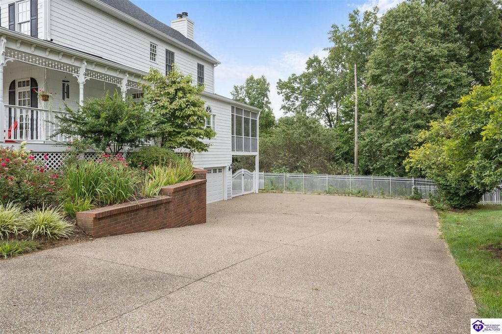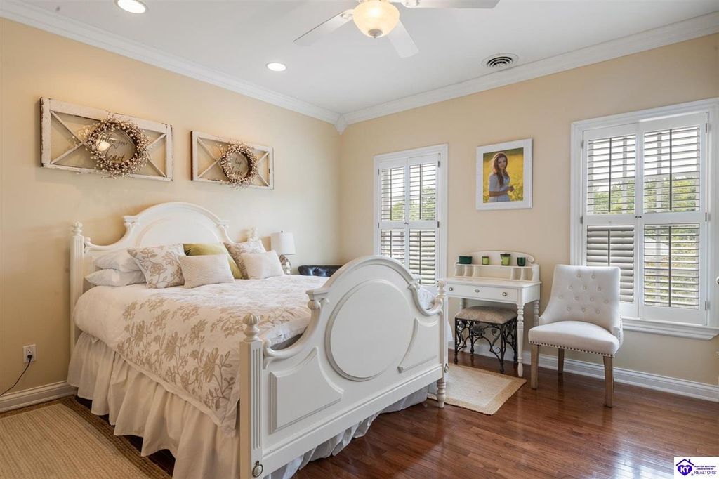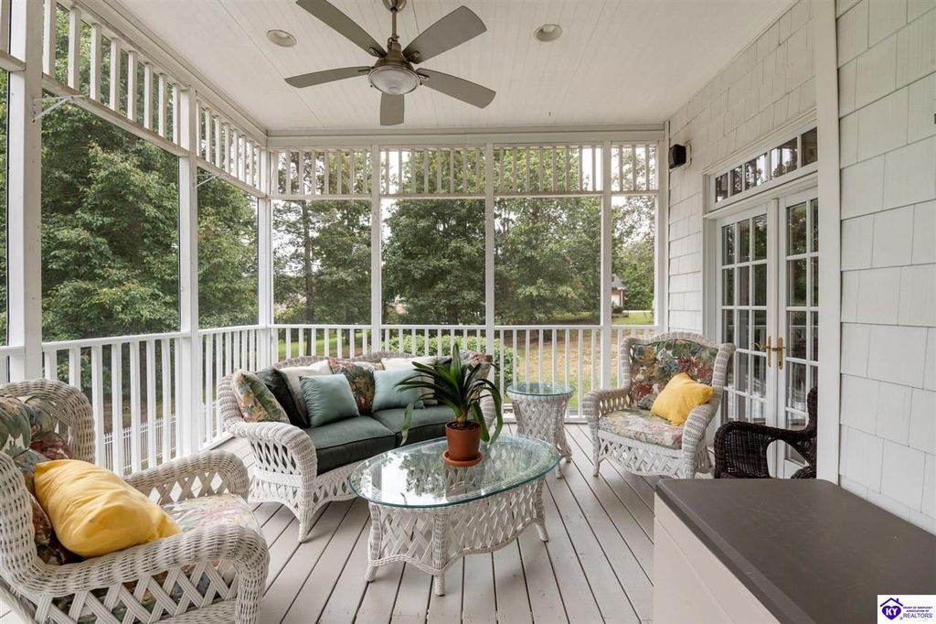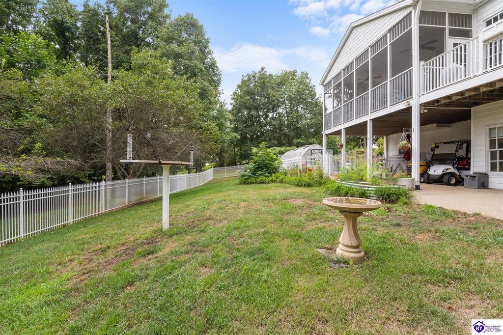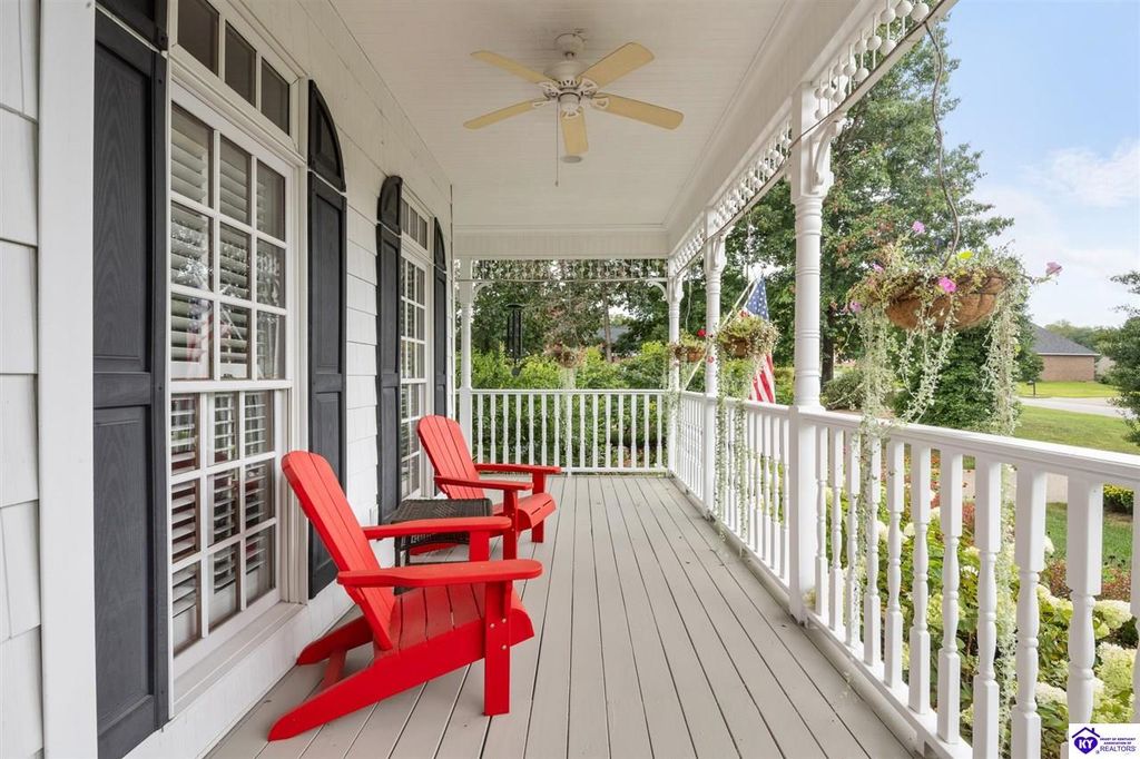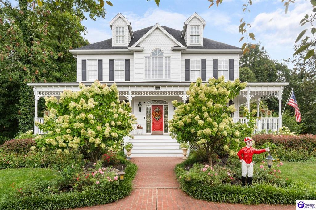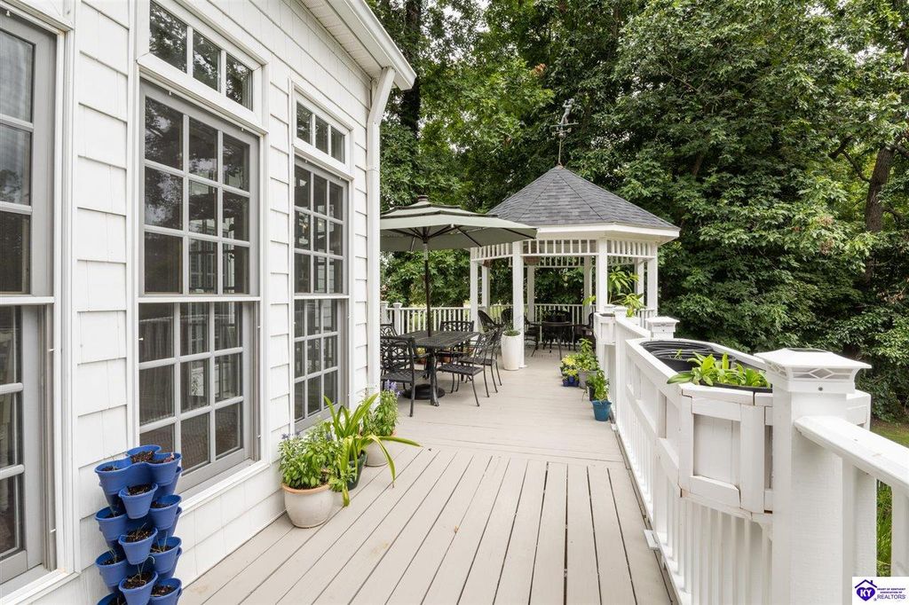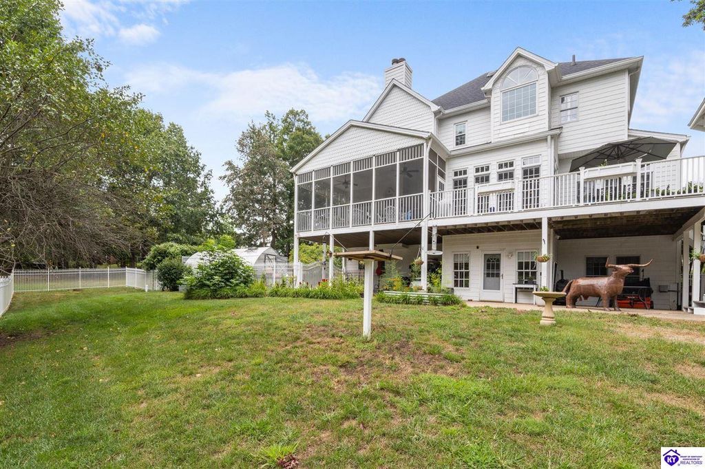 Southern Charm Meets Modern Luxury on Heartland Golf Course. Welcome to a show-stopping custom-built home where timeless Southern elegance and modern convenience blend seamlessly. Nestled on a meticulously landscaped lot overlooking the prestigious Heartland Golf Course, this stunning two-story residence boasts unparalleled curb appeal, complete with 3/4 wrap-around porches and grand double gazebos. Step inside the soaring two-story foyer and immediately feel this home's sophistication. The all-maple wood office with coffered ceilings sets the tone for refined living, while the open concept great room offers lighted built-ins, a cozy window bench, coffered ceilings and a fireplace - all flowing effortlessly onto the expansive back deck with screened porch and double-stacked gazebos for year-round enjoyment. The kitchen features a large island, breakfast bar, custom cabinets, stainless-steel appliances and floor to ceiling windows. The formal dining room opens to a charming front sitting room - perfect for entertaining. On the second level, the luxurious master retreat is a true sanctuary, featuring vaulted and beamed ceilings, hardwood floors, custom built-in bookcases/entertainment center, and a completely remodeled en-suite bath. Enjoy the spa-in spired bathroom, boasting a massive walk-in tiled shower, dual vanities, a two-person soaking tub, private water closet, and walk-in closet. Also on the 2nd level are two additional bedrooms (one with a fireplace), hardwood flooring, ceiling fans, double closets, and Jack & Jill bathroom with double vanities. The lower level includes a private in-law suite with its own kitchen, full bath, and living room. With direct access to the covered patio, lower gazebo, and gardens, this suite is ideal for guests or multi-generational living. Every detail of this home has been thoughtfully designed, from the plantation shutters and triple crown molding to the lush, fenced yard. This is not just a home - it's a lifestyle. YOUR rare opportunity to own one of the most beautiful properties in the area.