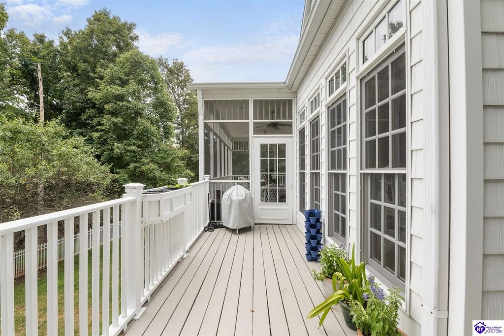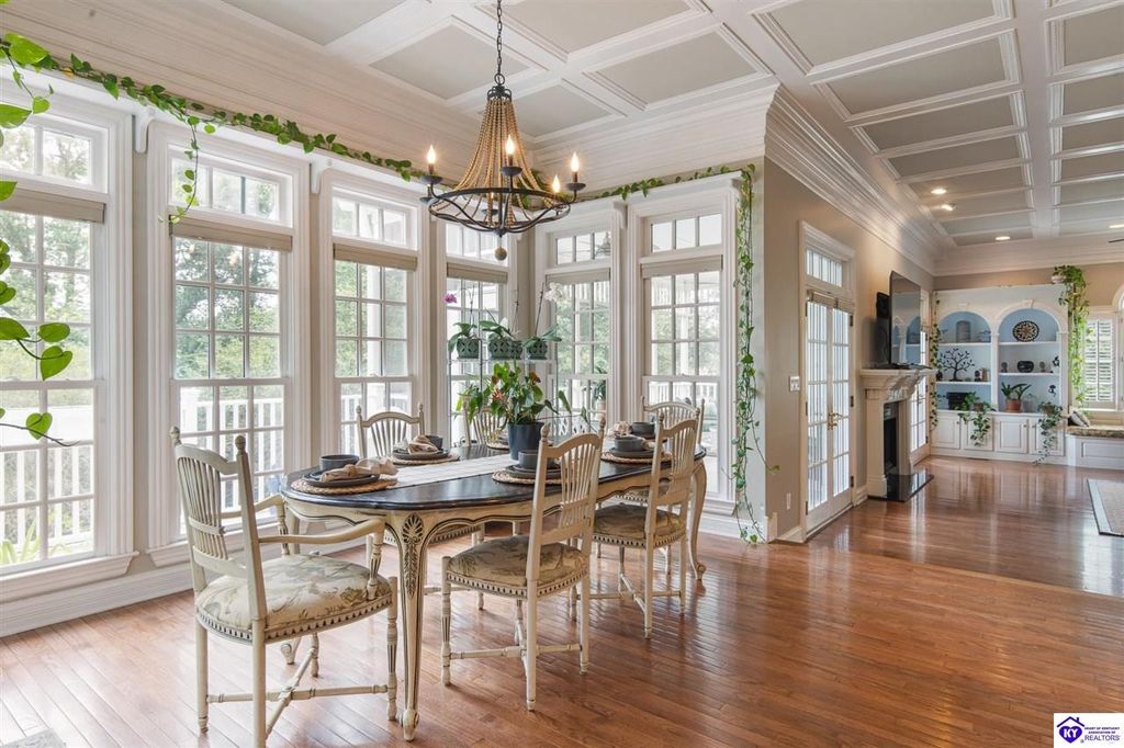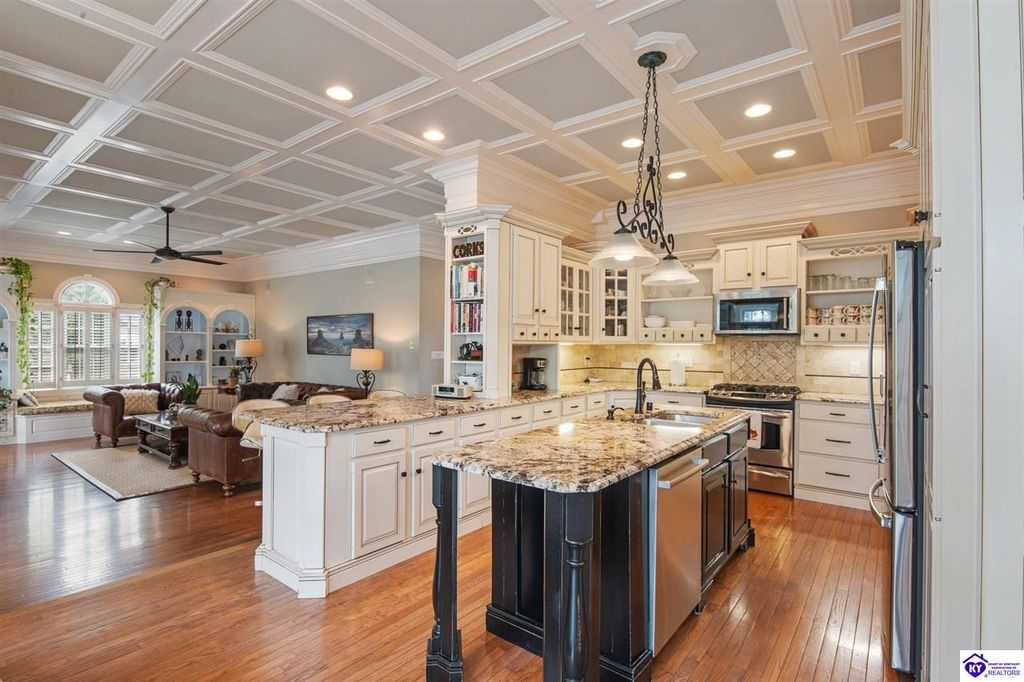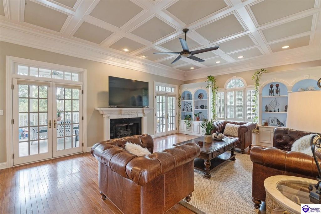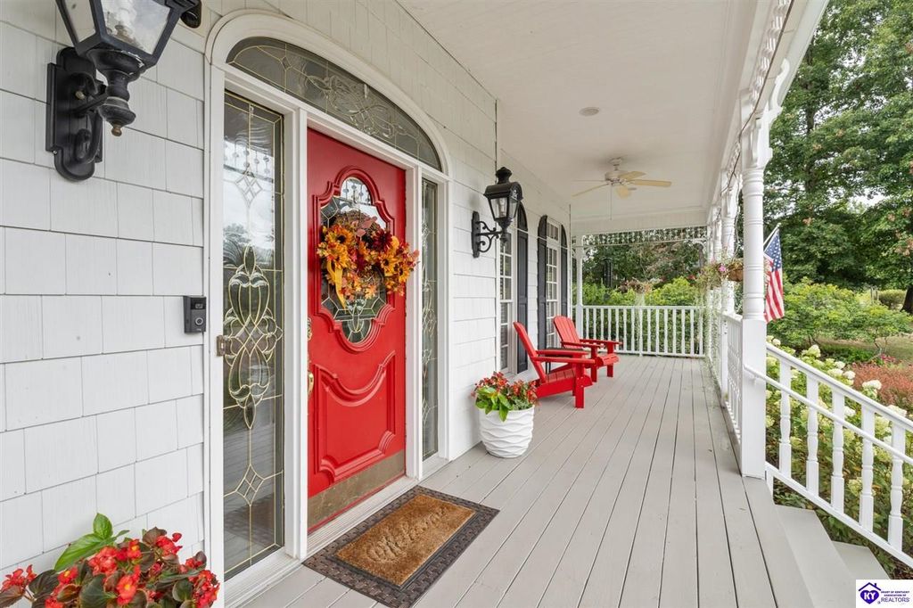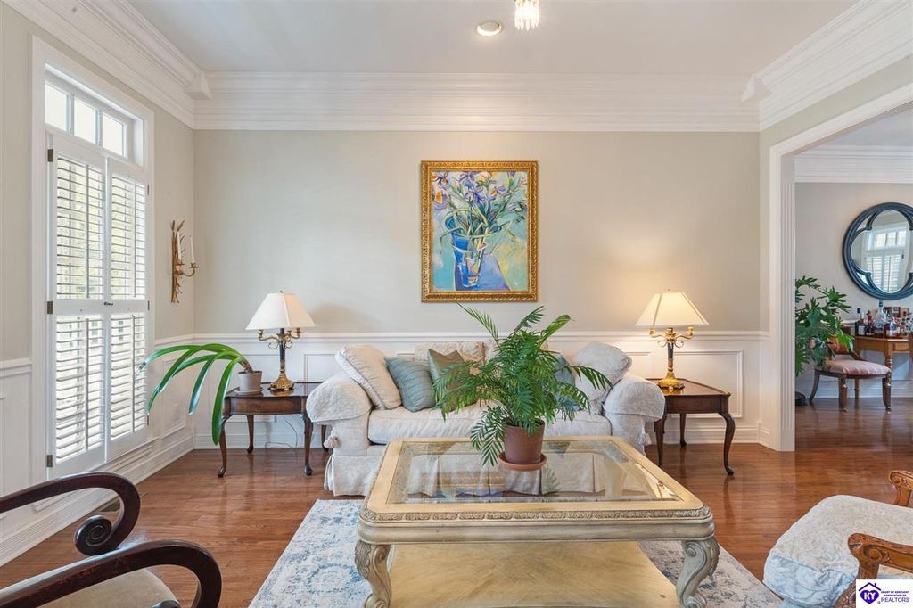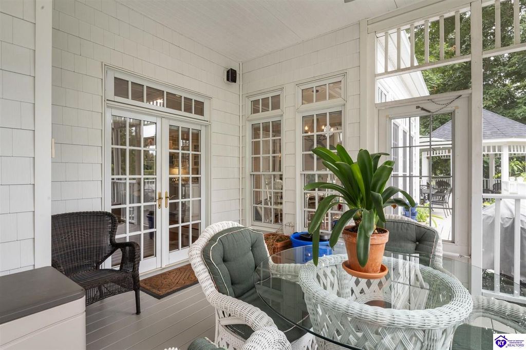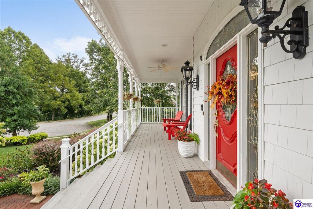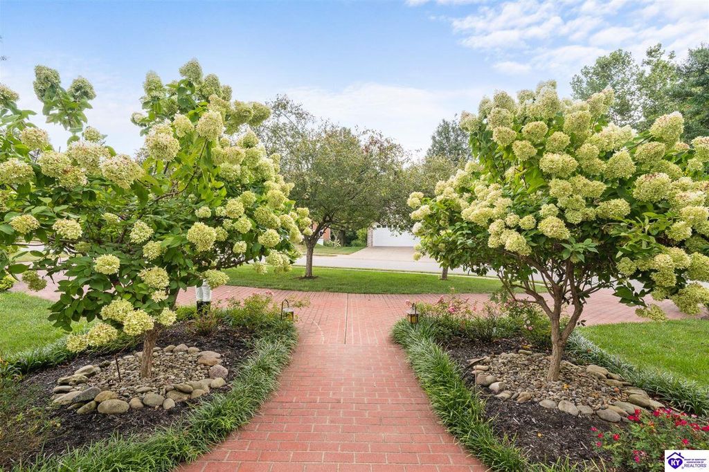 Southern Charm Meets Modern Luxury on Heartland Golf Course. Welcome to a show-stopping custom-built home where timeless Southern elegance and modern convenience blend seamlessly. Nestled on a meticulously landscaped lot overlooking the prestigious Heartland Golf Course, this stunning two-story residence boasts unparalleled curb appeal, complete with 3/4 wrap-around porches and grand double gazebos. Step inside the soaring two-story foyer and immediately feel this home's sophistication. The all-maple wood office with coffered ceilings sets the tone for refined living, while the open concept great room offers lighted built-ins, a cozy window bench, coffered ceilings and a fireplace - all flowing effortlessly onto the expansive back deck with screened porch and double-stacked gazebos for year-round enjoyment. The kitchen features a large island, breakfast bar, custom cabinets, stainless-steel appliances and floor to ceiling windows. The formal dining room opens to a charming front sitting room - perfect for entertaining. On the second level, the luxurious master retreat is a true sanctuary, featuring vaulted and beamed ceilings, hardwood floors, custom built-in bookcases/entertainment center, and a completely remodeled en-suite bath. Enjoy the spa-in spired bathroom, boasting a massive walk-in tiled shower, dual vanities, a two-person soaking tub, private water closet, and walk-in closet. Also on the 2nd level are two additional bedrooms (one with a fireplace), hardwood flooring, ceiling fans, double closets, and Jack & Jill bathroom with double vanities. The lower level includes a private in-law suite with its own kitchen, full bath, and living room. With direct access to the covered patio, lower gazebo, and gardens, this suite is ideal for guests or multi-generational living. Every detail of this home has been thoughtfully designed, from the plantation shutters and triple crown molding to the lush, fenced yard. This is not just a home - it's a lifestyle. YOUR rare opportunity to own one of the most beautiful properties in the area.