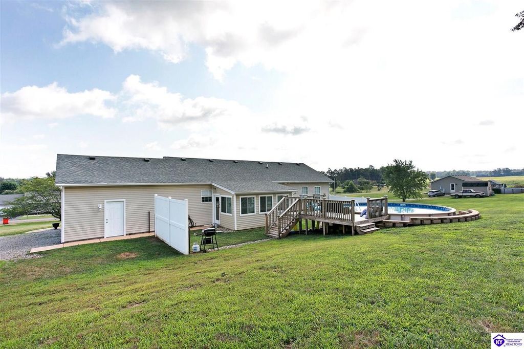 Check out this clean and cozy 3 bed, 2 bath ranch sitting pretty on a peaceful dead-end street right where comfort meets convenience. With 1,429 sq ft of living space, a 2-car garage, and a storage shed out back, you've got room for everything and your toys. But the real kicker? A 24-foot above-ground pool with deck and privacy panels. Yes, summer just called, and it wants you here. Inside, enjoy easy-care vinyl plank flooring through the main areas, cozy carpet in the bedrooms, and stainless steel appliances already waiting in the kitchen. Just pack your stuff and move in! You're only 5 minutes to I-65 and the Glendale exit, plus just a mile from Sportsman's Lake. So whether you're commuting or casting a line, location's got you covered. Don't wait around on this one. It's too good to last. Call today and schedule your private tour before it's gone!