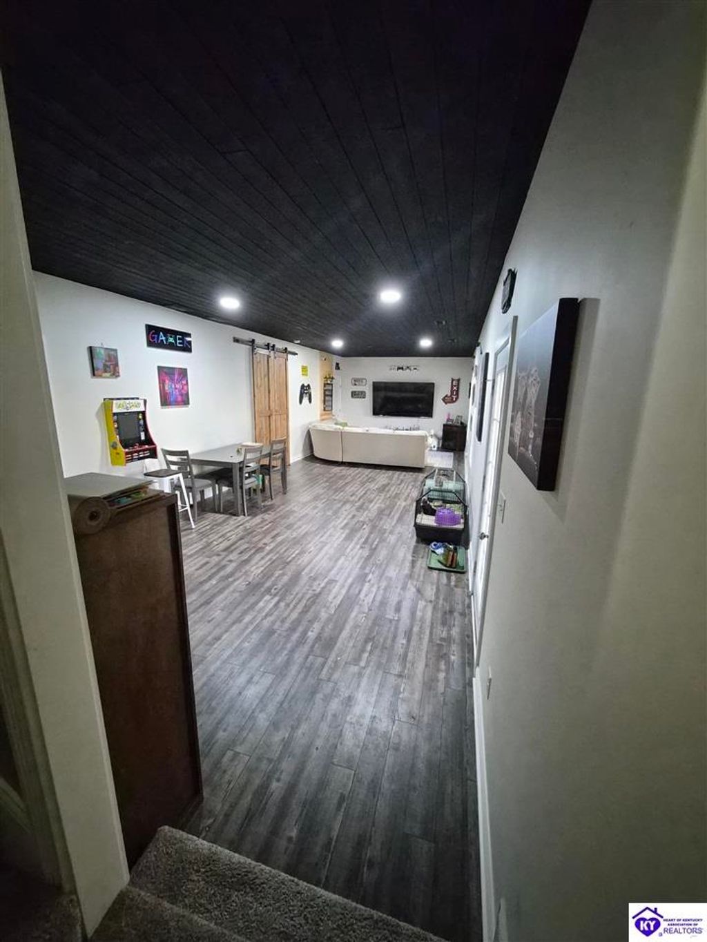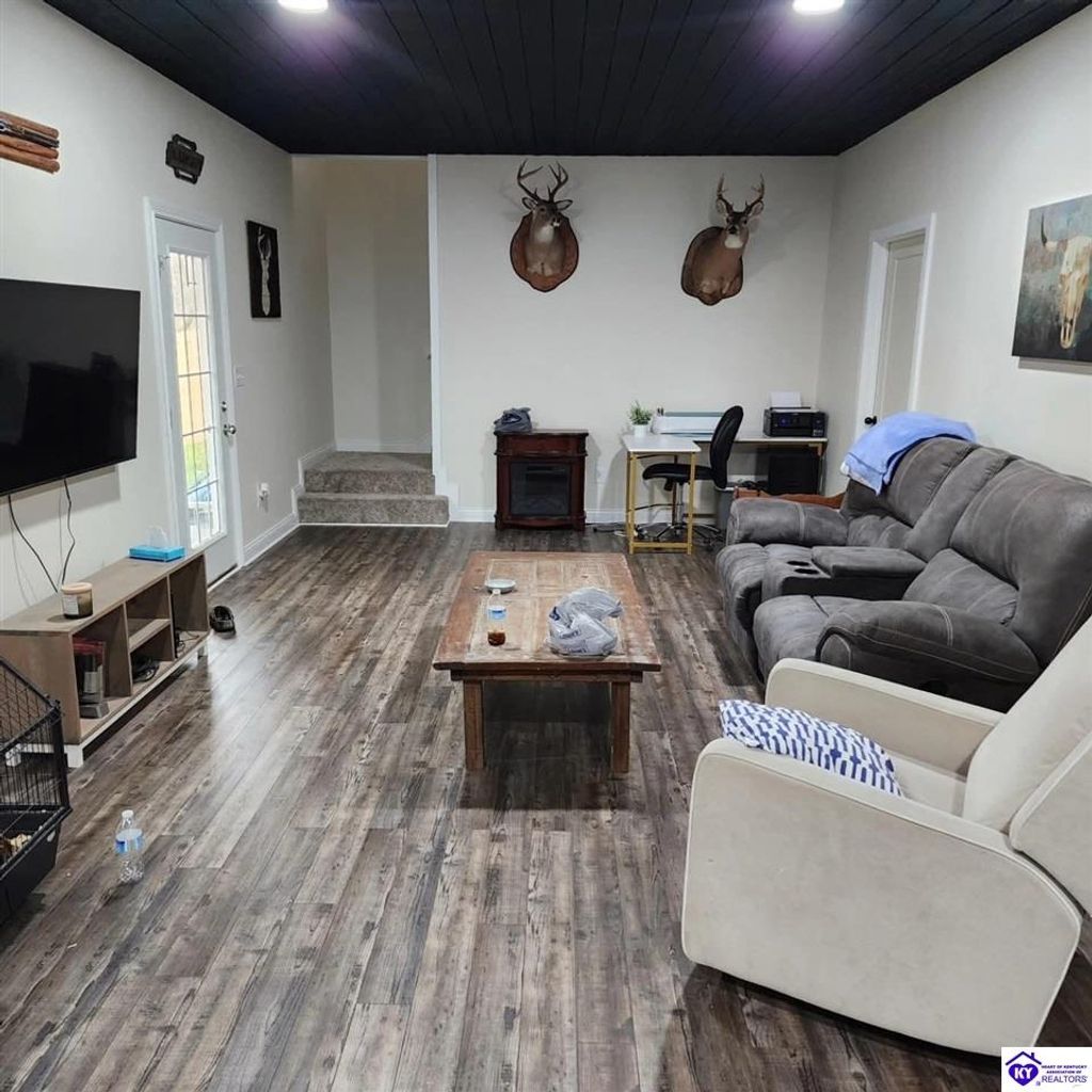 Beautiful home with both subdivision living and your own private oasis in the backyard. This 3 bedroom, 2 bath ranch and partially finished walk out basement is situated on .786 acres. The backyard has been cleared to enjoy the woods and mowed areas to have fun and play. Back of property has access to otter creek. So whether you want to walk the neighborhood or enjoy peace and quiet in backyard this would be perfect for you. Basement includes a very large family/movie theater area. Bonus room with built in bookshelves is a wonderful space to play. 9 foot ceilings throughout basement. Outlet on ceiling for projector (had golf simulator) Rough cut plumbing completed for full bathroom downstairs. Neighborhood has access to Lincoln Trail golf course, ride your golf cart to the course. Oversized kitchen island with seating was added and can be removed to give more dining space.