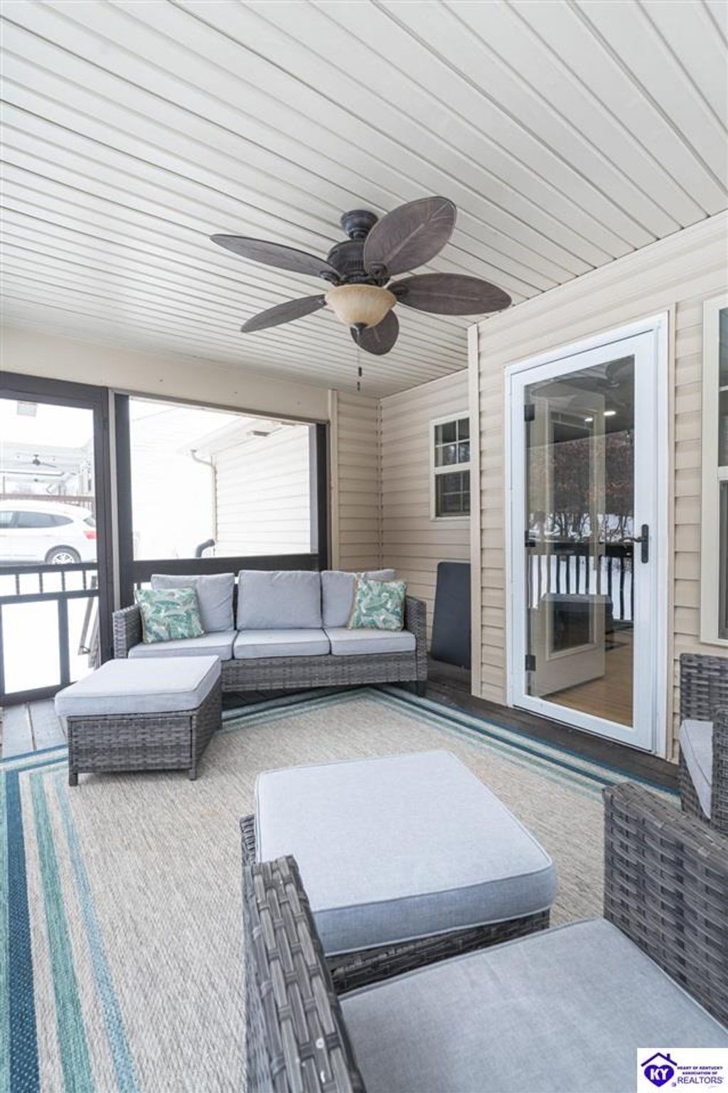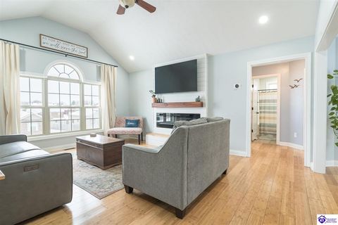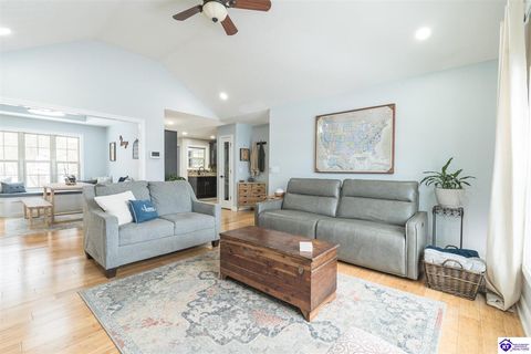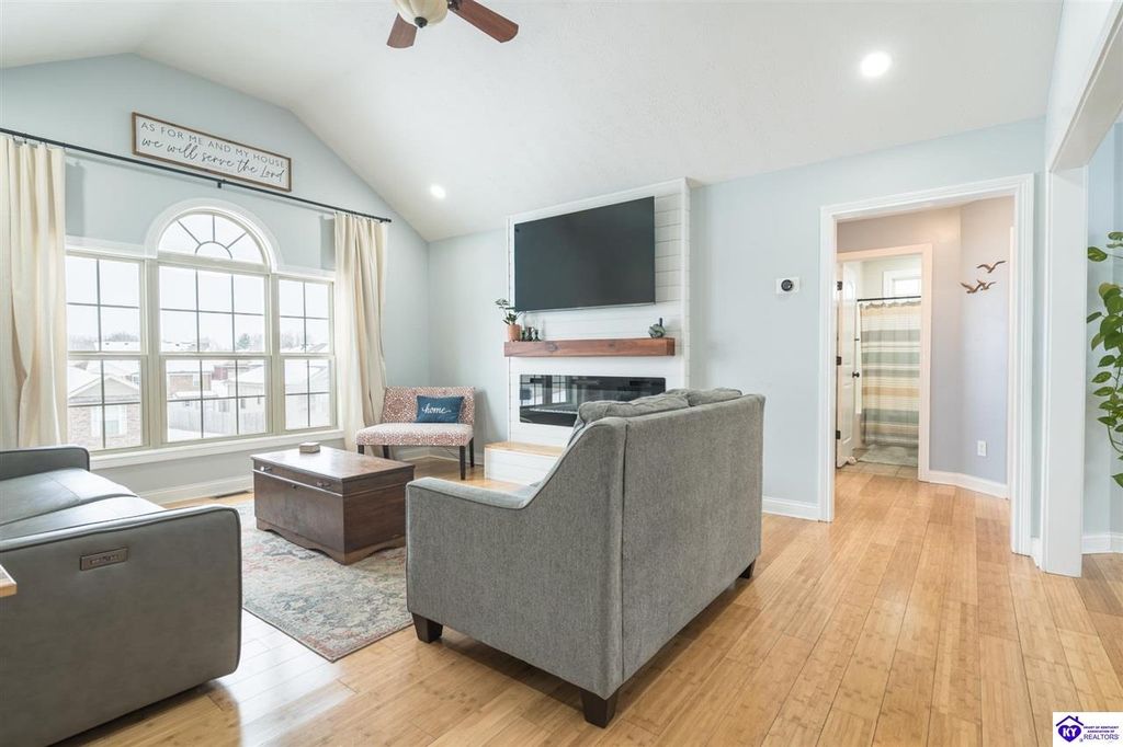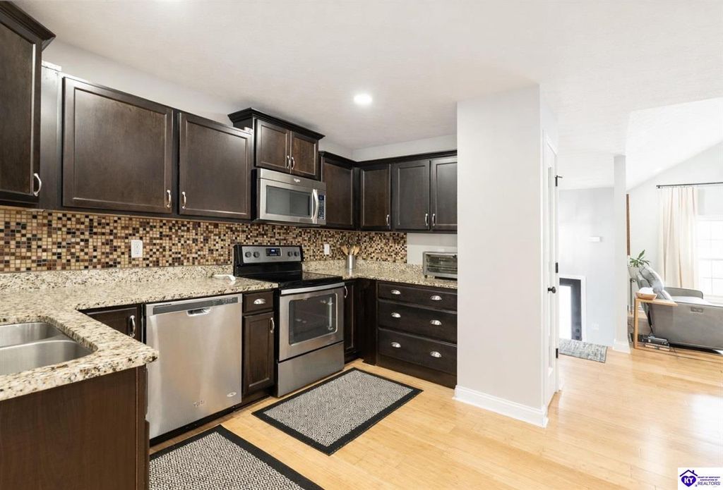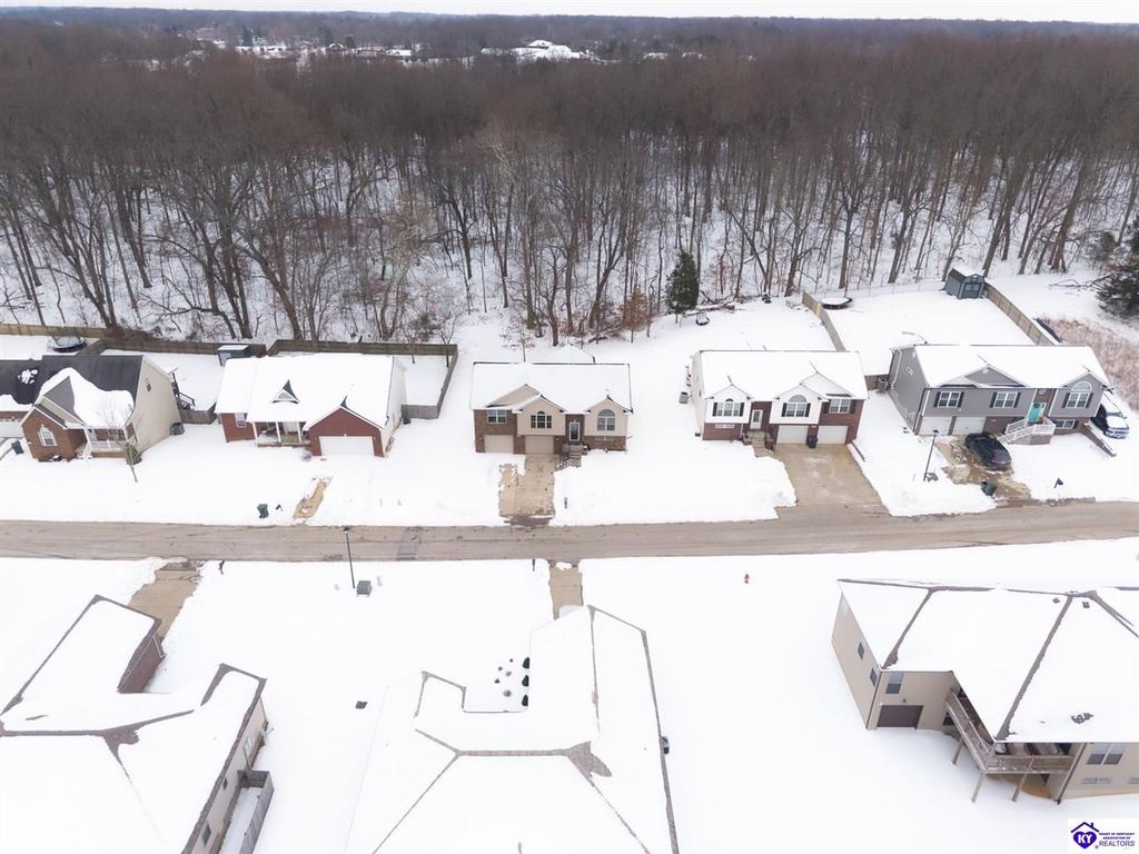 Welcome home to 132 Lowball Lane, an inviting property featuring beautiful bamboo hardwood flooring throughout much of the main level. This home offers a like new roof installed in 2024 along with a whole house water system. Vaulted ceilings and a bright great room are highlighted by a stunning circle top window that fills the space with natural light. The kitchen offers granite countertops, a stylish backsplash, a full appliance package, and a pantry, along with a formal dining room perfect for gatherings. The main level primary suite includes vaulted ceilings, a double vanity, a soaking tub, a walk in shower, and a large walk in closet. The finished basement is accessible through the two car garage, which also includes a convenient mower garage on the side, and provides a comfortable family room along with additional storage space. Relax on the covered deck while enjoying peaceful wooded views. Schedule your showing today and come see all this home has to offer
