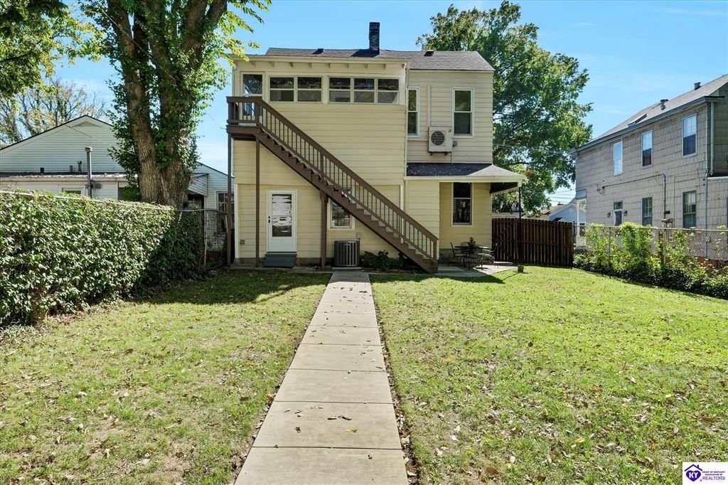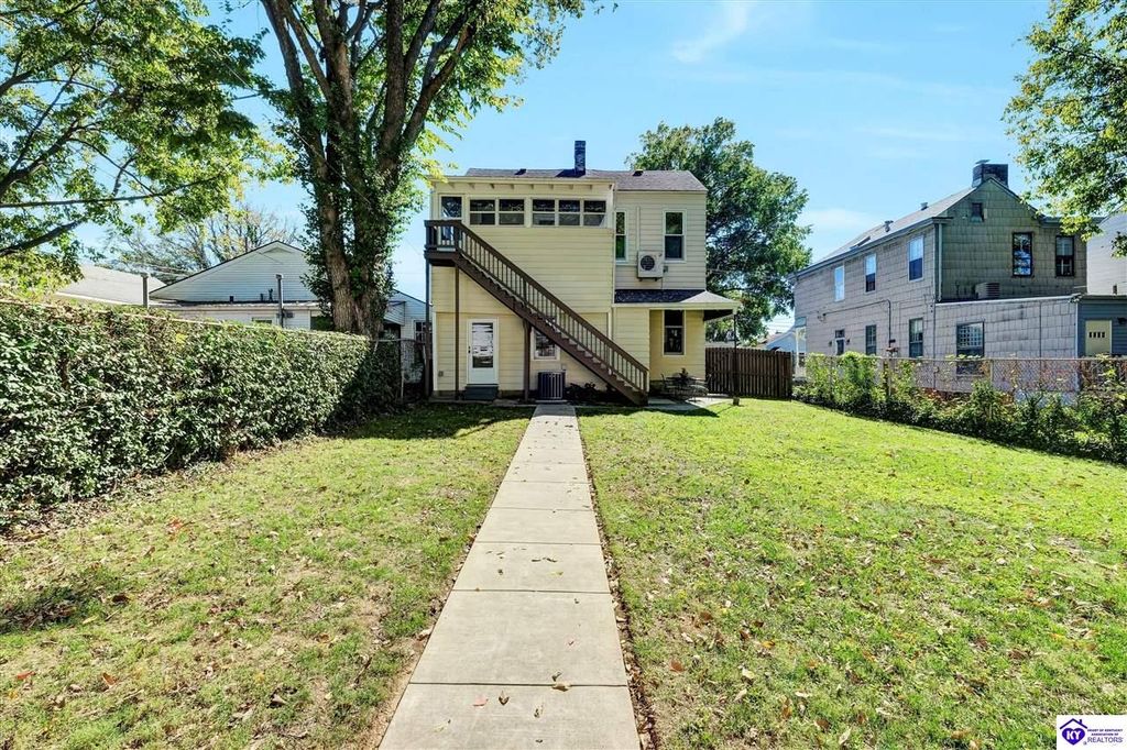 A charming Folk Victorian in the Heart of the Highlands. Welcome to this timeless two-story, built around the 1930's and nestled in the highly desirable Original Highlands neighborhood - just minutes from Tyler Park, Bardstown Road, NuLu and the best of downtown Louisville. With approximately 2,448 finished square feet, this 4-bedroom, with one on the main floor, 2-bath home beautifully balances historic character with thoughtful updates. Inside, you will find tall ceilings, an inviting open staircase, and large rooms that reflect the craftsmanship of another era. The home's aluminum siding offers low maintenance, while years of careful ownership and attention to detail shine through every space. The covered front porch invites you to sit and relax, while the enclosed back porch off the second level offers a quiet spot to unwind with morning coffee or evening breezes. Out back, a spacious, privacy-fenced yard provides plenty of room for entertaining, play, or gardening. A recently added two-car detached garage, accessible from the alley, adds both convenience and value, complete with an unfinished bonus room above that's rough-plumbed and ready for your creative touch. Lovingly maintained by the same owner since 1989, this home is filled with warmth, history, and the kind of charm that defines the Original Highlands. Come see why this property isn't just a place to live, it's a place to belong.