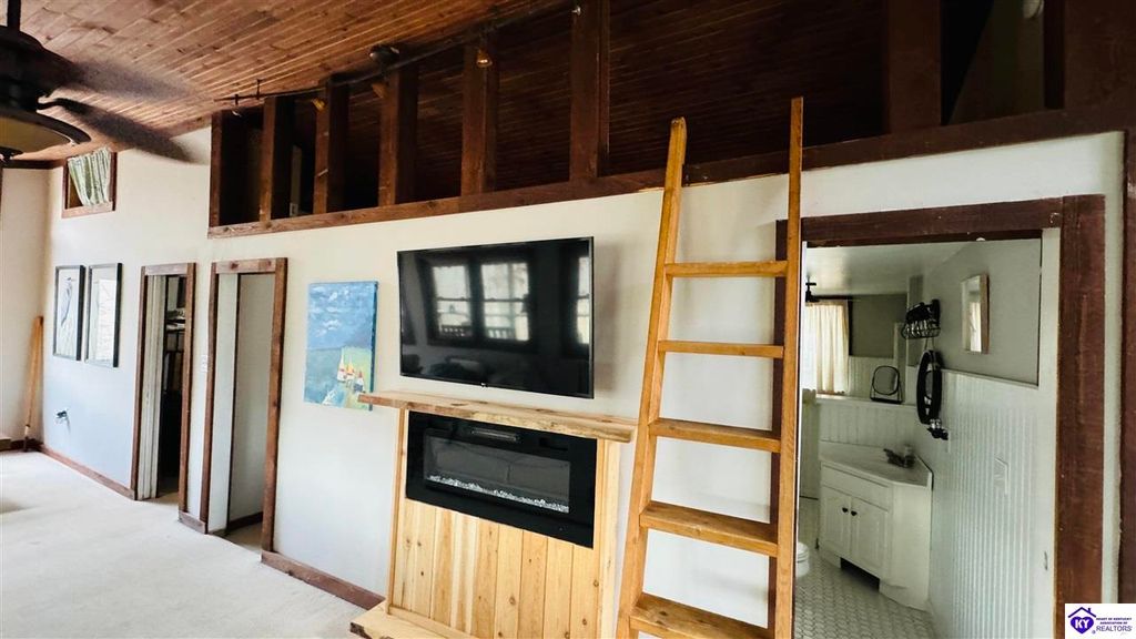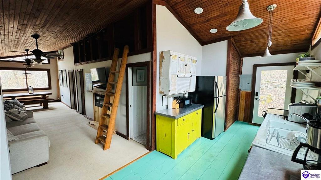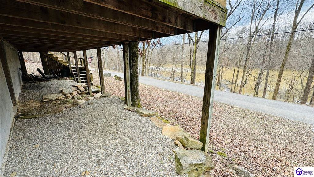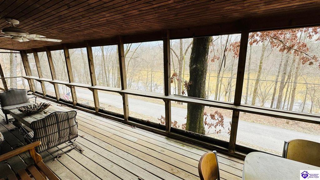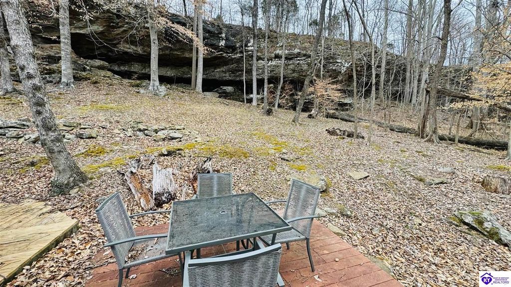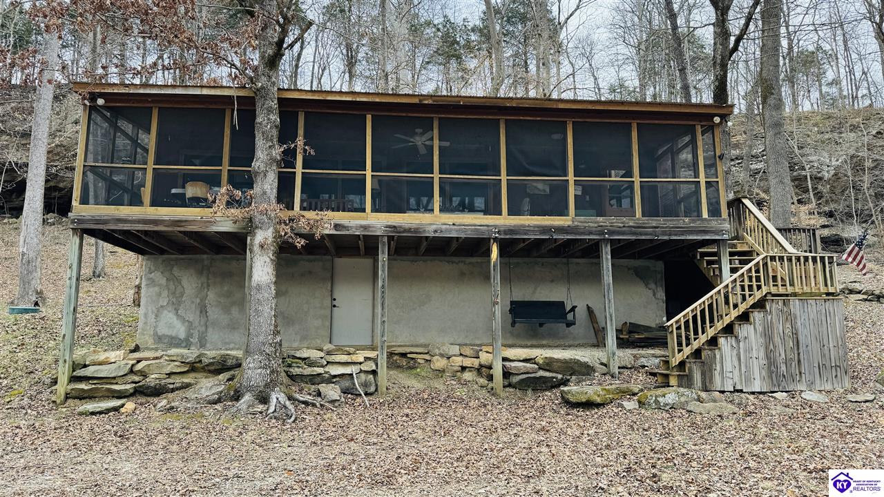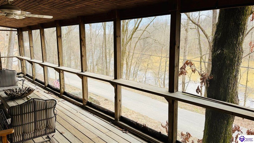 Sitting on two lakefront lots, this charming 2 bedroom, 1 bath cabin with a loft is the perfect lake getaway! Enjoy your mornings or evenings on the spacious screened-in porch, where you can relax and take in the peaceful lake views. Towering cliffs provide a stunning backdrop for nights gathered around the campfire. An existing dock (transferable with COE approval) makes lake access a breeze, and there's plenty of parking for friends and family. This cozy cottage on Rough River Lake is the perfect blend of relaxation and adventure. You truly have to see it in person to appreciate all it has to offer!