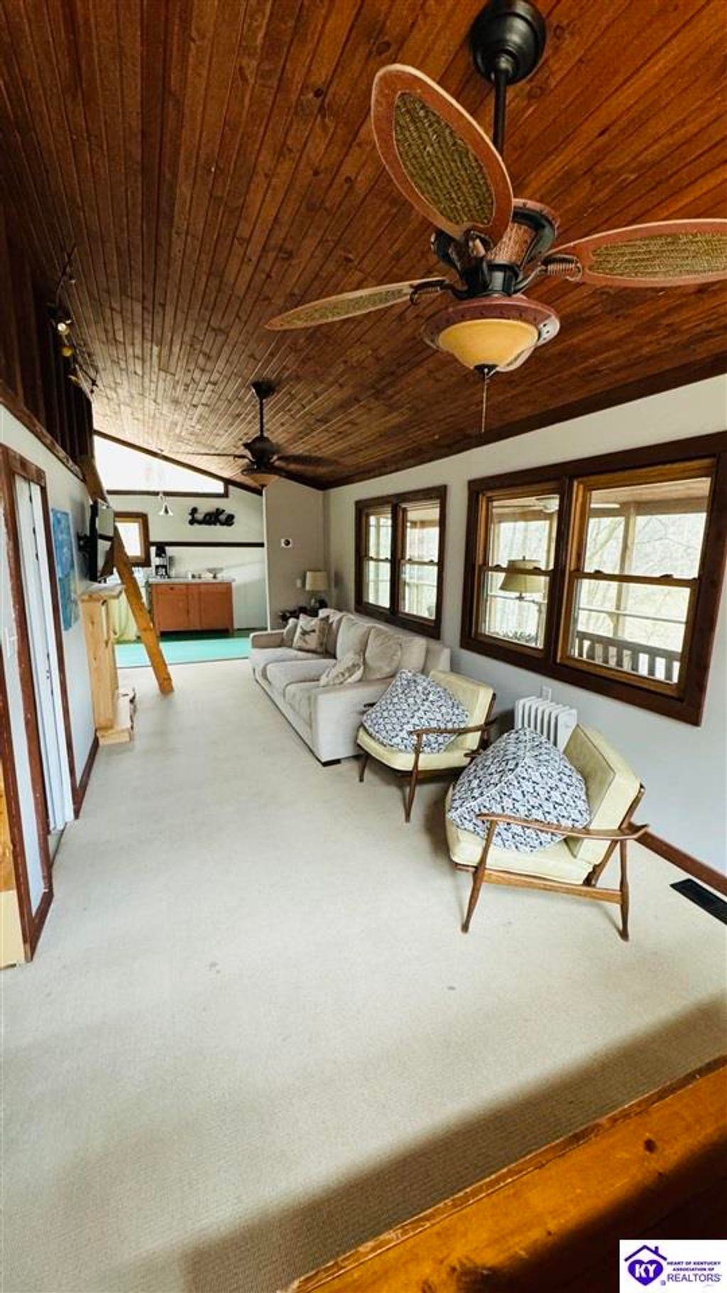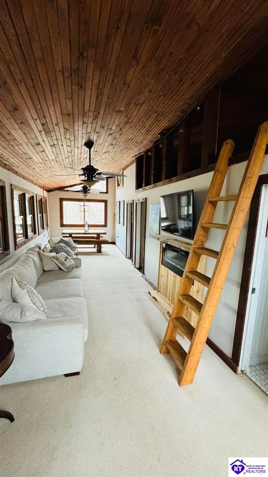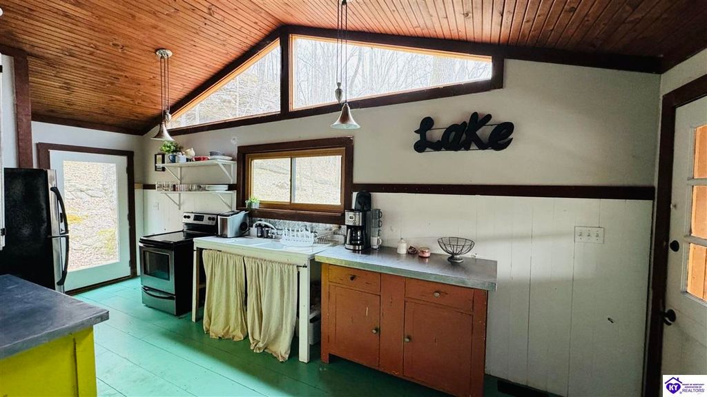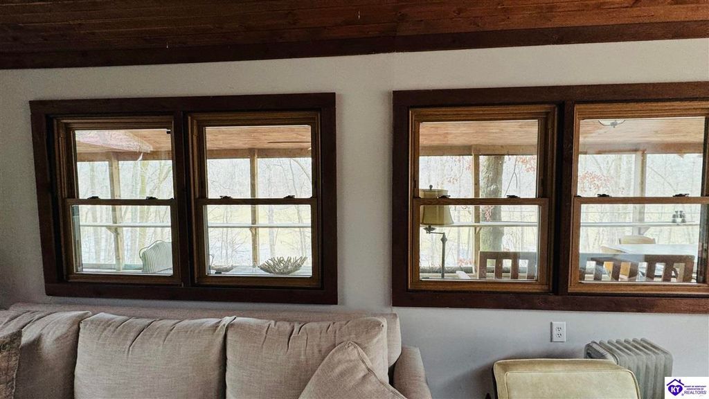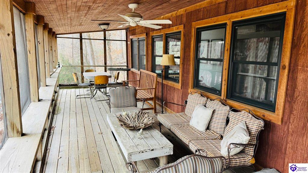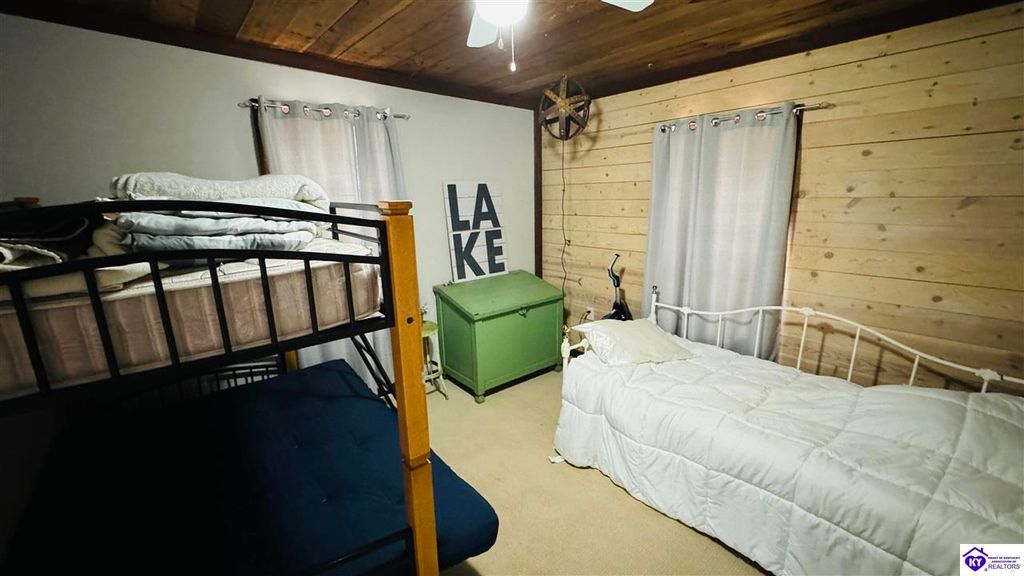 Sitting on two lakefront lots, this charming 2 bedroom, 1 bath cabin with a loft is the perfect lake getaway! Enjoy your mornings or evenings on the spacious screened-in porch, where you can relax and take in the peaceful lake views. Towering cliffs provide a stunning backdrop for nights gathered around the campfire. An existing dock (transferable with COE approval) makes lake access a breeze, and there's plenty of parking for friends and family. This cozy cottage on Rough River Lake is the perfect blend of relaxation and adventure. You truly have to see it in person to appreciate all it has to offer!