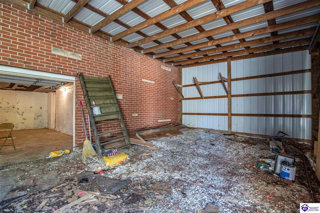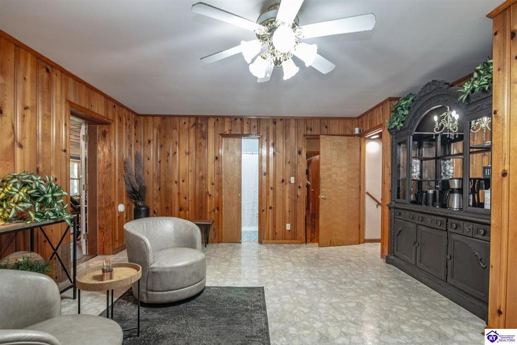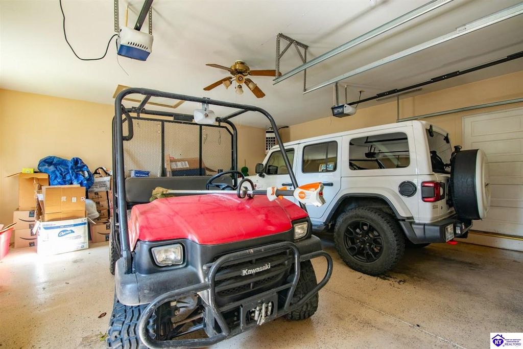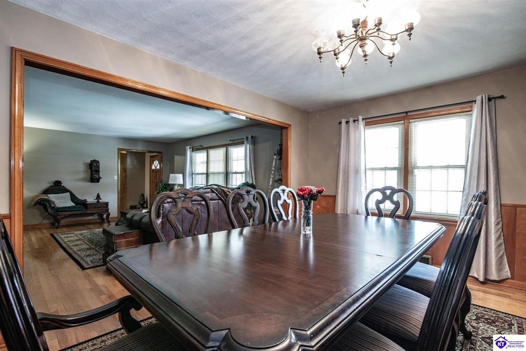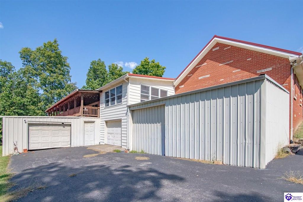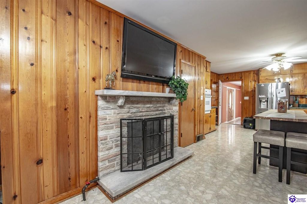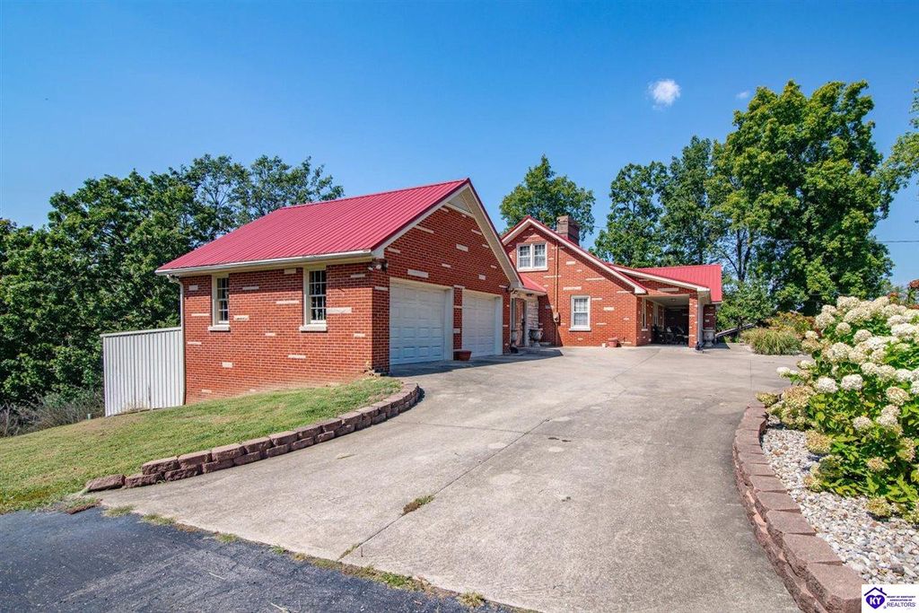 Unbelievable price! As you pull into the circular driveway with board fencing, you will love the stylish and updated landscaping that adds both functionality and curb appeal! This exceptional six-bedroom, three-bathroom home is where spacious living meets a thoughtful design in a park-like setting. This impressive home offers an abundance of square footage with five generous family gathering areas, ensuring everyone has their perfect space to relax and connect. The heart of the home features an oversized kitchen complete with a full appliance package and a charming fireplace that makes meal preparation feel like a cozy gathering. You'll discover beautiful hardwood flooring throughout select rooms, adding warmth and character to the living spaces. The main level conveniently houses two bedrooms, while additional bedrooms provide flexible options for family, guests, or home offices. Three fireplaces throughout the home create inviting focal points in the kitchen, living room, and recreation room, perfect for those cooler Kentucky evenings. The finished walkout basement also offers additional family space for movie night or family gatherings. Step outside to enjoy the covered front porch and expansive covered deck overlooking your private backyard retreat. Car enthusiasts will appreciate the impressive garage space accommodating up to 6 vehicles, complemented by large storage areas for all your belongings. Looking for more land? The neighbor is selling 16+ acres that adjoins this home, a fantastic opportunity to expand! If interested the land would be sold separate. This home is a must see!