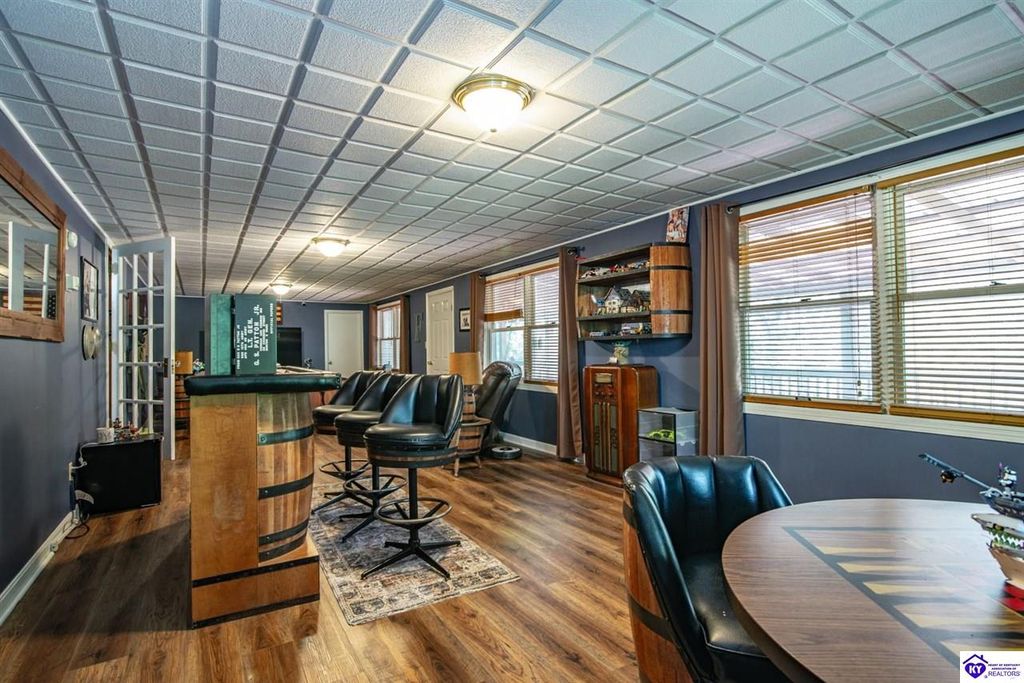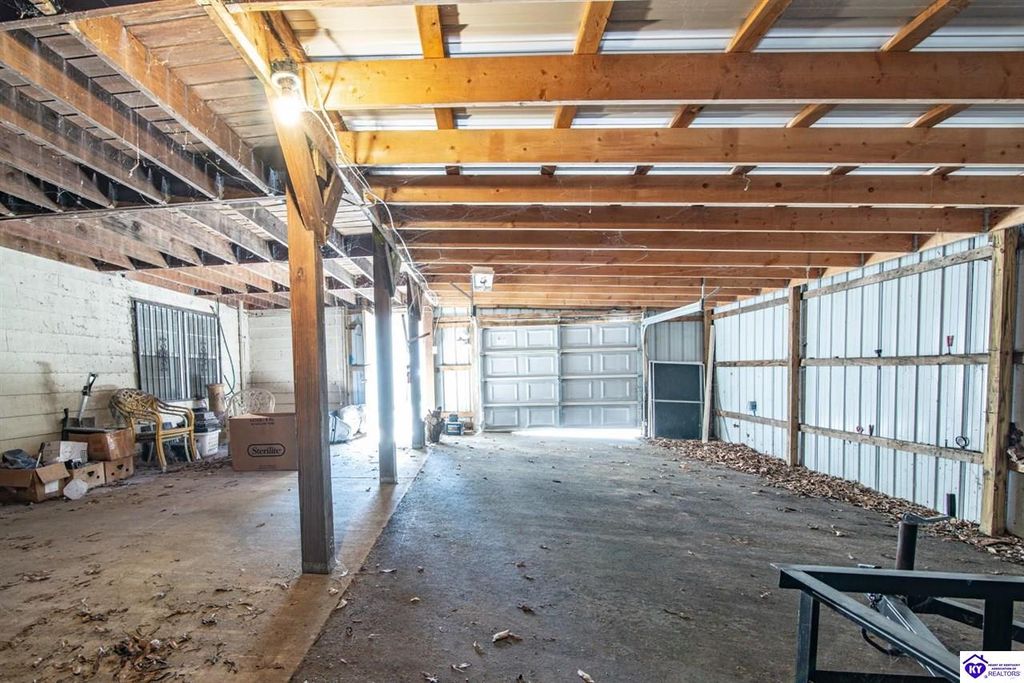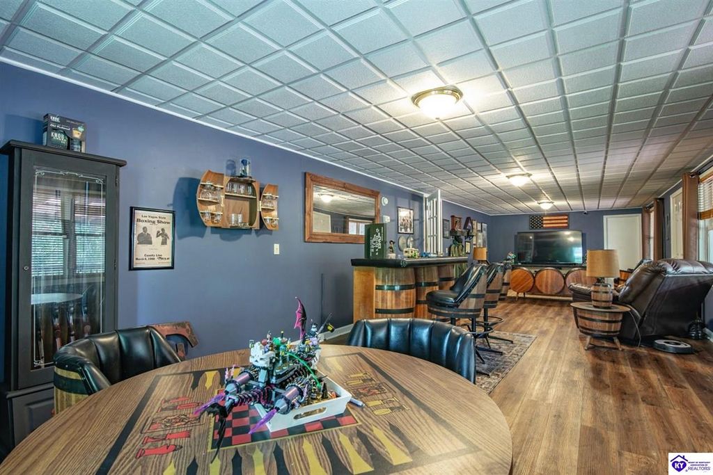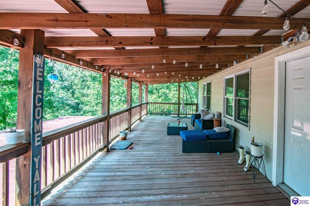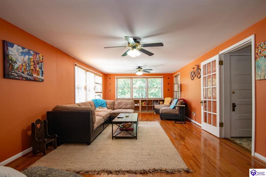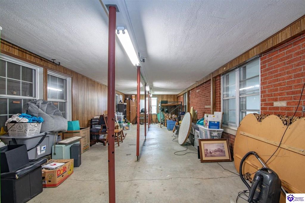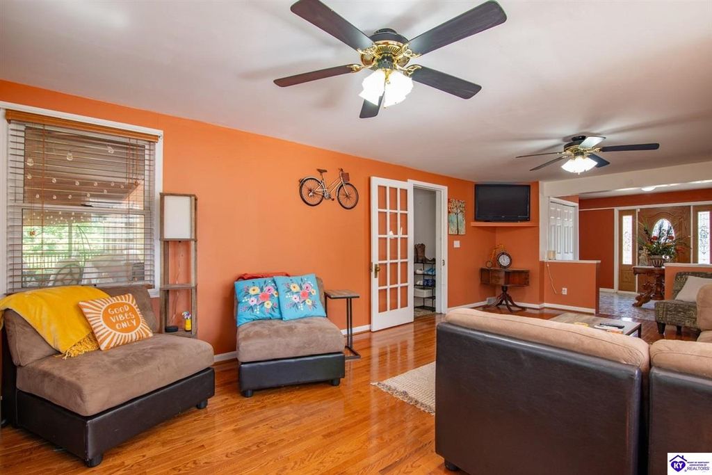 Unbelievable price! As you pull into the circular driveway with board fencing, you will love the stylish and updated landscaping that adds both functionality and curb appeal! This exceptional six-bedroom, three-bathroom home is where spacious living meets a thoughtful design in a park-like setting. This impressive home offers an abundance of square footage with five generous family gathering areas, ensuring everyone has their perfect space to relax and connect. The heart of the home features an oversized kitchen complete with a full appliance package and a charming fireplace that makes meal preparation feel like a cozy gathering. You'll discover beautiful hardwood flooring throughout select rooms, adding warmth and character to the living spaces. The main level conveniently houses two bedrooms, while additional bedrooms provide flexible options for family, guests, or home offices. Three fireplaces throughout the home create inviting focal points in the kitchen, living room, and recreation room, perfect for those cooler Kentucky evenings. The finished walkout basement also offers additional family space for movie night or family gatherings. Step outside to enjoy the covered front porch and expansive covered deck overlooking your private backyard retreat. Car enthusiasts will appreciate the impressive garage space accommodating up to 6 vehicles, complemented by large storage areas for all your belongings. Looking for more land? The neighbor is selling 16+ acres that adjoins this home, a fantastic opportunity to expand! If interested the land would be sold separate. This home is a must see!