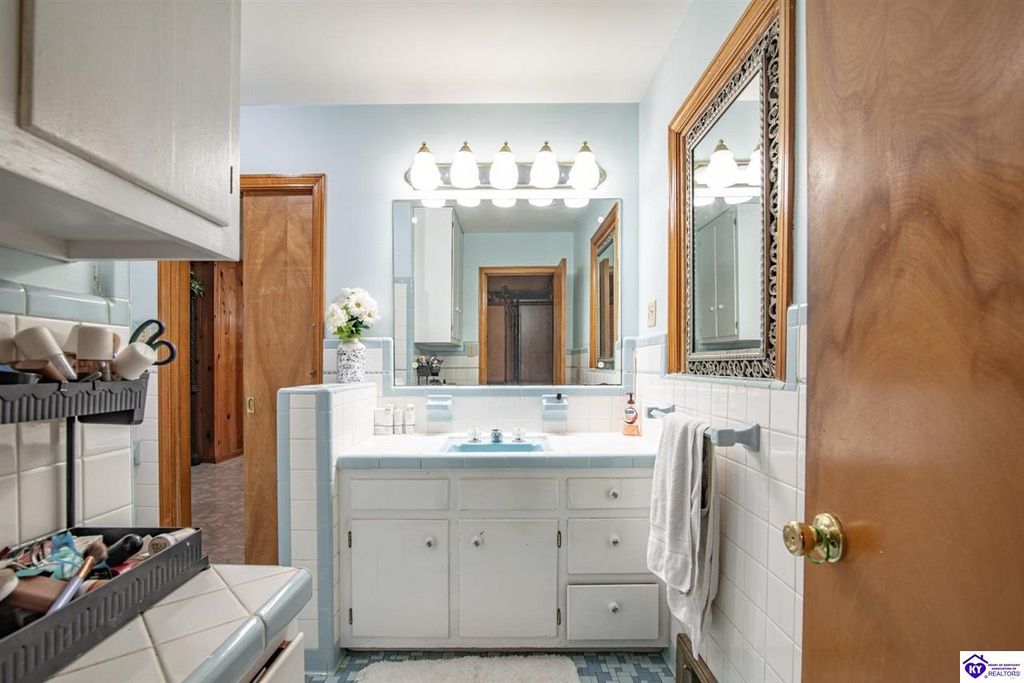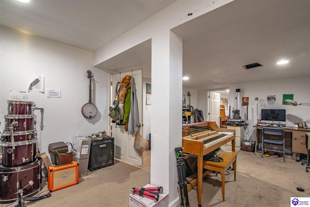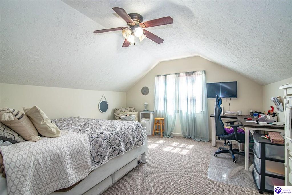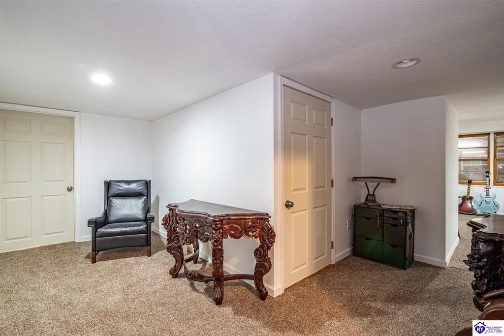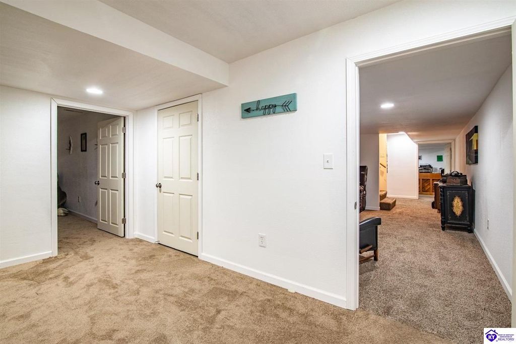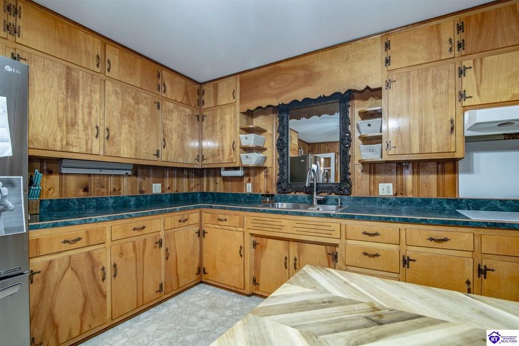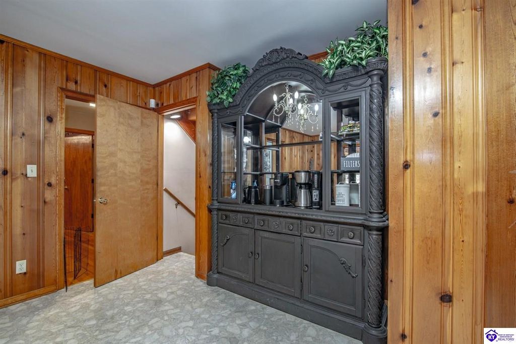 Unbelievable price! As you pull into the circular driveway with board fencing, you will love the stylish and updated landscaping that adds both functionality and curb appeal! This exceptional six-bedroom, three-bathroom home is where spacious living meets a thoughtful design in a park-like setting. This impressive home offers an abundance of square footage with five generous family gathering areas, ensuring everyone has their perfect space to relax and connect. The heart of the home features an oversized kitchen complete with a full appliance package and a charming fireplace that makes meal preparation feel like a cozy gathering. You'll discover beautiful hardwood flooring throughout select rooms, adding warmth and character to the living spaces. The main level conveniently houses two bedrooms, while additional bedrooms provide flexible options for family, guests, or home offices. Three fireplaces throughout the home create inviting focal points in the kitchen, living room, and recreation room, perfect for those cooler Kentucky evenings. The finished walkout basement also offers additional family space for movie night or family gatherings. Step outside to enjoy the covered front porch and expansive covered deck overlooking your private backyard retreat. Car enthusiasts will appreciate the impressive garage space accommodating up to 6 vehicles, complemented by large storage areas for all your belongings. Looking for more land? The neighbor is selling 16+ acres that adjoins this home, a fantastic opportunity to expand! If interested the land would be sold separate. This home is a must see!
