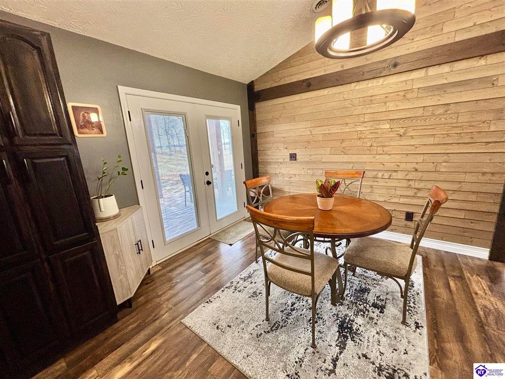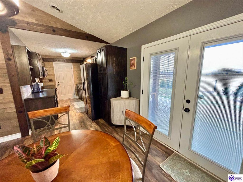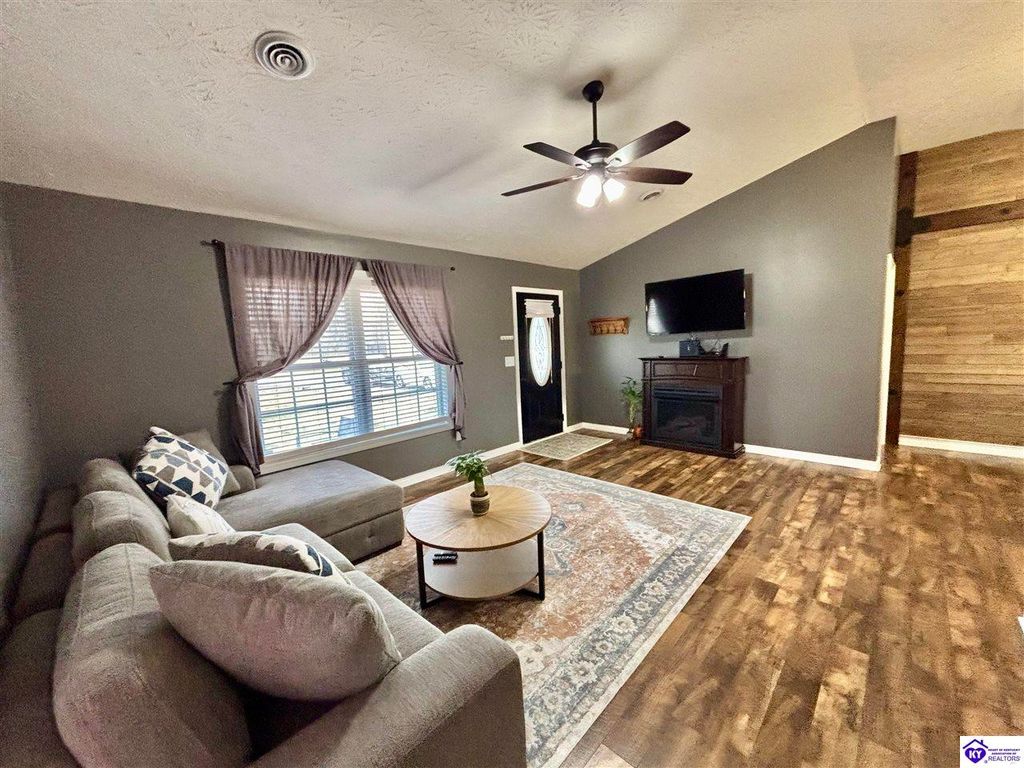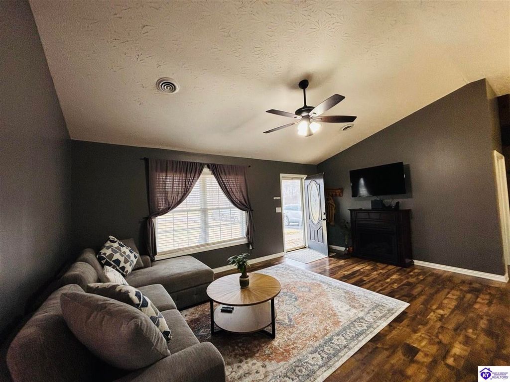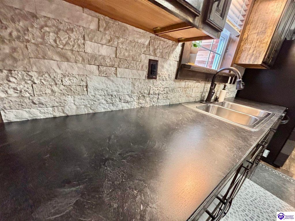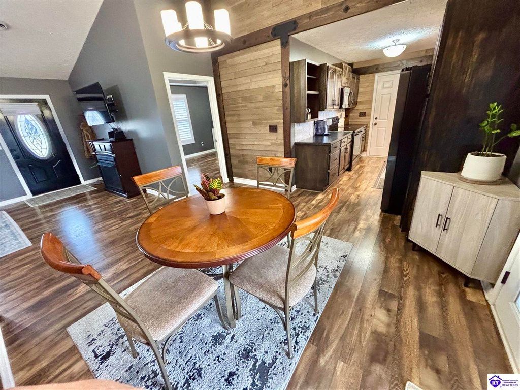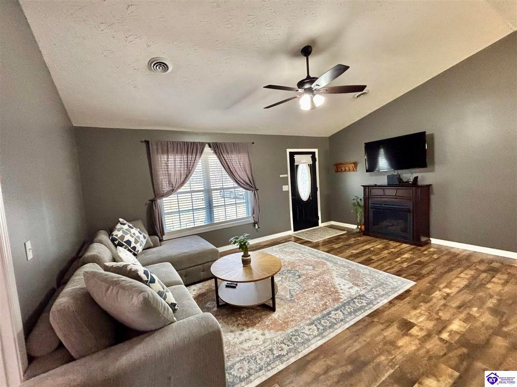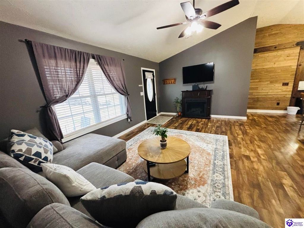 BACKYARD BLISS! This residence presents an abundance of charm, offering a captivating exterior fa ade. Upon entering, the attractive front covered porch immediately captures attention, showcasing elegant vaulted ceilings within an open-concept layout that seamlessly integrates the dining and kitchen areas, flooded with natural light. The split floor plan configuration is particularly desirable. The primary suite boasts distinctive tree ceilings, lending character, and features an en-suite bathroomt. The additional bedrooms are generously proportioned, each with sizable closets. A recently renovated second bathroom now offers an open layout, conveniently combined with laundry facilities and bespoke cabinetry. The kitchen, dining, and eating area is distinguished by stylish woodwork, creating a beautiful space. A spacious single-car garage, expansive deck with fire pit, and covered area provide ample opportunities for relaxation and taking in the views, complemented by garden boxes and a newly installed privacy fence. The storage capacity of the property is noteworthy, with an outbuilding featuring electrical connections, a loft, and additional storage under a lean-to structure, presenting numerous possibilities. SO MUCH TO LOVE! Located in the Heart of Kentucky, this residence is mere miles from Green River Lake and offers convenient access to shopping, restaurants, boutiques, a hospital, and the Campbellsville Country Club. Data believed to be correct but not guaranteed. Buyer to verify data prior to offer.