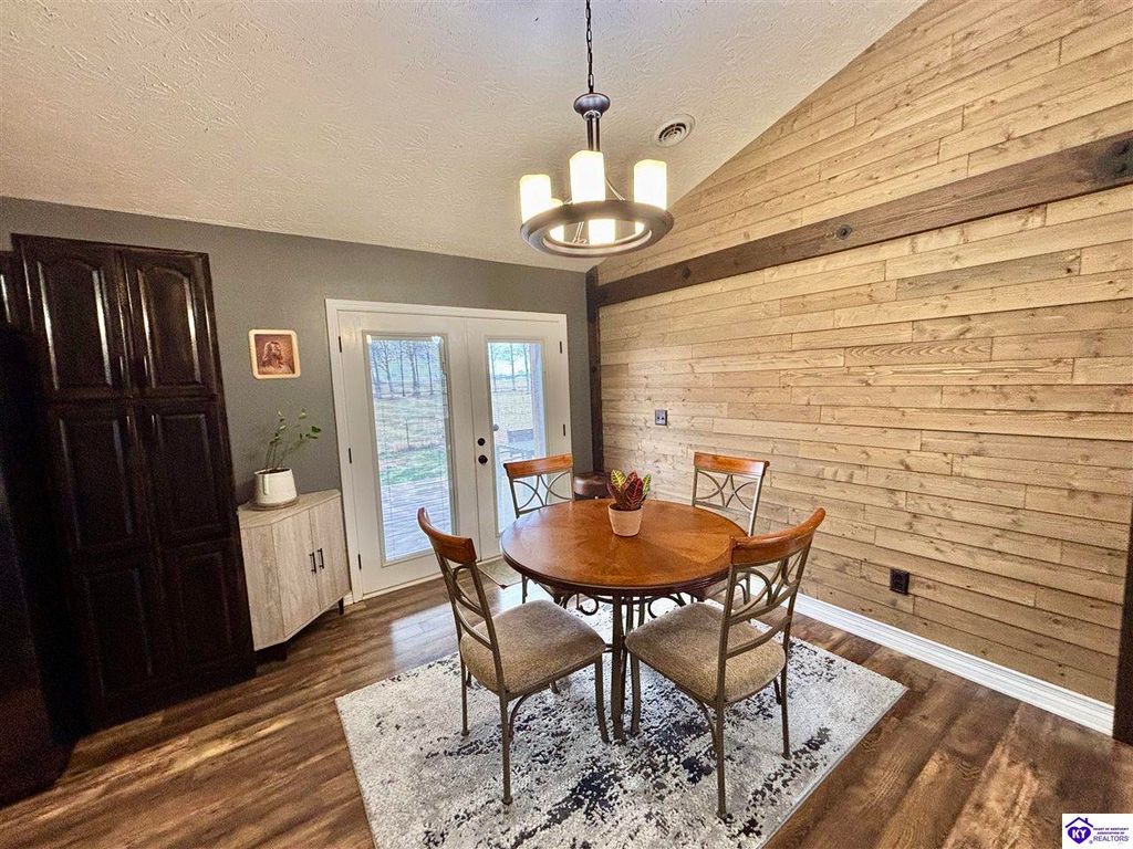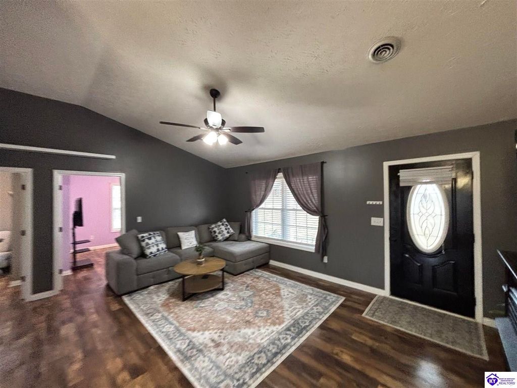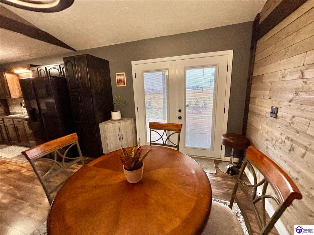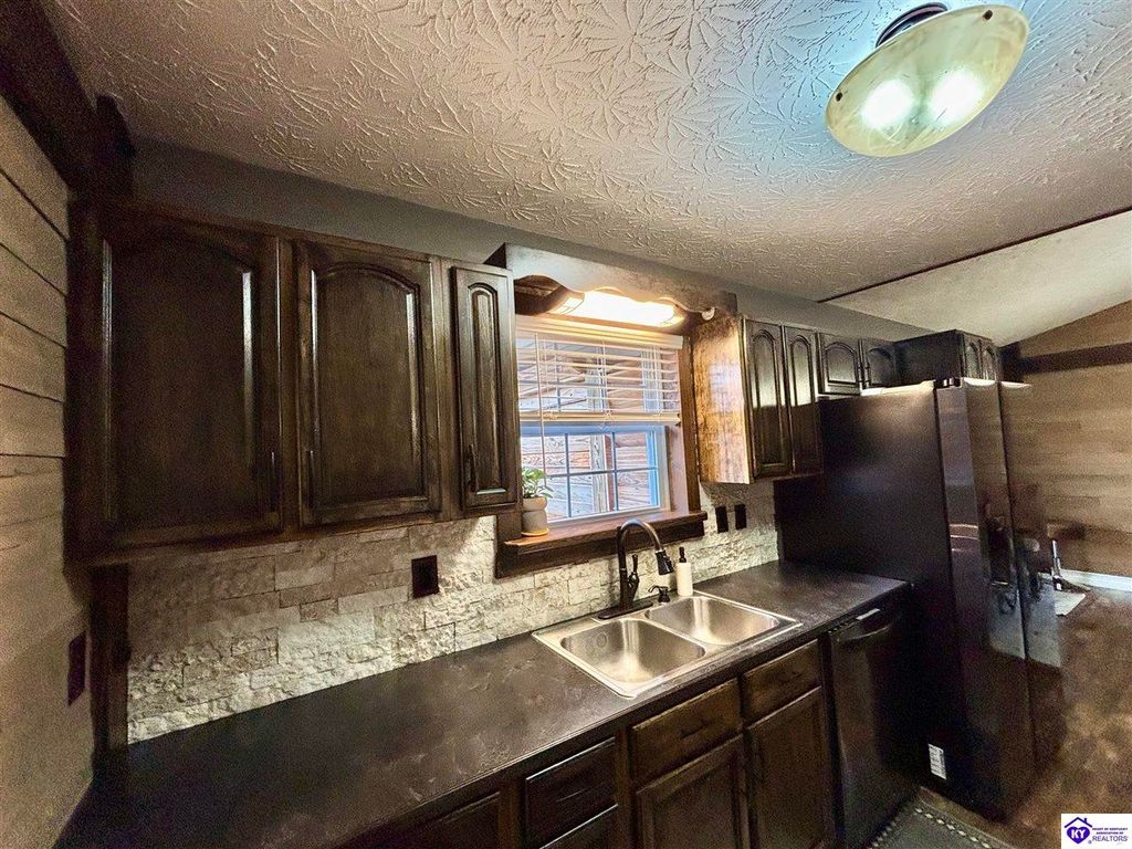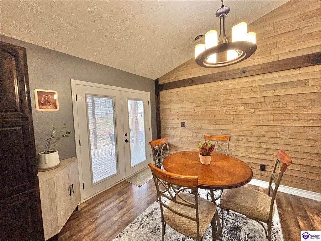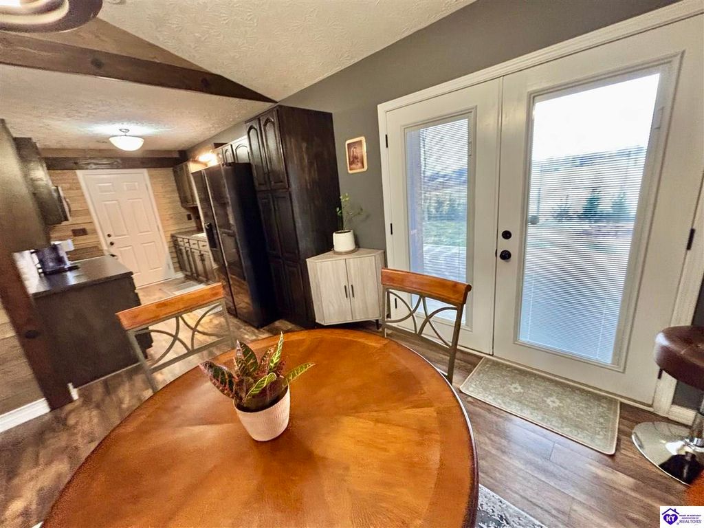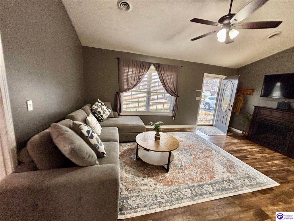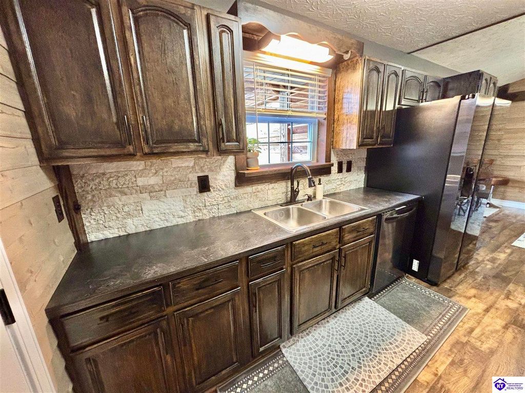 BACKYARD BLISS! This residence presents an abundance of charm, offering a captivating exterior fa ade. Upon entering, the attractive front covered porch immediately captures attention, showcasing elegant vaulted ceilings within an open-concept layout that seamlessly integrates the dining and kitchen areas, flooded with natural light. The split floor plan configuration is particularly desirable. The primary suite boasts distinctive tree ceilings, lending character, and features an en-suite bathroomt. The additional bedrooms are generously proportioned, each with sizable closets. A recently renovated second bathroom now offers an open layout, conveniently combined with laundry facilities and bespoke cabinetry. The kitchen, dining, and eating area is distinguished by stylish woodwork, creating a beautiful space. A spacious single-car garage, expansive deck with fire pit, and covered area provide ample opportunities for relaxation and taking in the views, complemented by garden boxes and a newly installed privacy fence. The storage capacity of the property is noteworthy, with an outbuilding featuring electrical connections, a loft, and additional storage under a lean-to structure, presenting numerous possibilities. SO MUCH TO LOVE! Located in the Heart of Kentucky, this residence is mere miles from Green River Lake and offers convenient access to shopping, restaurants, boutiques, a hospital, and the Campbellsville Country Club. Data believed to be correct but not guaranteed. Buyer to verify data prior to offer.