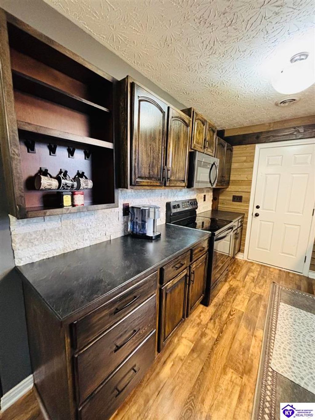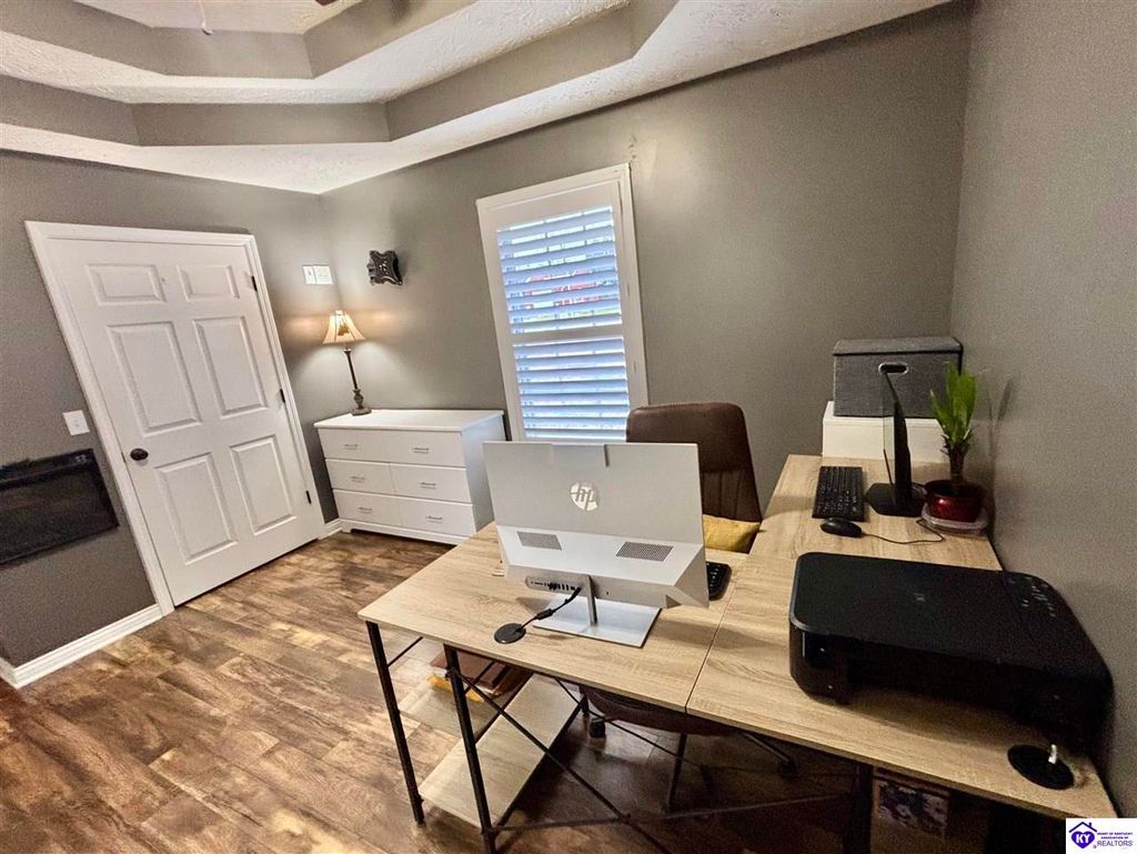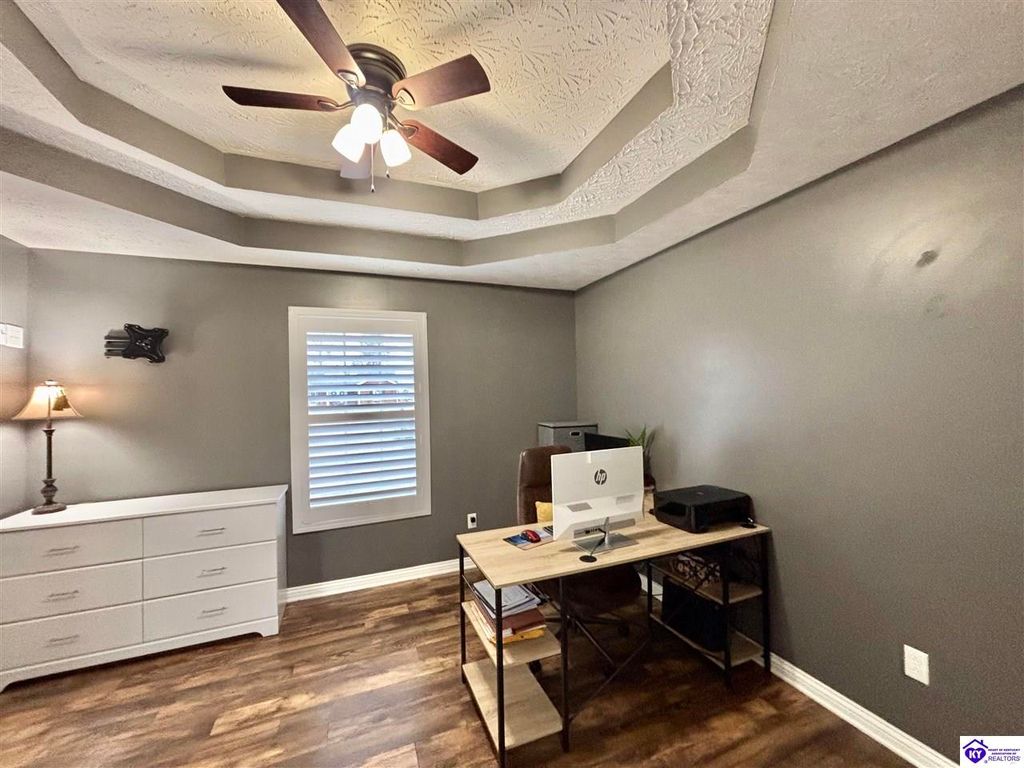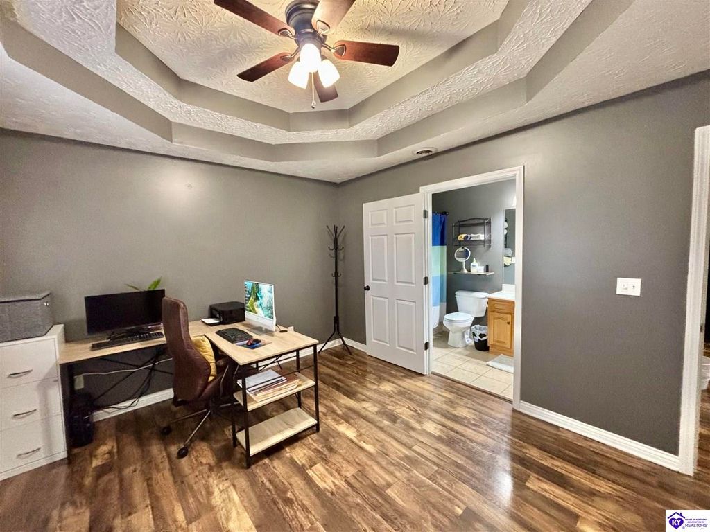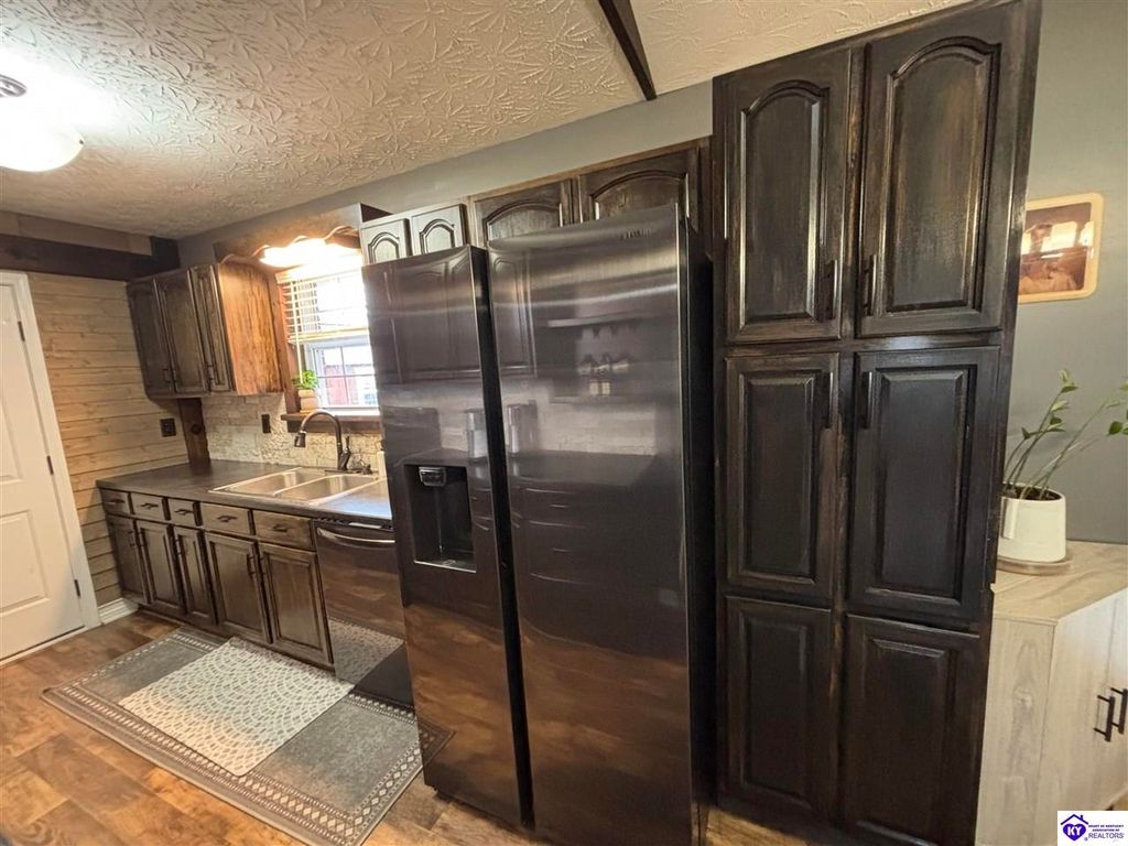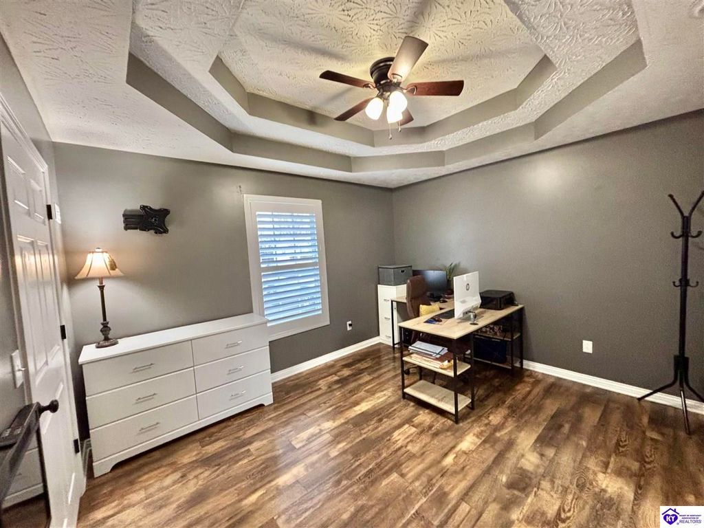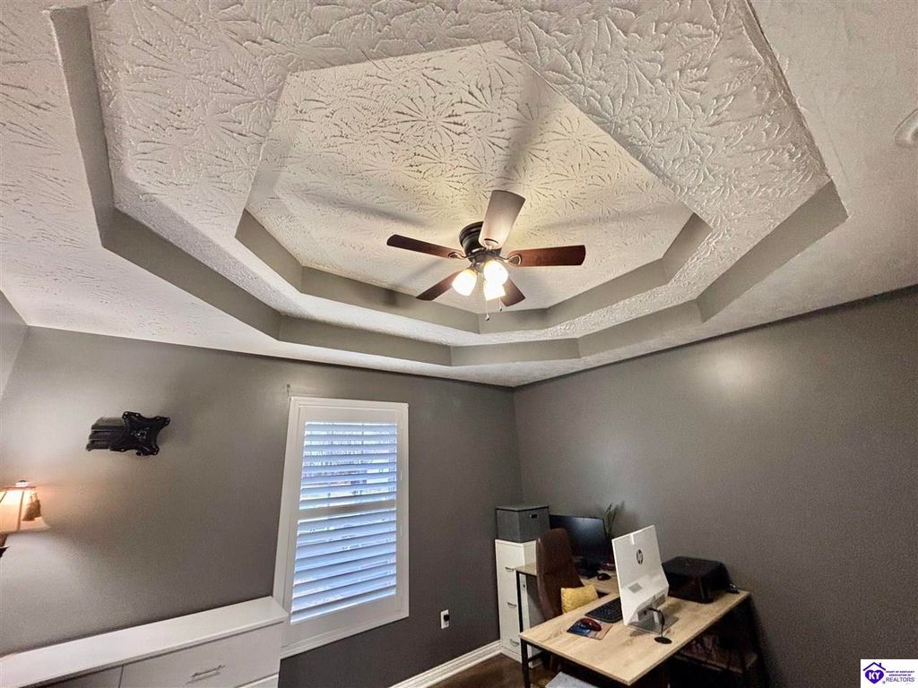 BACKYARD BLISS! This residence presents an abundance of charm, offering a captivating exterior fa ade. Upon entering, the attractive front covered porch immediately captures attention, showcasing elegant vaulted ceilings within an open-concept layout that seamlessly integrates the dining and kitchen areas, flooded with natural light. The split floor plan configuration is particularly desirable. The primary suite boasts distinctive tree ceilings, lending character, and features an en-suite bathroomt. The additional bedrooms are generously proportioned, each with sizable closets. A recently renovated second bathroom now offers an open layout, conveniently combined with laundry facilities and bespoke cabinetry. The kitchen, dining, and eating area is distinguished by stylish woodwork, creating a beautiful space. A spacious single-car garage, expansive deck with fire pit, and covered area provide ample opportunities for relaxation and taking in the views, complemented by garden boxes and a newly installed privacy fence. The storage capacity of the property is noteworthy, with an outbuilding featuring electrical connections, a loft, and additional storage under a lean-to structure, presenting numerous possibilities. SO MUCH TO LOVE! Located in the Heart of Kentucky, this residence is mere miles from Green River Lake and offers convenient access to shopping, restaurants, boutiques, a hospital, and the Campbellsville Country Club. Data believed to be correct but not guaranteed. Buyer to verify data prior to offer.