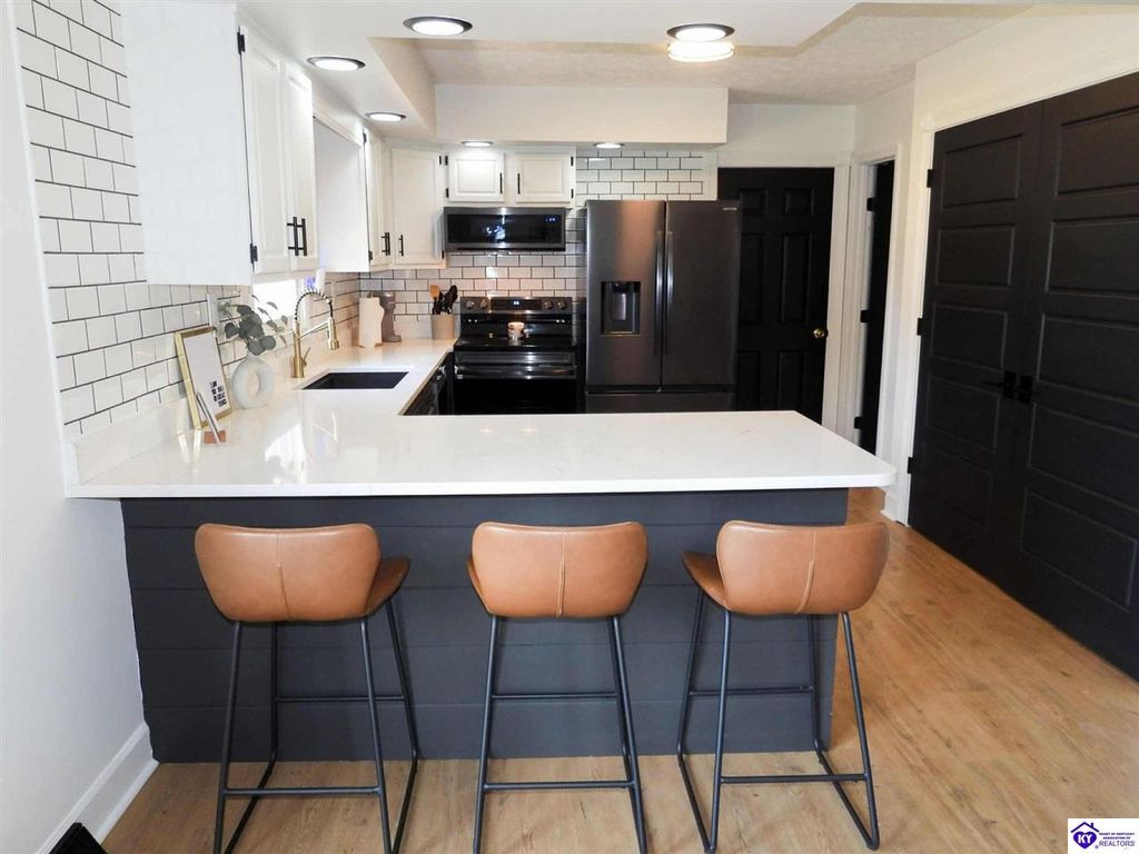 Charming brick ranch in a peaceful yet convenient location! This beautifully updated 3-bedroom, 2-bathroom brick ranch combines classic charm with modern upgrades. Nestled in a quiet, family-friendly neighborhood just minutes from town, this home offers both tranquility and convenience. The spacious kitchen offers plenty of cabinet space, a sleek new backsplash and stunning quartz countertops. This home offers two full bathrooms including the great addition of a double vanity with granite countertops. New flooring throughout the home, gives it a fresh and modern feel!. Freshly painted interior, ready for you to move right in! A full, unfinished basement offers endless potential for storage, a home gym, or future living space. The exterior offers a fantastic front porch and a spacious fenced-in backyard, ideal for pets, kids, or entertaining. There is an attached 2-car garage for convenience and additional storage. This home checks all the boxes: well-maintained, tastefully updated, and ideally located. Whether you're a first-time buyer, growing family, or downsizing, this property is a must-see!