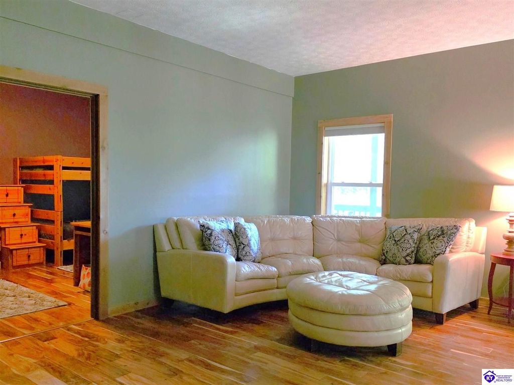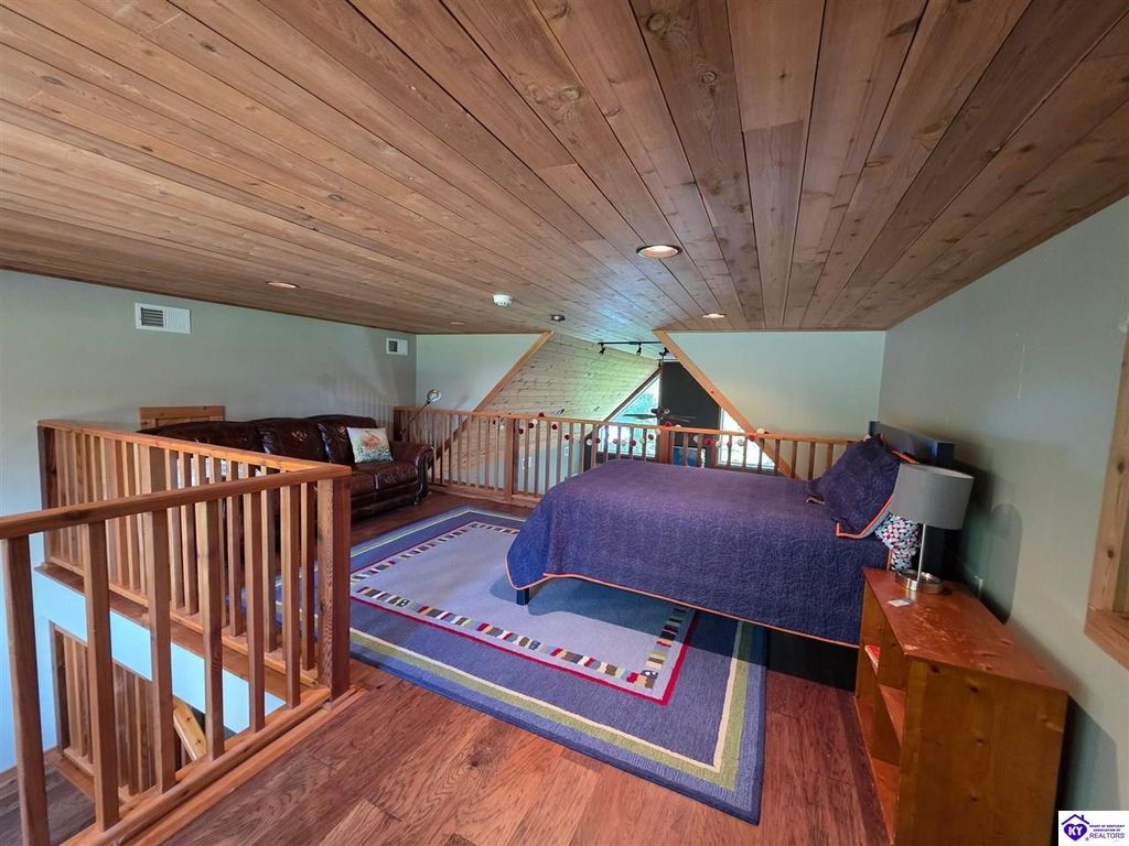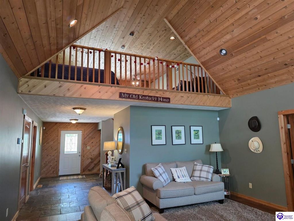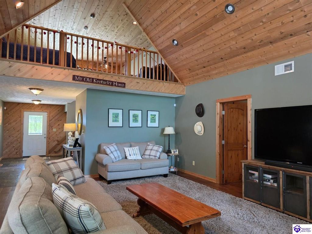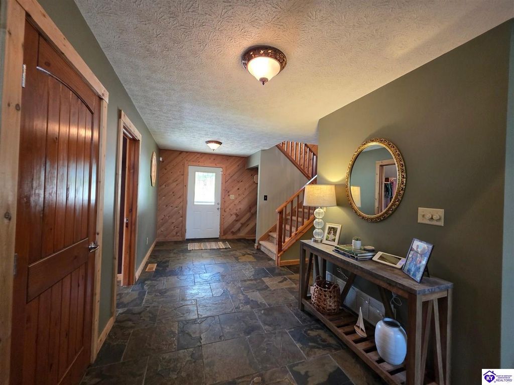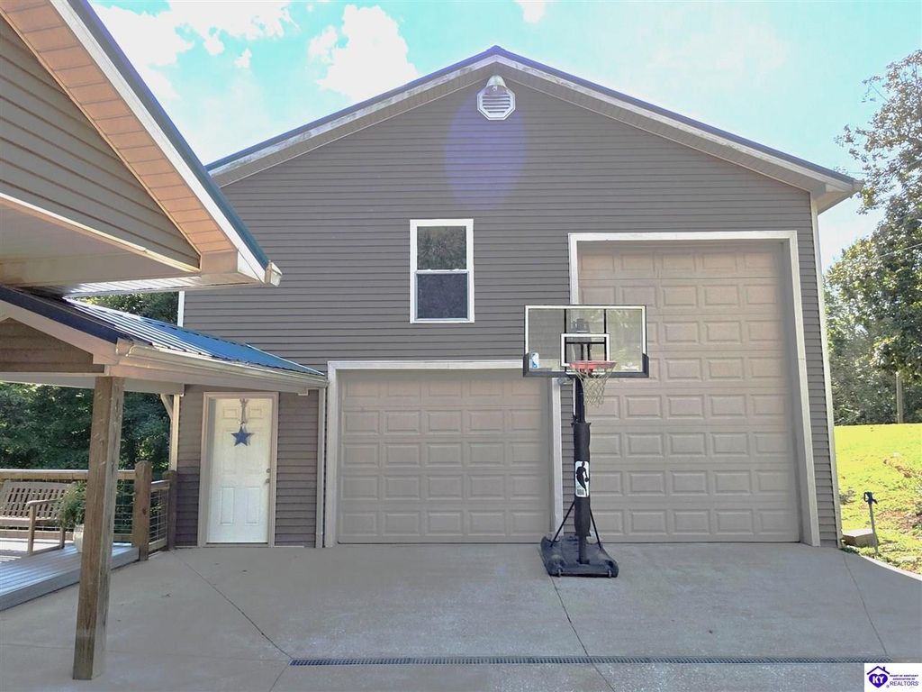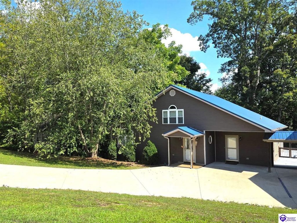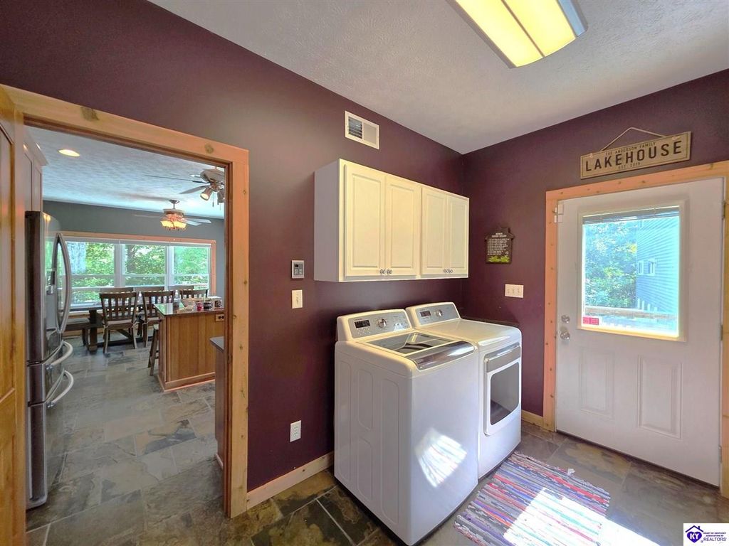 AVAILALBE FOR A LIMITED TIME THIS SEASON! Discover the charm of this stunning waterfront home, perfectly situated on two lots with two docks at the bottom of the property. This residence offers a blend of modern amenities and cozy living spaces, making it an ideal retreat for families and friends. 4 bedrooms and a 5th sleeping area or multi-purpose room - and TONS of parking, you can bring your family and friends and still have some privacy! Multiple decks let you spread out there too! TWO waterfront lots, TWO docks (one with 2 jet ski ports that stay!) Furniture is available too! Located in a beautiful neighborhood near two ramps, this home is in the middle of everything by land and by water. The super chill location on a cove off Long Lick Creek is perfect for kayaking, floating, or sunbathing on the docks. Step inside and be instantly greeted by cozy, warm colors that blend perfectly with the natural setting of this lake home. Just off the large foyer is a guest bedroom, full bath, stairs to the loft sleeping area AND catch your first glimpse of that beautiful great room! This open-concept living area is where you'll find that BIG, stone fireplace as the centerpiece of the lake-side wall. Beautiful stone floors help to set the mood for living at the lake! The great room opens up to the main living areas, providing a spacious and inviting atmosphere. With lots of sleeping areas and tons of parking options, there's plenty of room for everyone! There's even room for a large camper or RV in the detached, multipurpose shed! Adjacent to the fireplace is a crowd-sized dining area with a window wall and adjoining kitchen. The custom kitchen comes with tons of cabinets and upgrades, making it a chef's dream! The main level laundry is conveniently located near the outdoors, adding to the home's practicality. The primary bedroom suite on the main level includes a bath with heated floors, a tile shower, and a vintage-style tub. There's also a screen porch off the primary bedroom for morning coffee or afternoon naps. The lower level features a family area with an electric fireplace that changes colors, a dining or card table, and another lounging area to relax. The bunk room on this level comfortably sleeps eight, and there's another sleeping area or multi-purpose room that's plumbed for a future bar. Storage is abundant both inside and outside the home, including a huge RV-sized shed with tall overhead doors that let you drive THROUGH the building!