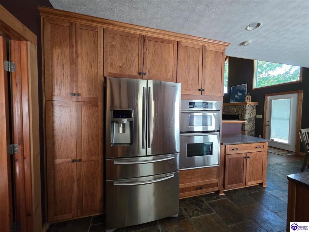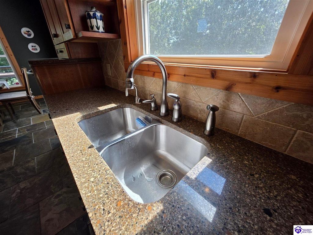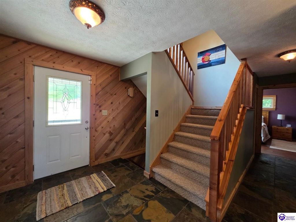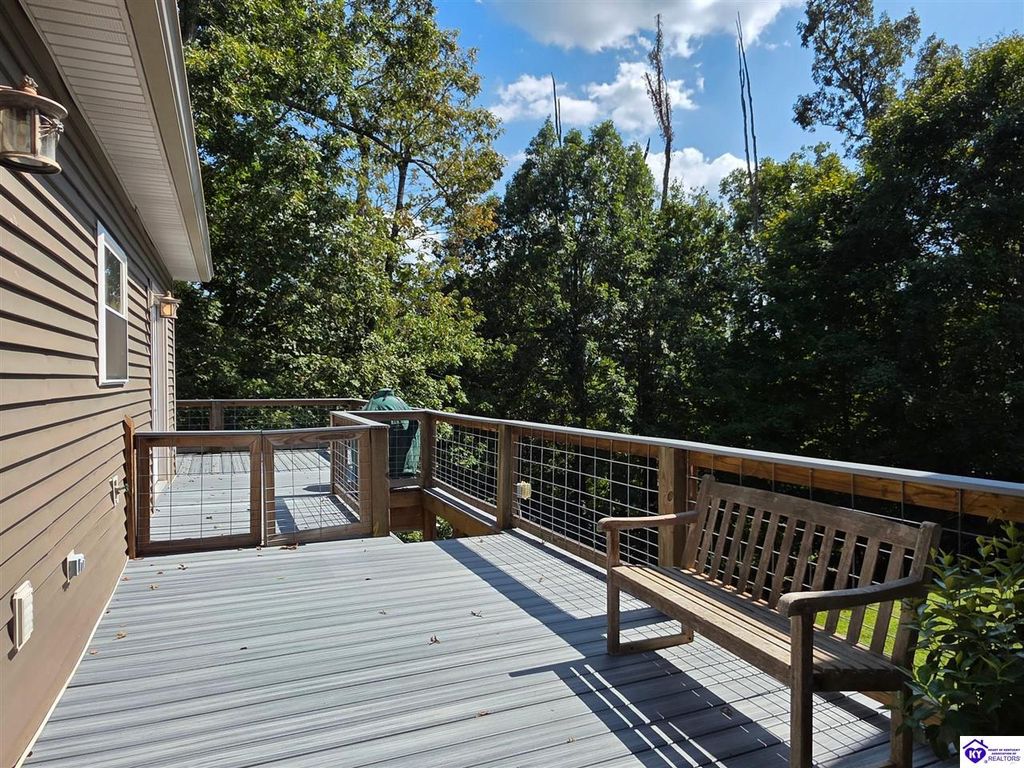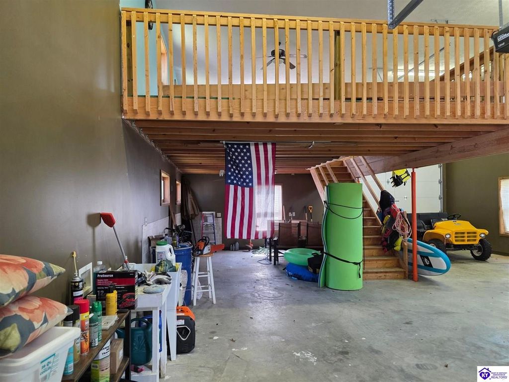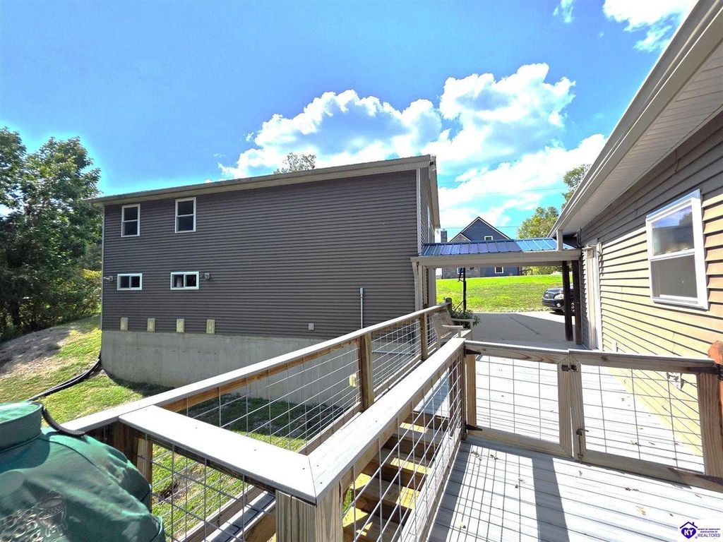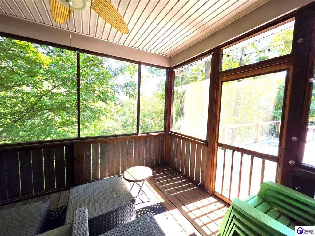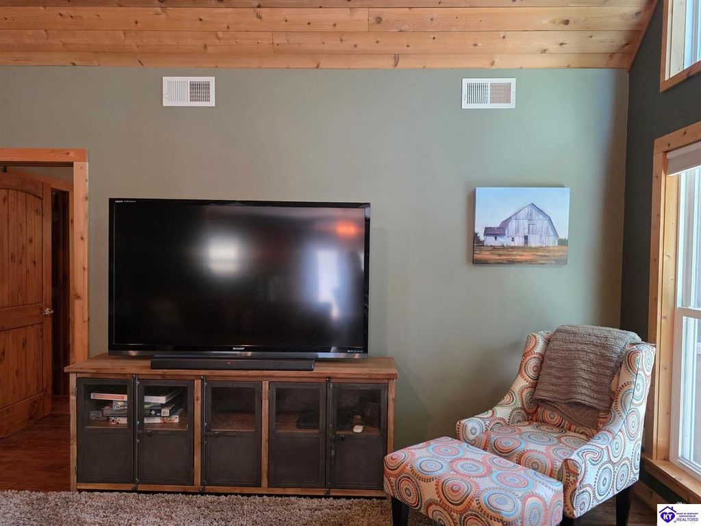 AVAILALBE FOR A LIMITED TIME THIS SEASON! Discover the charm of this stunning waterfront home, perfectly situated on two lots with two docks at the bottom of the property. This residence offers a blend of modern amenities and cozy living spaces, making it an ideal retreat for families and friends. 4 bedrooms and a 5th sleeping area or multi-purpose room - and TONS of parking, you can bring your family and friends and still have some privacy! Multiple decks let you spread out there too! TWO waterfront lots, TWO docks (one with 2 jet ski ports that stay!) Furniture is available too! Located in a beautiful neighborhood near two ramps, this home is in the middle of everything by land and by water. The super chill location on a cove off Long Lick Creek is perfect for kayaking, floating, or sunbathing on the docks. Step inside and be instantly greeted by cozy, warm colors that blend perfectly with the natural setting of this lake home. Just off the large foyer is a guest bedroom, full bath, stairs to the loft sleeping area AND catch your first glimpse of that beautiful great room! This open-concept living area is where you'll find that BIG, stone fireplace as the centerpiece of the lake-side wall. Beautiful stone floors help to set the mood for living at the lake! The great room opens up to the main living areas, providing a spacious and inviting atmosphere. With lots of sleeping areas and tons of parking options, there's plenty of room for everyone! There's even room for a large camper or RV in the detached, multipurpose shed! Adjacent to the fireplace is a crowd-sized dining area with a window wall and adjoining kitchen. The custom kitchen comes with tons of cabinets and upgrades, making it a chef's dream! The main level laundry is conveniently located near the outdoors, adding to the home's practicality. The primary bedroom suite on the main level includes a bath with heated floors, a tile shower, and a vintage-style tub. There's also a screen porch off the primary bedroom for morning coffee or afternoon naps. The lower level features a family area with an electric fireplace that changes colors, a dining or card table, and another lounging area to relax. The bunk room on this level comfortably sleeps eight, and there's another sleeping area or multi-purpose room that's plumbed for a future bar. Storage is abundant both inside and outside the home, including a huge RV-sized shed with tall overhead doors that let you drive THROUGH the building!