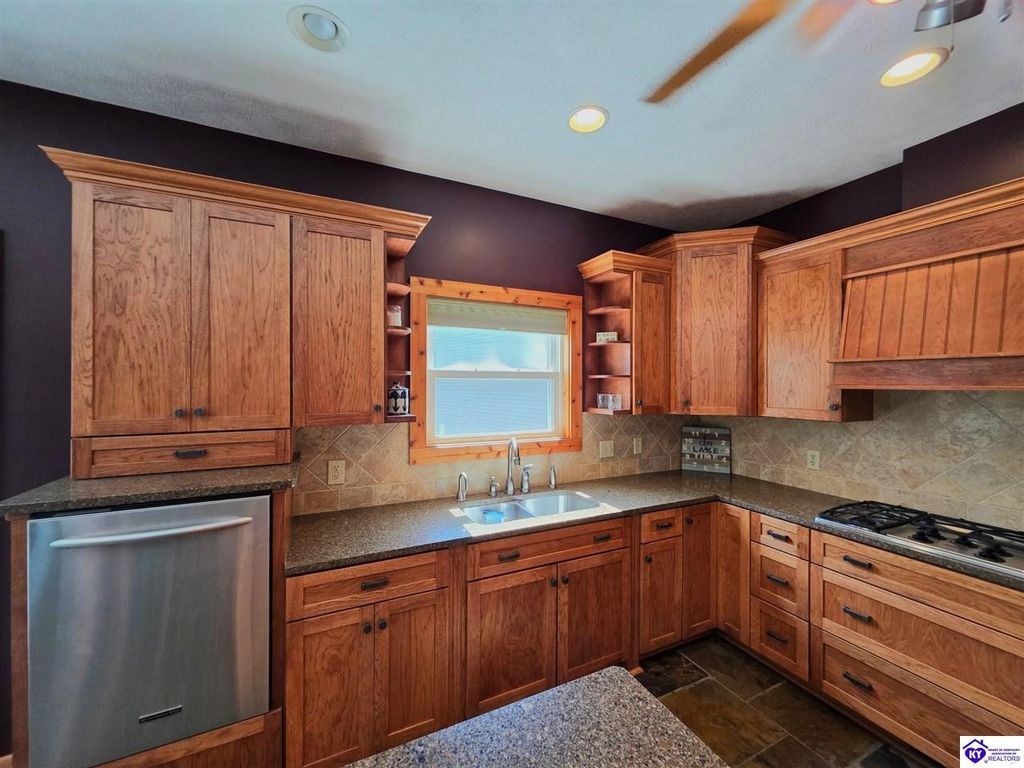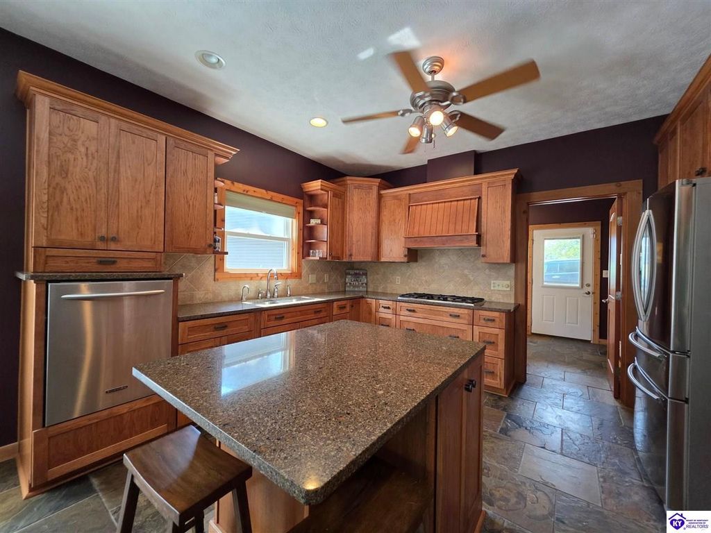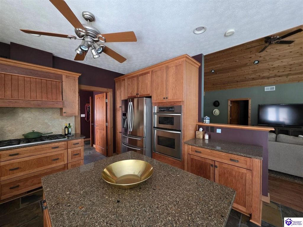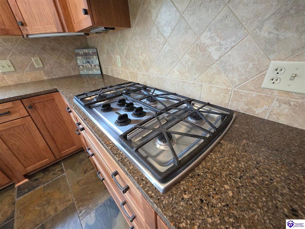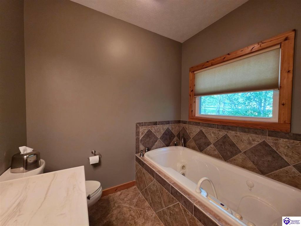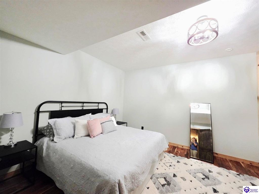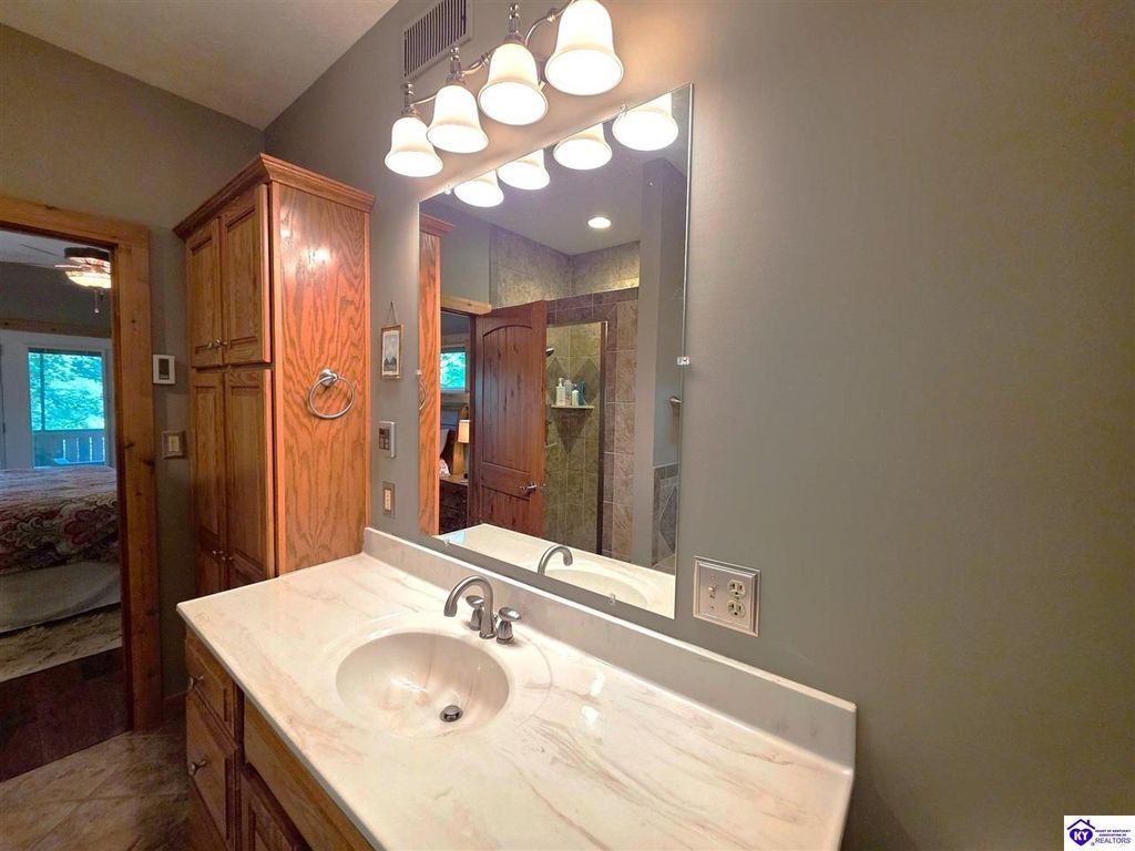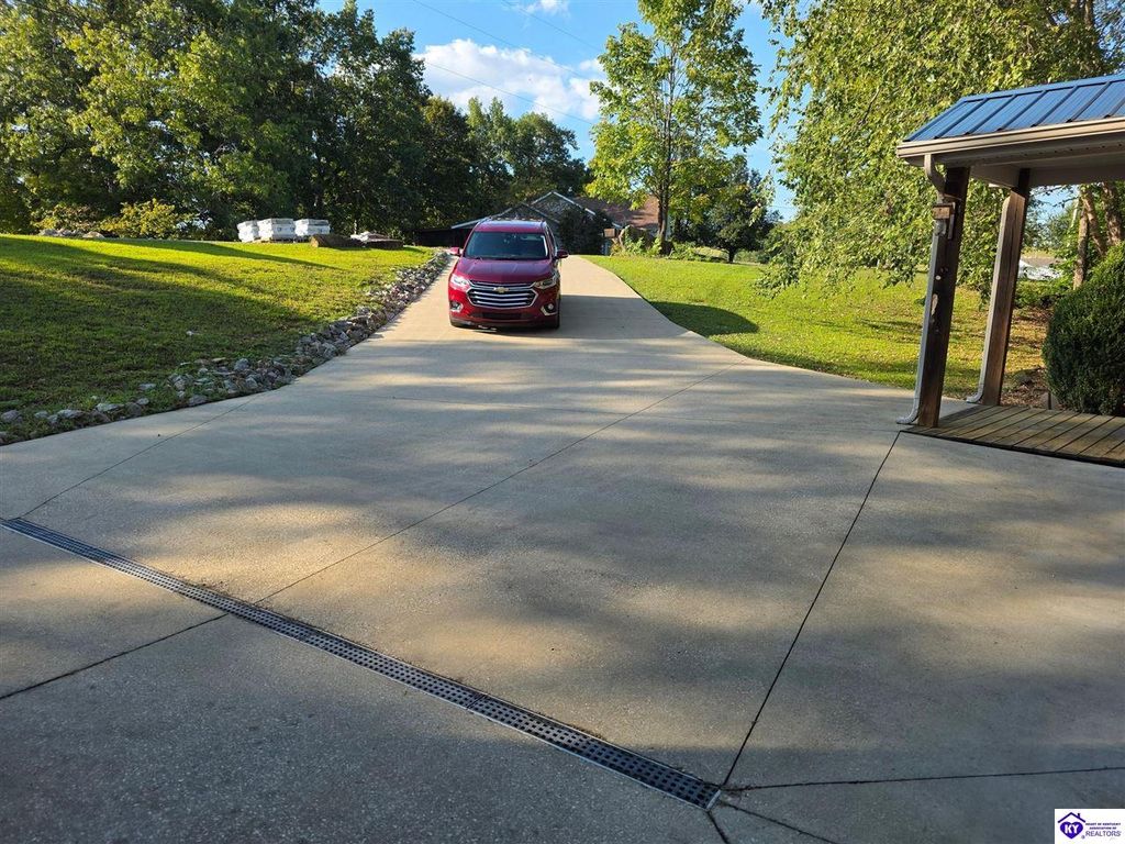 AVAILALBE FOR A LIMITED TIME THIS SEASON! Discover the charm of this stunning waterfront home, perfectly situated on two lots with two docks at the bottom of the property. This residence offers a blend of modern amenities and cozy living spaces, making it an ideal retreat for families and friends. 4 bedrooms and a 5th sleeping area or multi-purpose room - and TONS of parking, you can bring your family and friends and still have some privacy! Multiple decks let you spread out there too! TWO waterfront lots, TWO docks (one with 2 jet ski ports that stay!) Furniture is available too! Located in a beautiful neighborhood near two ramps, this home is in the middle of everything by land and by water. The super chill location on a cove off Long Lick Creek is perfect for kayaking, floating, or sunbathing on the docks. Step inside and be instantly greeted by cozy, warm colors that blend perfectly with the natural setting of this lake home. Just off the large foyer is a guest bedroom, full bath, stairs to the loft sleeping area AND catch your first glimpse of that beautiful great room! This open-concept living area is where you'll find that BIG, stone fireplace as the centerpiece of the lake-side wall. Beautiful stone floors help to set the mood for living at the lake! The great room opens up to the main living areas, providing a spacious and inviting atmosphere. With lots of sleeping areas and tons of parking options, there's plenty of room for everyone! There's even room for a large camper or RV in the detached, multipurpose shed! Adjacent to the fireplace is a crowd-sized dining area with a window wall and adjoining kitchen. The custom kitchen comes with tons of cabinets and upgrades, making it a chef's dream! The main level laundry is conveniently located near the outdoors, adding to the home's practicality. The primary bedroom suite on the main level includes a bath with heated floors, a tile shower, and a vintage-style tub. There's also a screen porch off the primary bedroom for morning coffee or afternoon naps. The lower level features a family area with an electric fireplace that changes colors, a dining or card table, and another lounging area to relax. The bunk room on this level comfortably sleeps eight, and there's another sleeping area or multi-purpose room that's plumbed for a future bar. Storage is abundant both inside and outside the home, including a huge RV-sized shed with tall overhead doors that let you drive THROUGH the building!