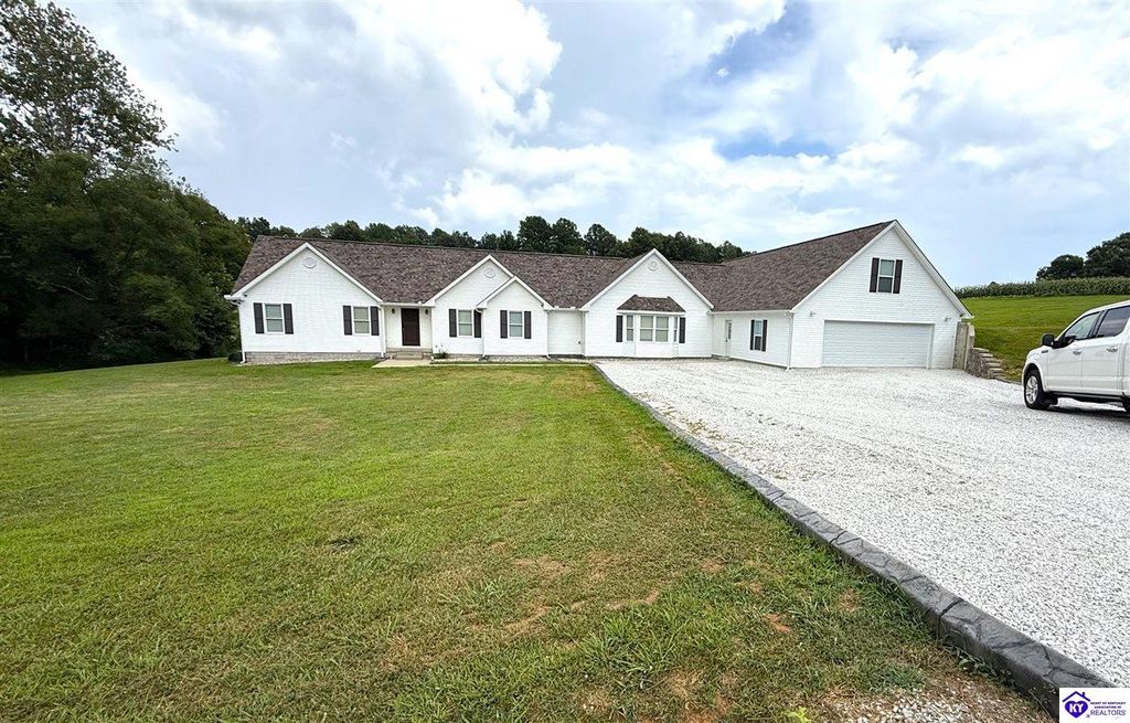 This home offers so much room you may feel Lost in Space! Close to Nolin Lake and plenty of room for your toys yet with fiber optic internet and mesh network you may choose to work from the home office and enjoy your privacy. Your home features 5 bedrooms plus rooms for more if needed. Original primary bedroom has a private bath and walk in closet. In 2010 this home almost doubled in size adding a huge master suite and more rooms. So yes there are 2 Primary Suites in this home! In 2021 your home grew even more with a huge 30' x 30' garage roughed in with water, a similar sized family room plus a huge bonus room above. For your year round economical comfort the home has gas heating along with electric heat pump. Mini splits keep newest sections comfortable. Outside you will find upgrades with a maintenance free lifestyle in mind: concrete curbing & gutter splash diverters, stamped concrete patio and an encapsulated crawl space under the original portion. The newer sections are on concrete slab foundation. Seller is offering a 1 year Home Buyer warranty for your Peace of Mind! If you want lots of room for your needs, Remember to make sure to check out this Spacious Home.