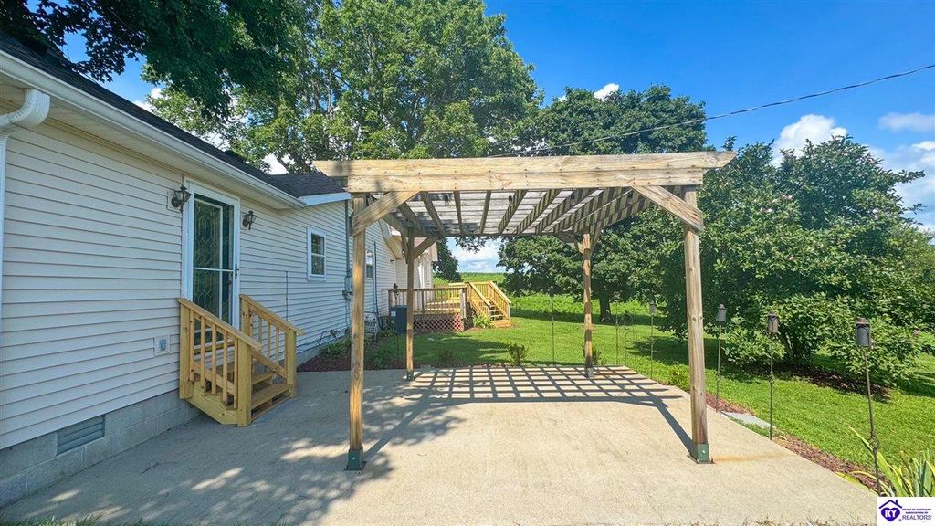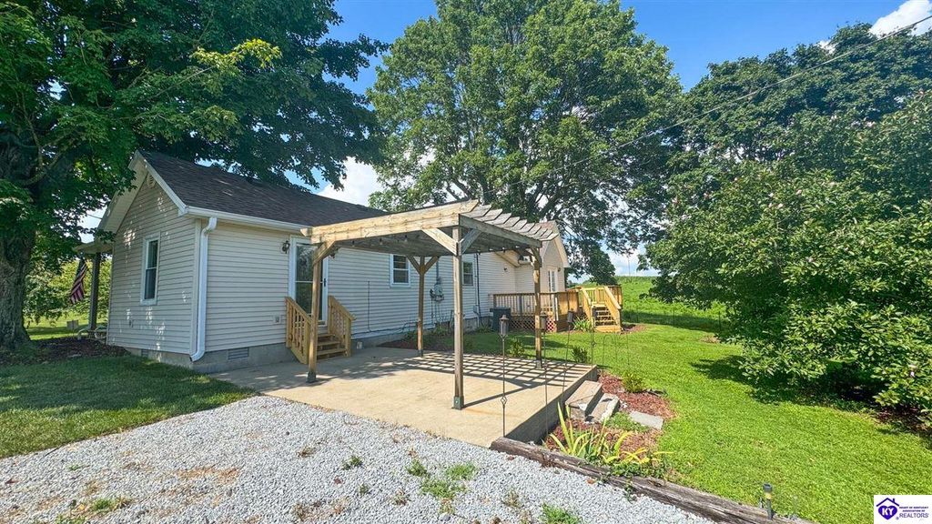 Charming Country Retreat with Modern Updates on One Acre. This beautifully updated 3-bedroom, 1-bath home is full of character and nestled on a peaceful one-acre lot in North Taylor County offering the perfect blend of rustic charm and modern comfort. Step inside to discover soaring vaulted ceilings, fresh light and ceiling fixtures, and stunning new granite countertops that elevate the kitchen space. Enjoy outdoor living from every angle: relax on the cozy covered front porch with a swing, unwind on the brand-new deck off the primary bedroom, or entertain under the pergola on the back patio just off the dining area. Major updates include a new roof (2022), HVAC system (2020), and hot water heater (approx. 2023), ensuring peace of mind for years to come. This isn't your typical cookie-cutter home it's a unique and inviting space that feels like home the moment you arrive. Don't miss your chance to own a slice of country paradise! SEE SURVEY IN PHOTOS: Tract 1 is one acre