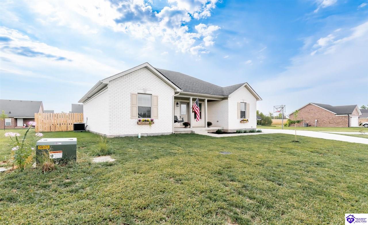 This beautiful 1400 sq ft (apx) split ranch home is only 2 years old and offers 3 bedrooms and 2 bathrooms. Better than new with owner installed upgrades and landscaping! The open floorplan features vaulted ceilings in the living room and a kitchen with granite countertops, an island with updated backsplash, and a pantry. The primary suite includes a tray ceiling, double vanity with stone top, and a walk-in shower. Auxiliary bedroom accented with a stylish board and batten feature wall. The fenced backyard includes a pergola-covered patio, providing a great space for outdoor enjoyment. Situated on 0.25 acre apx, this home is located in historic Bardstown, just minutes from the walkable downtown area, voted the "Most Beautiful Small Town in America".