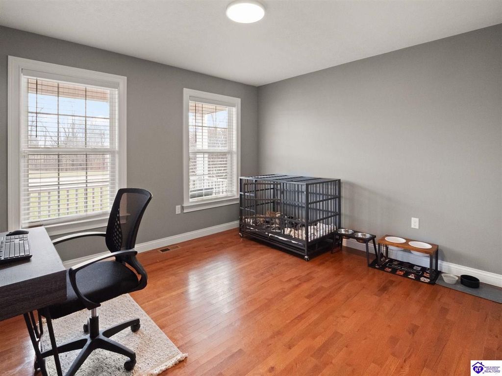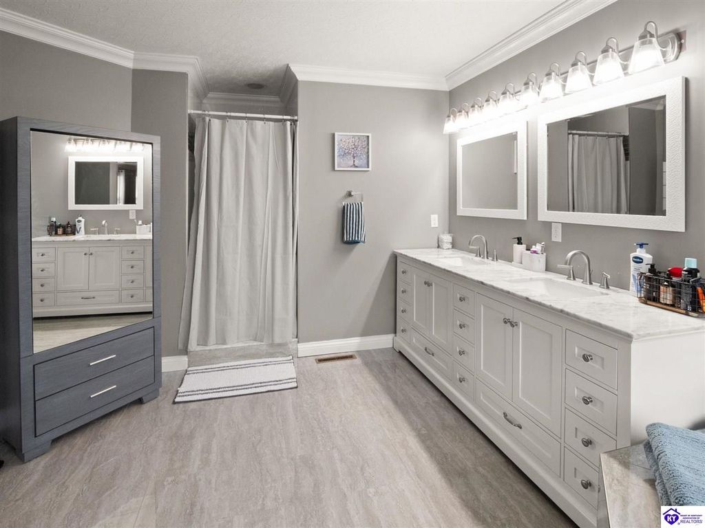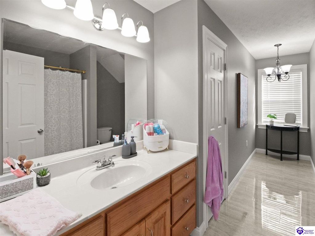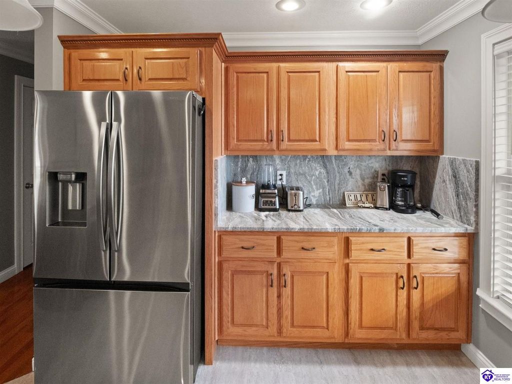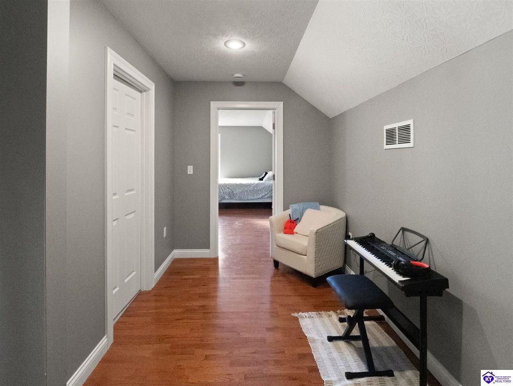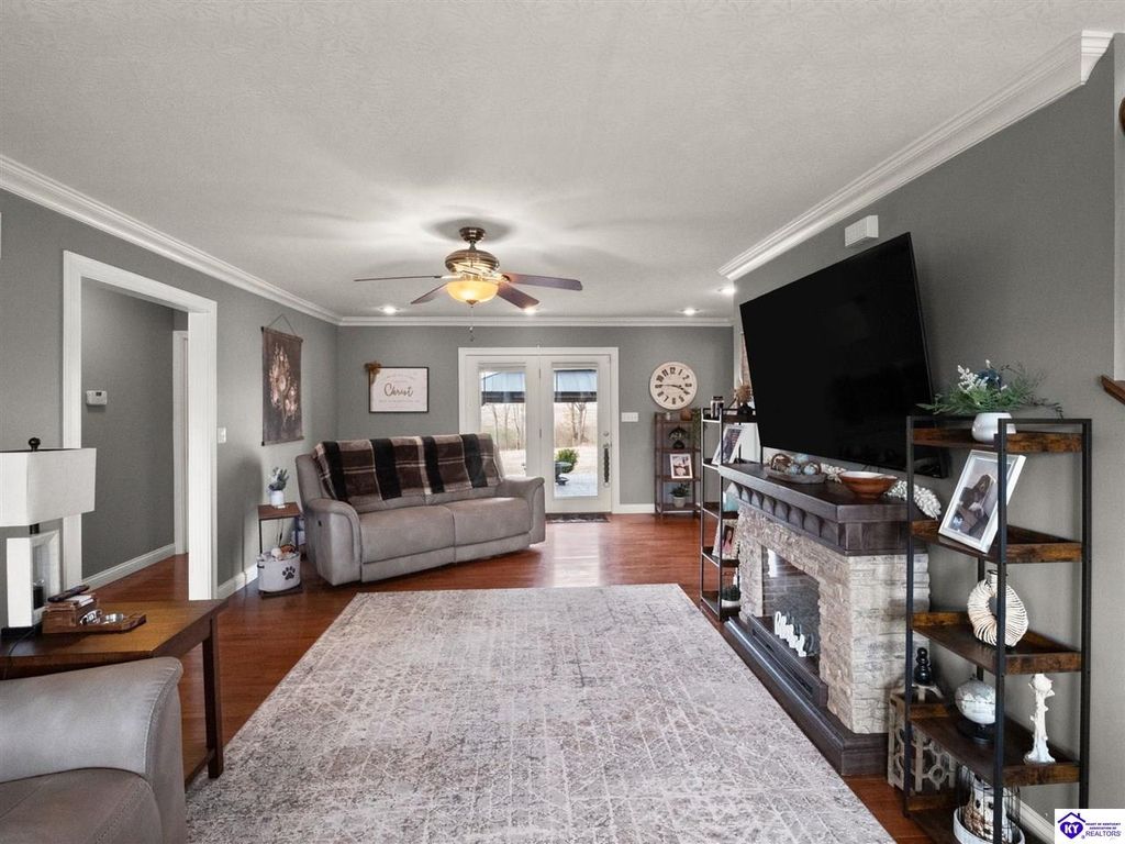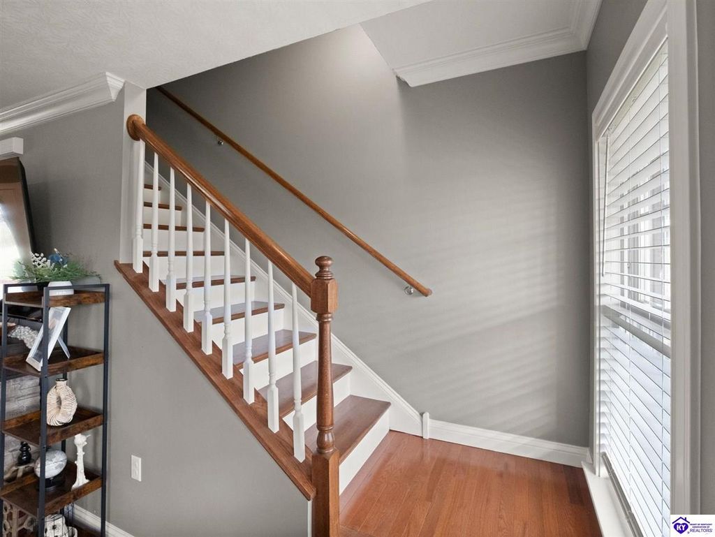 Beautiful all Brick 1.5-story residence located in Bluegrass Estates, offering 5 bedrooms and 3 full bathrooms with generous living space ideal for refined family living. From the moment you enter, a welcoming living room sets the tone for the quality and craftsmanship found throughout the home. The open concept kitchen is beautifully appointed with all new, top of the line Samsung appliances, including an oven with a built-in air fryer, custom cabinetry, a large island with breakfast bar seating, and a spacious pantry. A dedicated laundry room and utility closet provide added convenience. Luxury finishes include hardwood flooring throughout, marble flooring in all bathrooms and the utility room, and elegant crown molding throughout the home. The main level features three bedrooms, including a grand primary suite with a stunning tray ceiling, double vanity, scenic views, and a spa-inspired bathroom complete with a beautiful soaking tub, and a walk-in shower. The upper level offers two additional bedrooms with hardwood flooring, a large, spacious bathroom, and a walk-in storage room over the garage, providing the flexibility to create an additional bedroom, private office, or bonus space. Designed with comfort and efficiency in mind, the home is heated and cooled by a geothermal HVAC system, delivering exceptional energy efficiency and lower utility costs. The outdoor living space is equally impressive on a 1.08 acre lot, featuring a spacious backyard ideal for large gatherings or letting pets roam freely. Enjoy a gazebo covered back porch, stamped concrete patio, and a composite deck surrounding the pool, complete with a new pump and ready for immediate enjoyment. This property is impeccably maintained and conveniently located near restaurants, shopping, banks, the post office, schools, and the city lake. As you can see, this home offers luxury, space, and an unbeatable location. So much to love, this is a great opportunity in Bluegrass Estates.