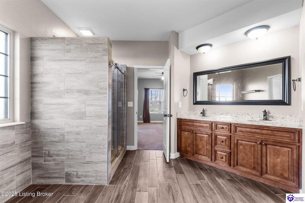 Step into a home that feels effortless from the moment you walk in. This spacious 5-bedroom, 2.5-bath beauty in Vine Grove's sought-after Vineland Park is designed for the way people actually live, with a bright, open kitchen, dining area, and living room that flow together seamlessly to keep everyone connected whether you're cooking, relaxing, or enjoying time together. Sunlight pours through large windows overlooking the oversized backyard, while the first-floor primary suite offers privacy and convenience and the second floor provides four additional bedrooms, a versatile loft, and a dedicated laundry room. Outside, nearly of an acre awaits - perfect for play, gardening, pets, or peaceful evenings - plus a wired storage shed ideal for hobbies or projects.