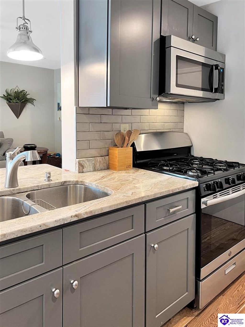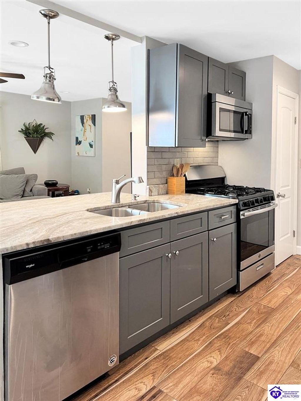 Designed to suit a variety of lifestyles, this home is loaded with thoughtful features and modern comforts. Upon entry, you're greeted by a cozy nook and you'll notice the new wood flooring that flows into the open-concept layout where the living room seamlessly connects to the eat-in kitchen. Natural light fills the room, with sliding doors leading to the deck with a lovely backyard view. Step outside to your private backyard oasis with a full privacy fence, spacious deck, and patio area. The hot tub stays which is an added bonus for relaxing or hosting guests! The kitchen features granite countertops, beautiful cabinets, and a peninsula that comfortably sit 2 to 3 bar stools. You'll love how spacious the primary suite is. It's the perfect place to unwind, complete with a large en-suite bath for added comfort. Convenient access to major roads: Watterson Expressway and I-65, you're also minutes from shopping destinations including Costco, Target, Kroger, Walmart, and Aldi. Outdoor lovers will appreciate being just 1 mile from Douglass Park and 4 miles from the scenic trails of Seneca Park. Don't miss your chance to own this move-in ready gem!