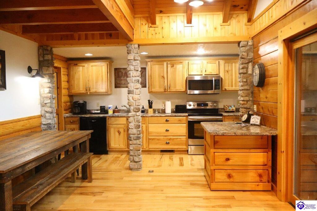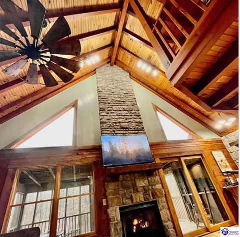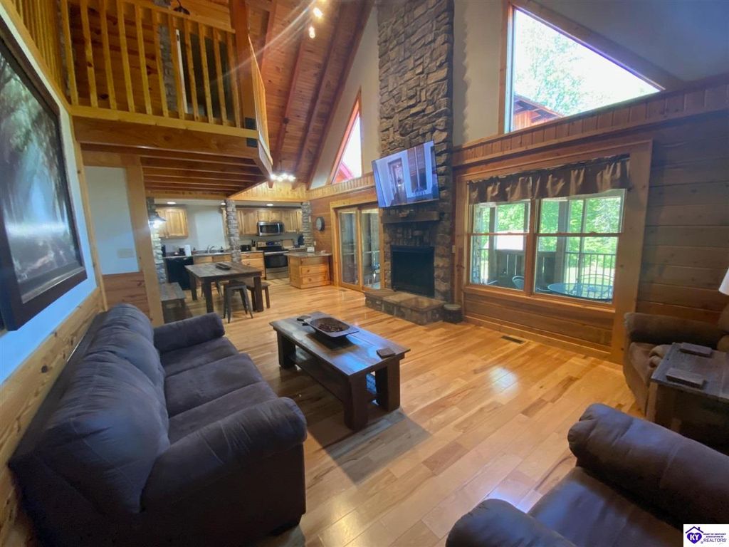 BARREN RIVER CABINS! Just over a mile from The Narrows Marina. 8 bedroom, 4 bath with 2 fireplaces, 2 kitchens, 2 family rooms, 2 game rooms. This is two separate living spaces joined by garage areas and can both be accessed from inside the cabin to make one very large living area. The large back yard features 2 firepits and 3 log cabins for kids to play in made from 1800's logs. Recent updates include remote birch fireplace gas logs, professional landscaping, new back decks & privacy fences, 2 HVAC units & condensation pumps, ceiling fans & light fixtures, exterior re-staining, grading & rock work. There's even an Amish built chapel recently built for a wedding.