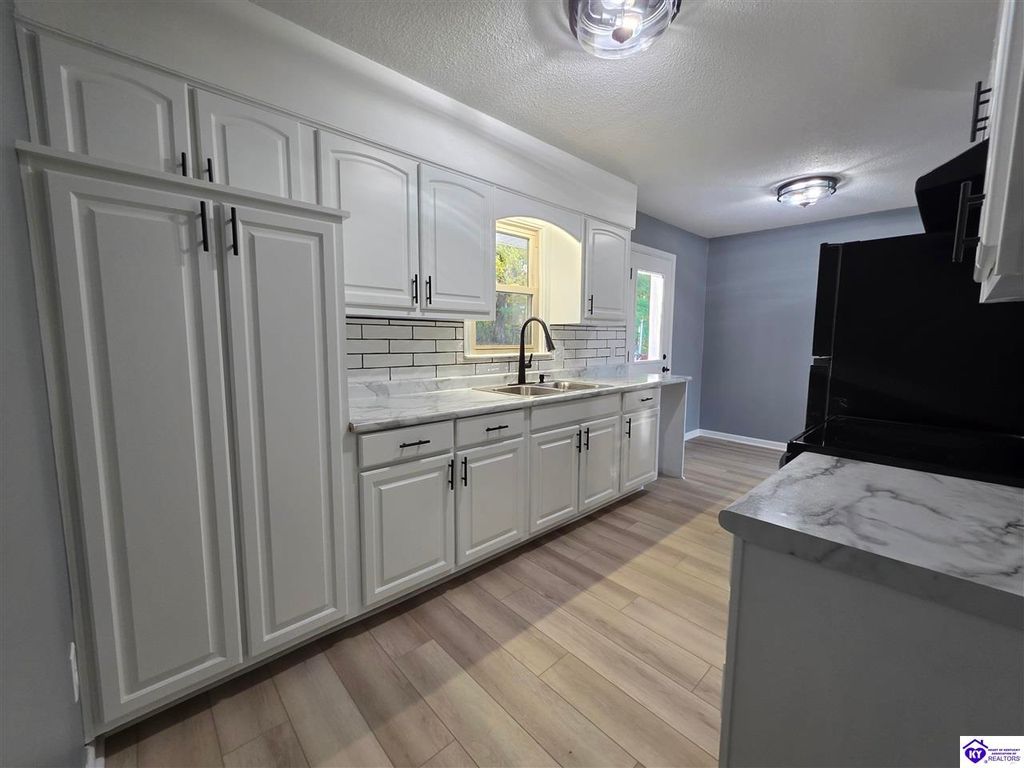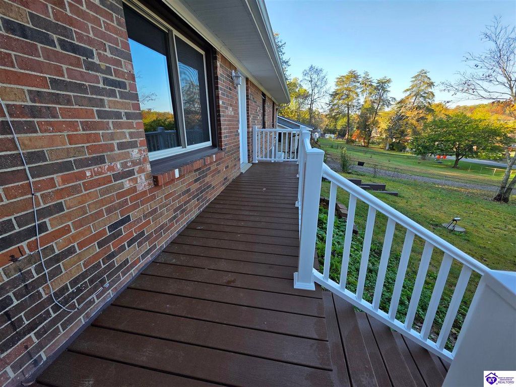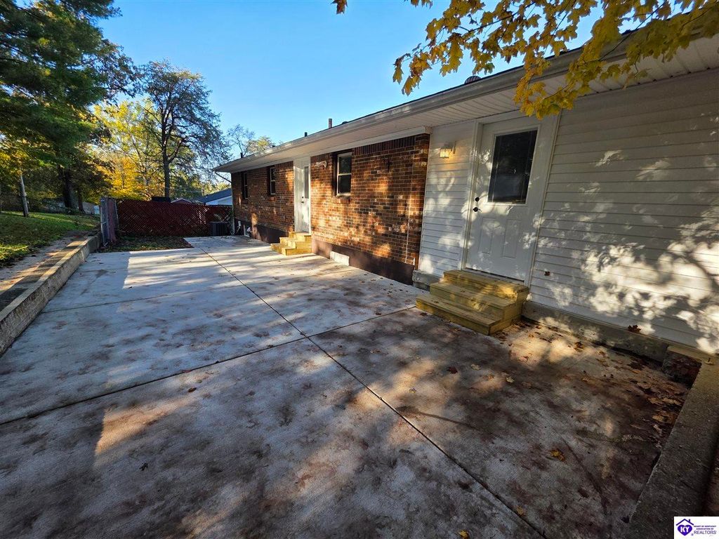 Welcome to 454 Pinewood Dr in Radcliff - a beautifully remodeled brick home offering comfort, character, and convenience. Centrally located between Ft. Knox Military Installation and the booming city of Elizabethtown, this home also sits just minutes from the 313 travel corridor, providing quick access to I-65 for an easy commute to Louisville or Nashville. Inside, you'll find a warm and inviting layout featuring hardwood flooring in the living room and all three bedrooms. The updated full bathroom includes a tiled shower, a separate jetted soaking tub, and stylish tile flooring. The kitchen comes fully equipped with a refrigerator, electric range/oven, hood fan, and dishwasher - all included with the sale. Additional updates include newer vinyl replacement windows, a newer electric water heater, and a brand-new sump pump in the basement. Outside, the property offers fully fenced front and rear yards, ideal for pets, outdoor activities, and privacy. The deep 1-bay garage features solid concrete walls, making it suitable as a storm shelter, and also includes a spacious patio above it for outdoor enjoyment. You'll also appreciate the large front porch, large rear patio, and storage shed. With a blend of upgrades, functionality, and a prime location near Ft. Knox, Elizabethtown, and major travel routes, this move-in-ready home is one you don't want to miss. Schedule your showing today!