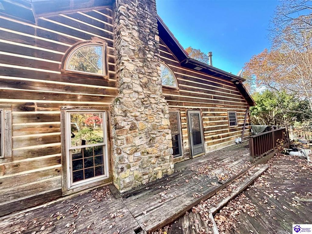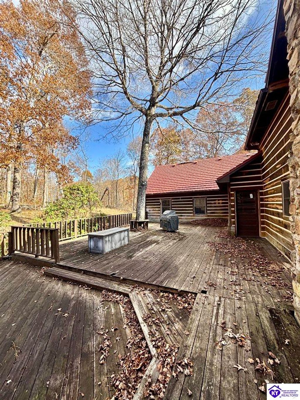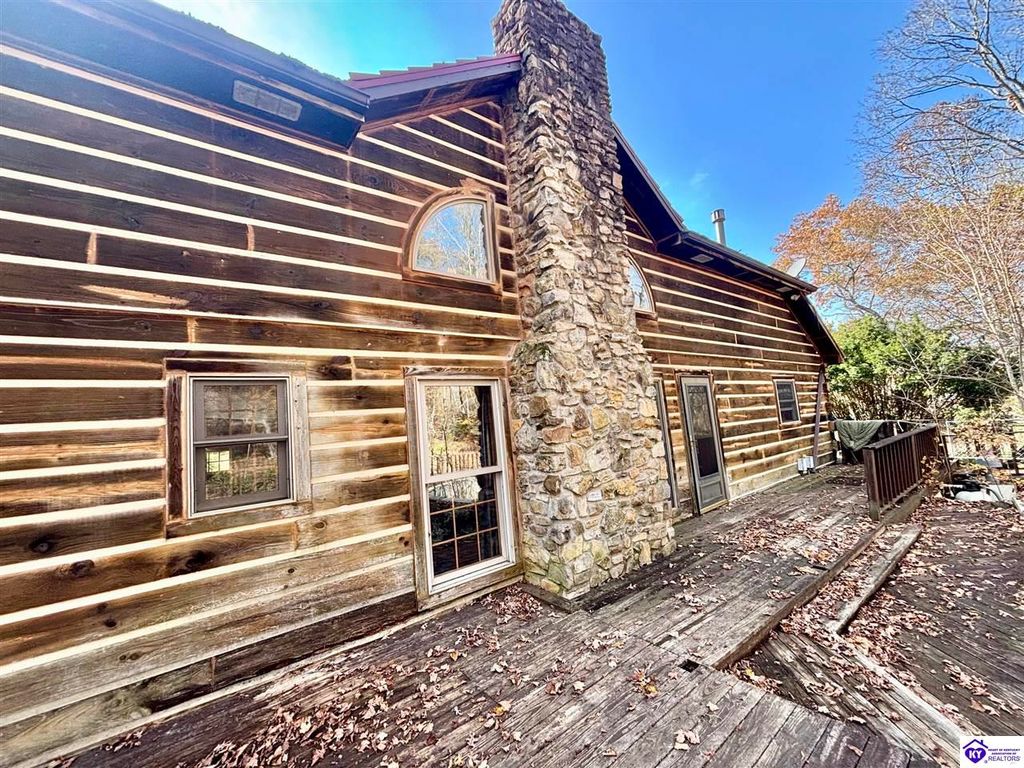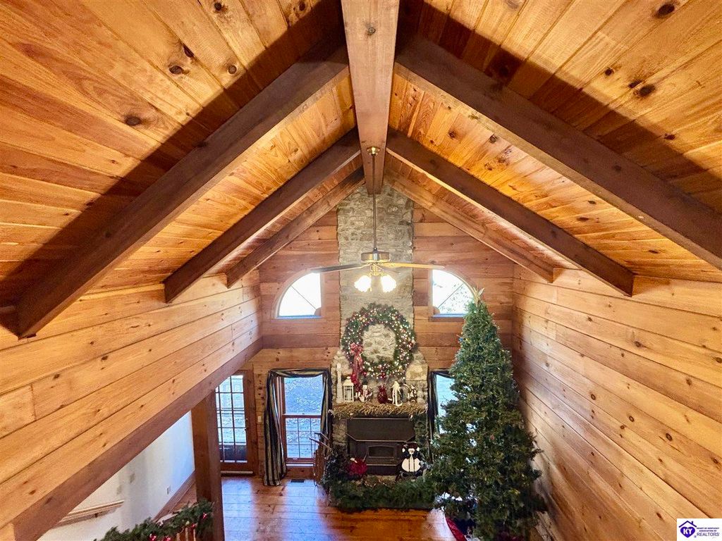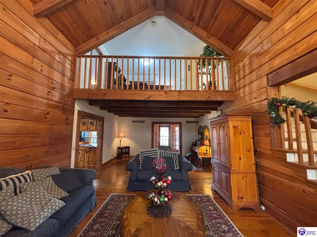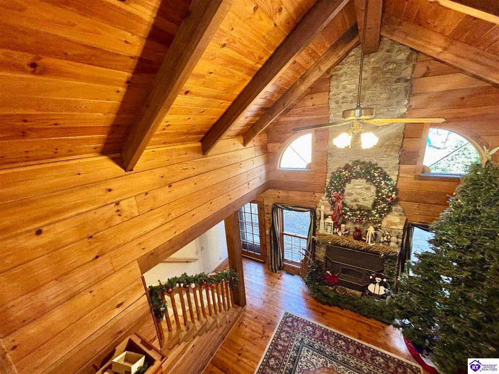 Pending-Sellers allowing back up offers.Gorgeous serene property set on 16 acres of picturesque land. This log home blends rustic charm with modern comforts, offering three bedrooms and endless character. At its heart is a stunningl stone with a wood-stove, soaring vaulted ceilings, and a spacious balcony that overlooks the open living areas below. Natural light pours in from expansive windows, highlighting the warmth of every hardwood surface.Follow the driveway over a creek through the trees to discover a storybook setting complete.The luxury of this expansive property offers unparalleled splendor. Upon arrival, the curb appeal of this stunning home, complete with a wraparound front porch, is truly breathtaking. The views are absolutely incredible. The two rocking chairs and swing are a lovely added touch. The kitchen features a breakfast nook with beautiful beams and woodwork, complementing the kitchen perfectly. The primary suite, conveniently located on thon the main floor, boasts two spacious walk-in closets and a luxurious primary bathroom, complete with a relaxing tub area, woodwork, two vanities, and a shower area. Additionally, the primary suite offers private access to the deck, ideal for enjoying a good book or morning coffee. Upstairs, the overlook of the beautiful den area features vaulted ceilings and a central office area, perfect for Two generously sized bedrooms upstairs each have walk-in closets, a significant advantage, and share Rustic Elegance meets modern comfort! Two generously sized bedrooms have walk-in closets upstairs, a significant advantage, a full-size bathroom. The basement boasts an open family room/game room area with a beautiful stone fireplace and access to the outdoors. Two additional rooms in the basement can be utilized as bedrooms or exercise rooms, offering endless possibilities. The ping-pong table and air hockey table in the basement are a bonus. The views from the back of the property are truly amazing, and the expansive deck is perfect for entertaining and relaxation, offering endless possibilities for your own retreat. Furthermore, a warm inviting atmosphere! truly amazing, and the expansive deck is perfect for entertaining and relaxation, offering endless possibilities for your own retreat. a huge bonus room area above the three-car garage awaits completion, providing additional providing opportunity for bonus room.