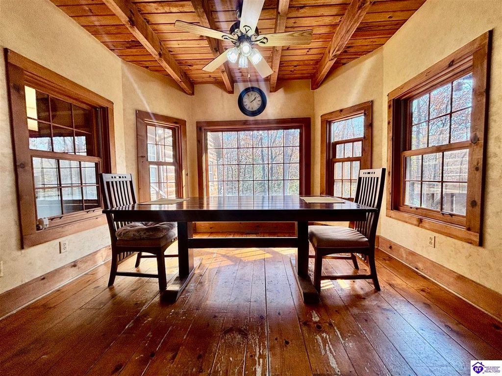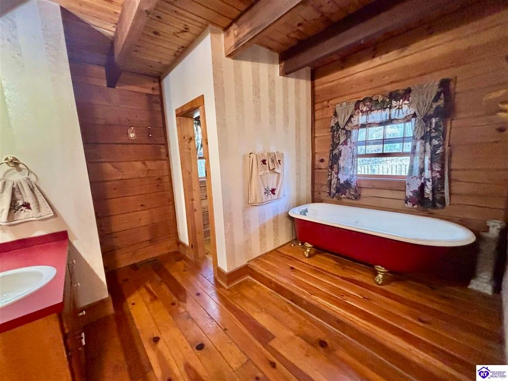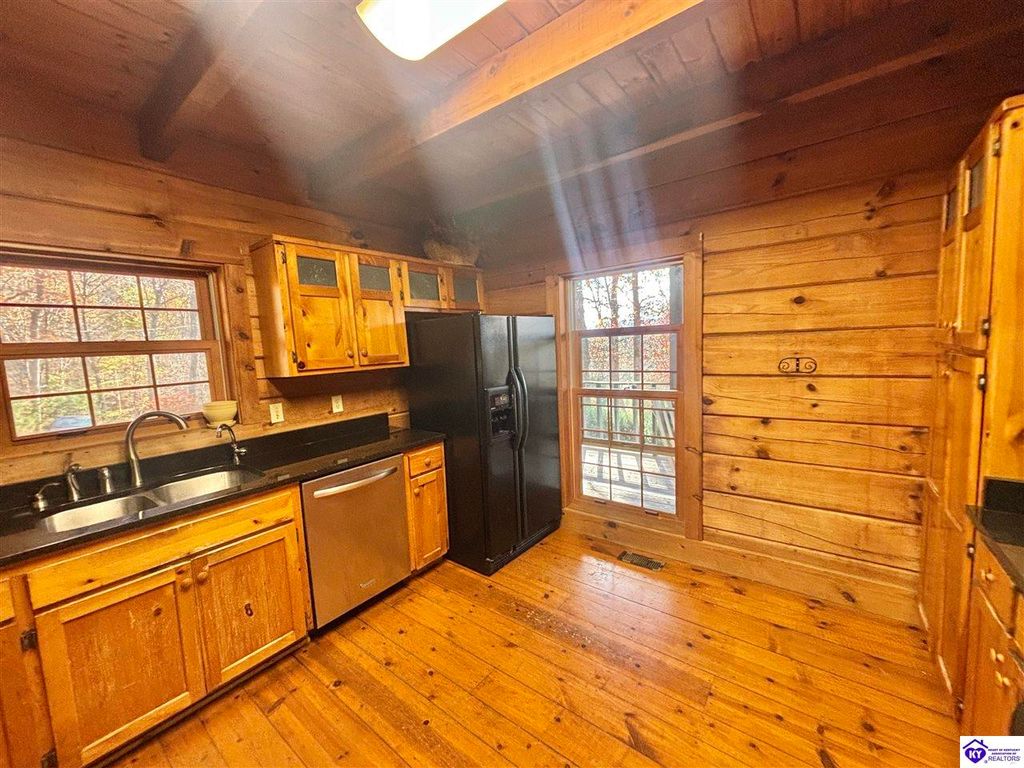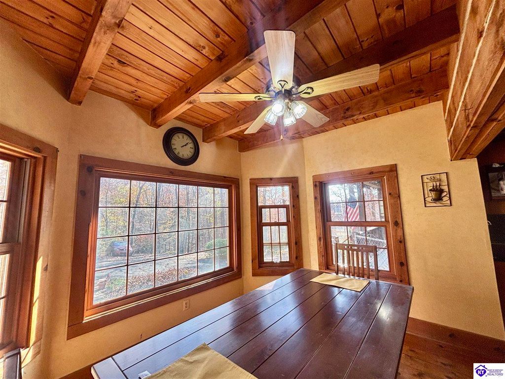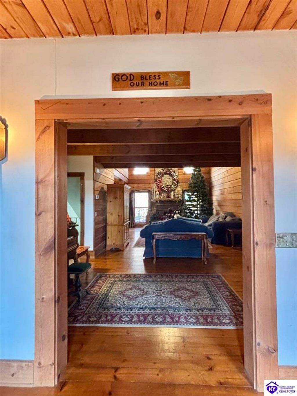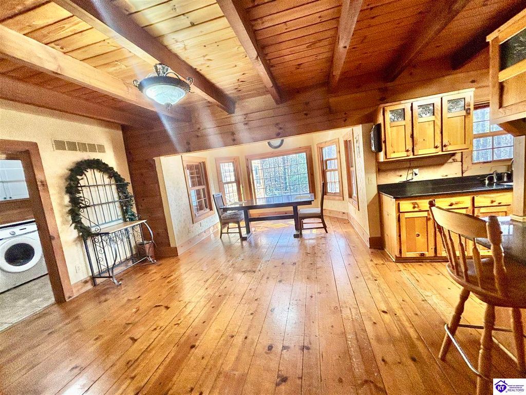 Pending-Sellers allowing back up offers.Gorgeous serene property set on 16 acres of picturesque land. This log home blends rustic charm with modern comforts, offering three bedrooms and endless character. At its heart is a stunningl stone with a wood-stove, soaring vaulted ceilings, and a spacious balcony that overlooks the open living areas below. Natural light pours in from expansive windows, highlighting the warmth of every hardwood surface.Follow the driveway over a creek through the trees to discover a storybook setting complete.The luxury of this expansive property offers unparalleled splendor. Upon arrival, the curb appeal of this stunning home, complete with a wraparound front porch, is truly breathtaking. The views are absolutely incredible. The two rocking chairs and swing are a lovely added touch. The kitchen features a breakfast nook with beautiful beams and woodwork, complementing the kitchen perfectly. The primary suite, conveniently located on thon the main floor, boasts two spacious walk-in closets and a luxurious primary bathroom, complete with a relaxing tub area, woodwork, two vanities, and a shower area. Additionally, the primary suite offers private access to the deck, ideal for enjoying a good book or morning coffee. Upstairs, the overlook of the beautiful den area features vaulted ceilings and a central office area, perfect for Two generously sized bedrooms upstairs each have walk-in closets, a significant advantage, and share Rustic Elegance meets modern comfort! Two generously sized bedrooms have walk-in closets upstairs, a significant advantage, a full-size bathroom. The basement boasts an open family room/game room area with a beautiful stone fireplace and access to the outdoors. Two additional rooms in the basement can be utilized as bedrooms or exercise rooms, offering endless possibilities. The ping-pong table and air hockey table in the basement are a bonus. The views from the back of the property are truly amazing, and the expansive deck is perfect for entertaining and relaxation, offering endless possibilities for your own retreat. Furthermore, a warm inviting atmosphere! truly amazing, and the expansive deck is perfect for entertaining and relaxation, offering endless possibilities for your own retreat. a huge bonus room area above the three-car garage awaits completion, providing additional providing opportunity for bonus room.