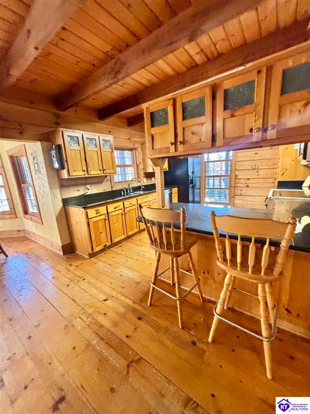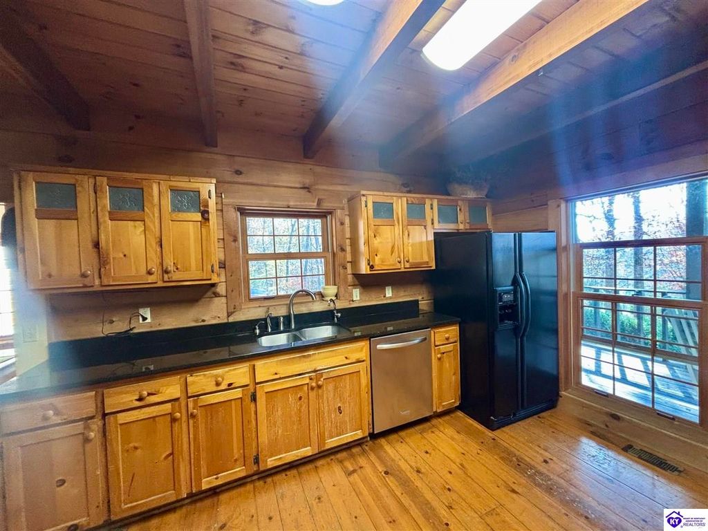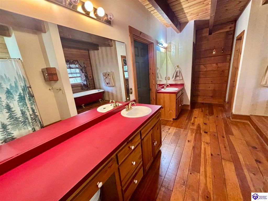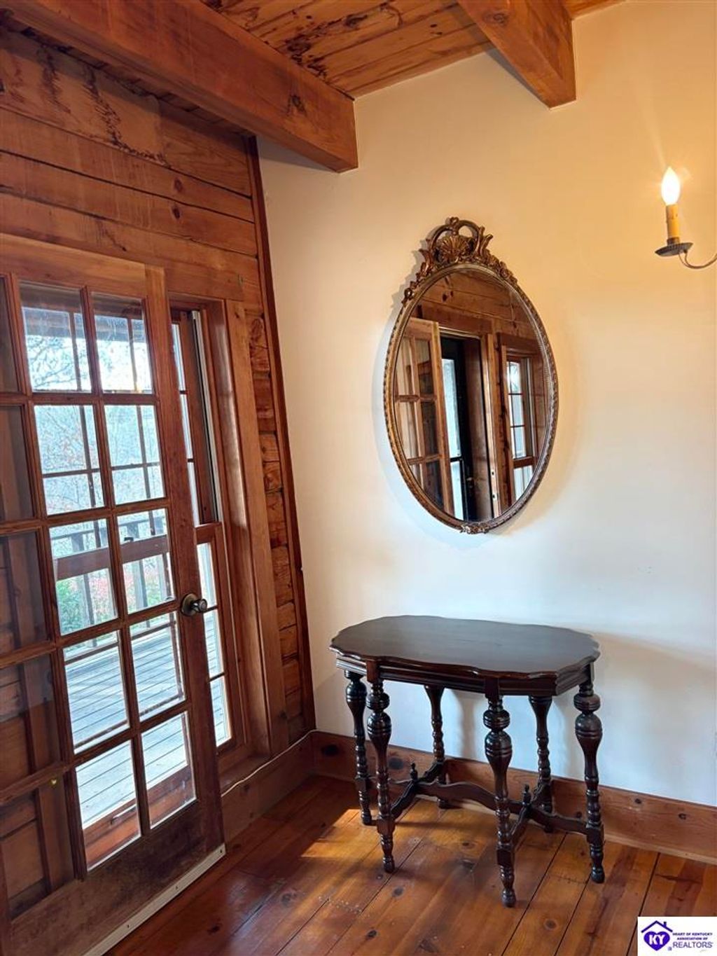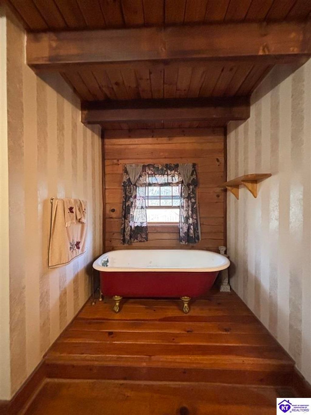 Pending-Sellers allowing back up offers.Gorgeous serene property set on 16 acres of picturesque land. This log home blends rustic charm with modern comforts, offering three bedrooms and endless character. At its heart is a stunningl stone with a wood-stove, soaring vaulted ceilings, and a spacious balcony that overlooks the open living areas below. Natural light pours in from expansive windows, highlighting the warmth of every hardwood surface.Follow the driveway over a creek through the trees to discover a storybook setting complete.The luxury of this expansive property offers unparalleled splendor. Upon arrival, the curb appeal of this stunning home, complete with a wraparound front porch, is truly breathtaking. The views are absolutely incredible. The two rocking chairs and swing are a lovely added touch. The kitchen features a breakfast nook with beautiful beams and woodwork, complementing the kitchen perfectly. The primary suite, conveniently located on thon the main floor, boasts two spacious walk-in closets and a luxurious primary bathroom, complete with a relaxing tub area, woodwork, two vanities, and a shower area. Additionally, the primary suite offers private access to the deck, ideal for enjoying a good book or morning coffee. Upstairs, the overlook of the beautiful den area features vaulted ceilings and a central office area, perfect for Two generously sized bedrooms upstairs each have walk-in closets, a significant advantage, and share Rustic Elegance meets modern comfort! Two generously sized bedrooms have walk-in closets upstairs, a significant advantage, a full-size bathroom. The basement boasts an open family room/game room area with a beautiful stone fireplace and access to the outdoors. Two additional rooms in the basement can be utilized as bedrooms or exercise rooms, offering endless possibilities. The ping-pong table and air hockey table in the basement are a bonus. The views from the back of the property are truly amazing, and the expansive deck is perfect for entertaining and relaxation, offering endless possibilities for your own retreat. Furthermore, a warm inviting atmosphere! truly amazing, and the expansive deck is perfect for entertaining and relaxation, offering endless possibilities for your own retreat. a huge bonus room area above the three-car garage awaits completion, providing additional providing opportunity for bonus room.