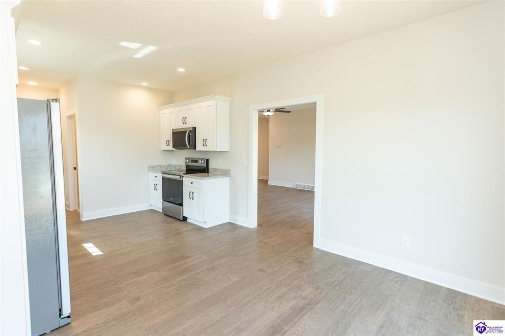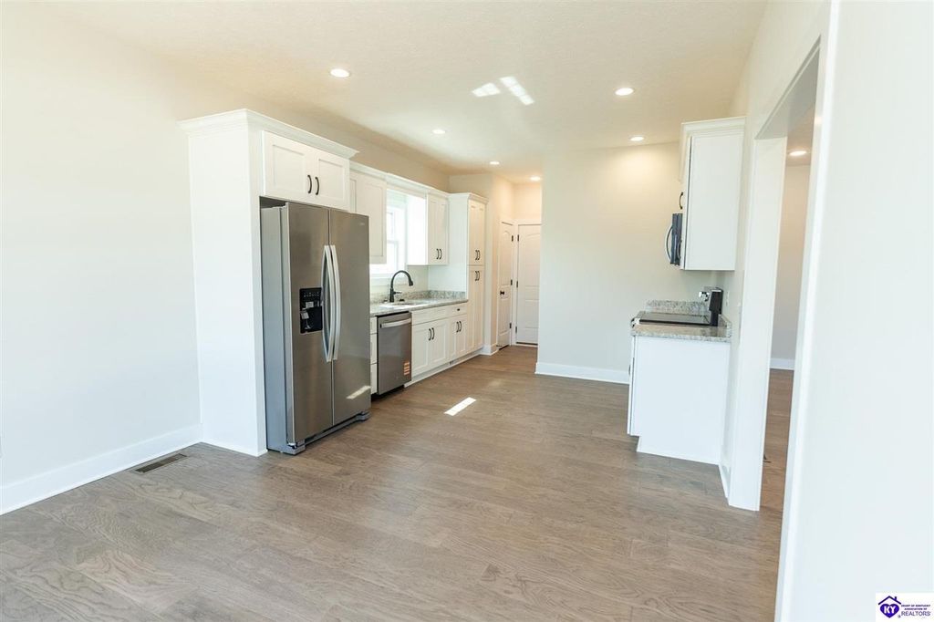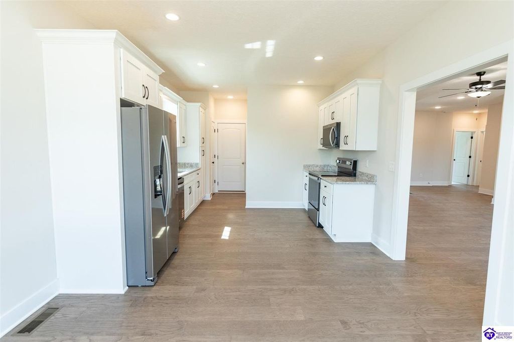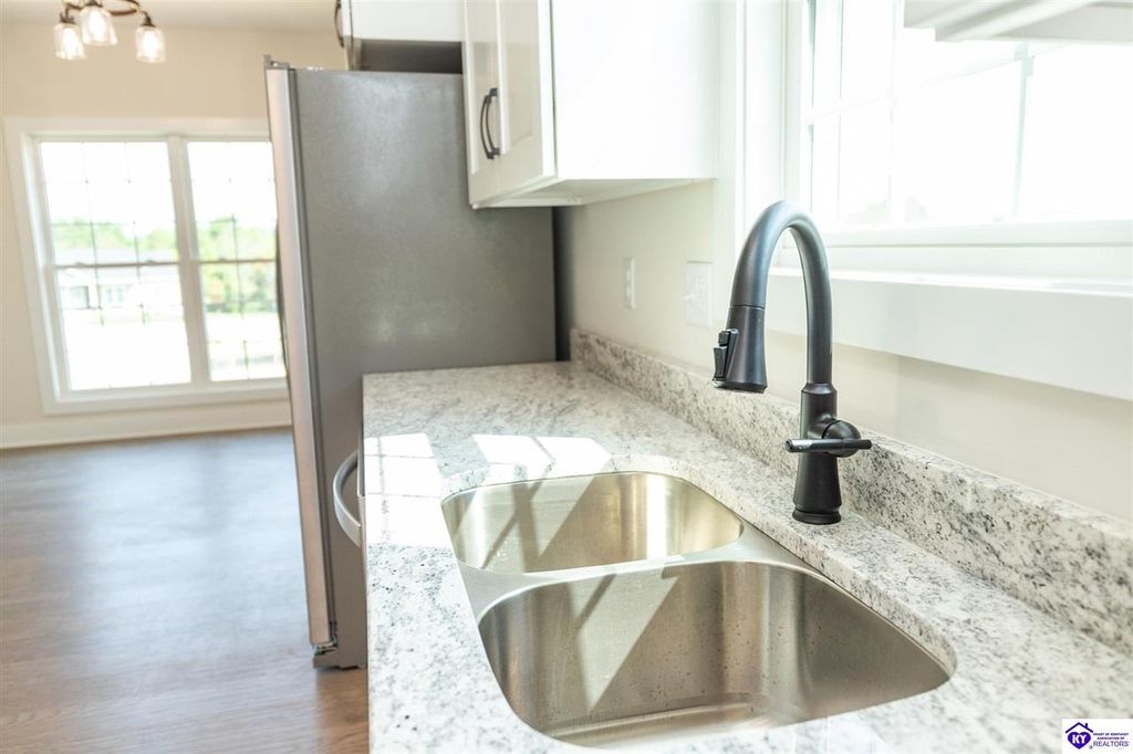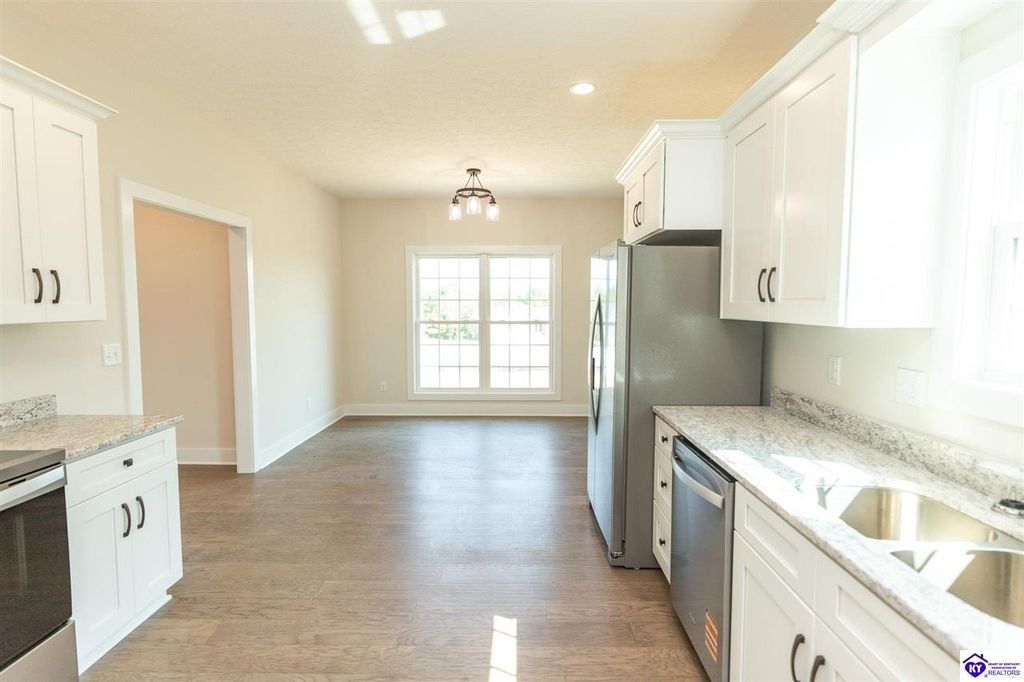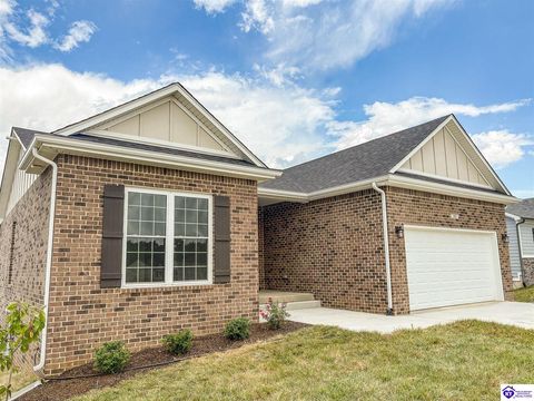 **Seller will pay up to $8,500 in buyer concessions with acceptable offer. Come tour this wonderful new construction 3 bedroom, 2 bath home located in one of the most sought after neighborhoods in Elizabethtown and built by one of the best local builders. The great room, kitchen, dining room and hall all feature hand scraped hardwood floors. Both bathrooms have ceramic tile floors and the bedrooms have carpet. The fully appointed kitchen has stainless steel appliances, granite countertops, white shaker stye cabinets, and a pantry. The combined kitchen and dining area have plenty of room for family and friends. The living area is very cozy and can be set up in multiple ways depending on your entertaining needs. The primary suite is large with plenty of room for a king size bed. The primary bath has a tiled shower and nice cultured marble countertop. Downstairs you will find the unfinished walk out basement. It is already rough plumbed for a full bathroom to make finishing it out easy and cost effective. There is space to add another bedroom, an additional living space, game room, theater, or some other use you may enjoy. The seller has installed a radon mitigation system in the home. The yard is very nice and the neighborhood is close to all the amenities of Elizabethtown, Fort Knox, and the Blue Oval factory. Don't let this lovely home slip away. Schedule your private showing today.