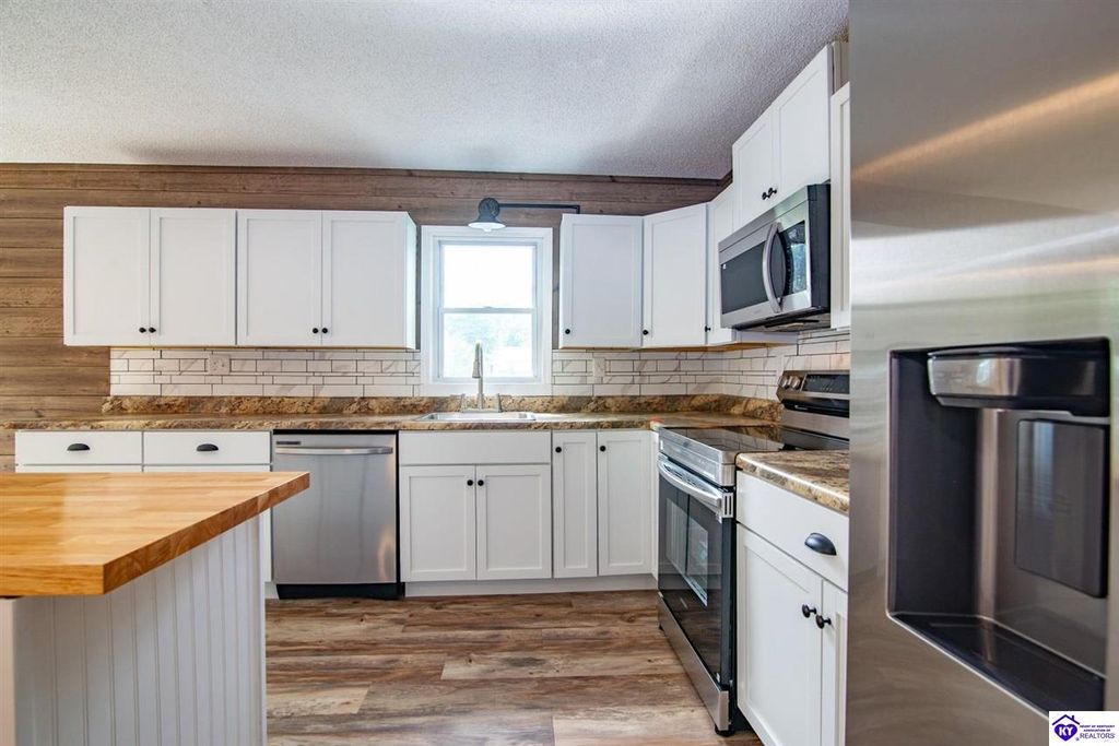 Very nice starter home or rental. with 2 bedrooms and a possible 3rd. A kitchen/dining combo that is big, remodeled with new cabinets and appliances, an island, and large enough for the entire family. Nice size living room, bedrooms, and a laundry room on the main floor! full, unfinished basement. Nice deck overlooking the fenced back yard, and a one car garage! all of this in the city limits and city schools for $209,900.