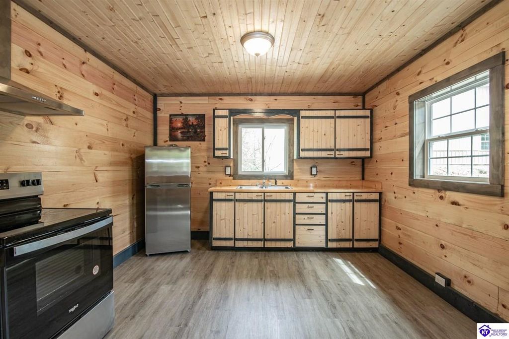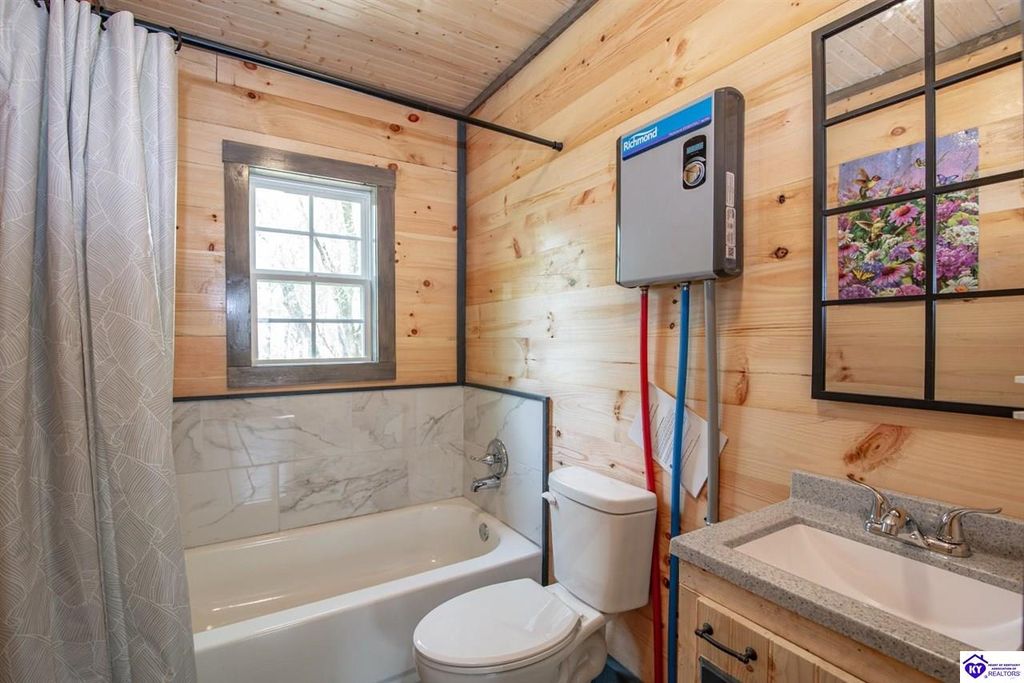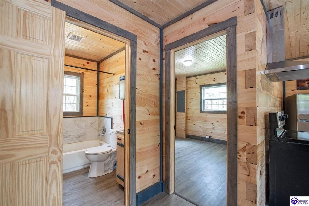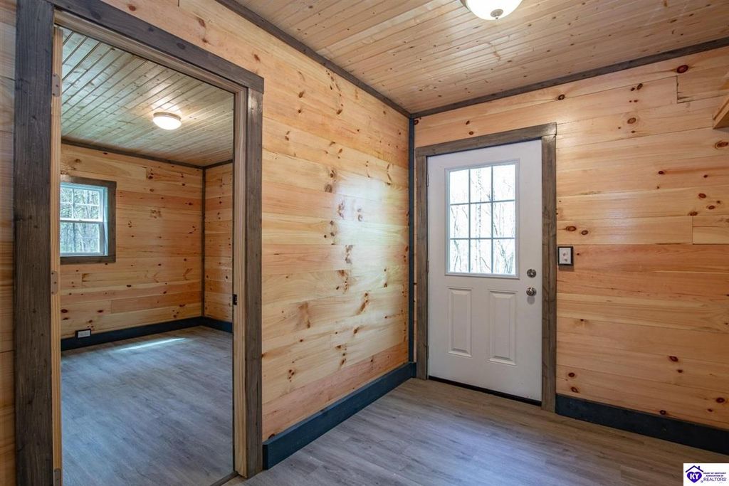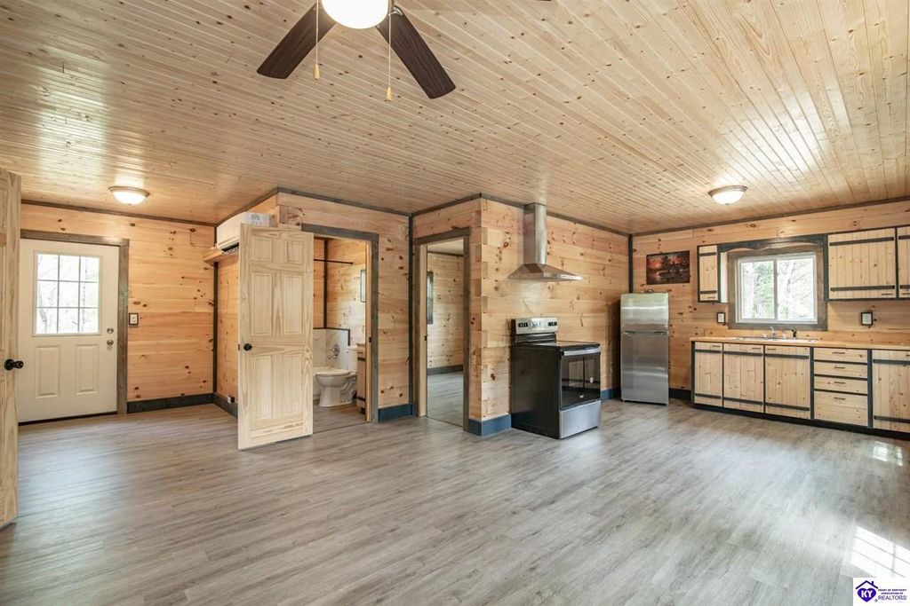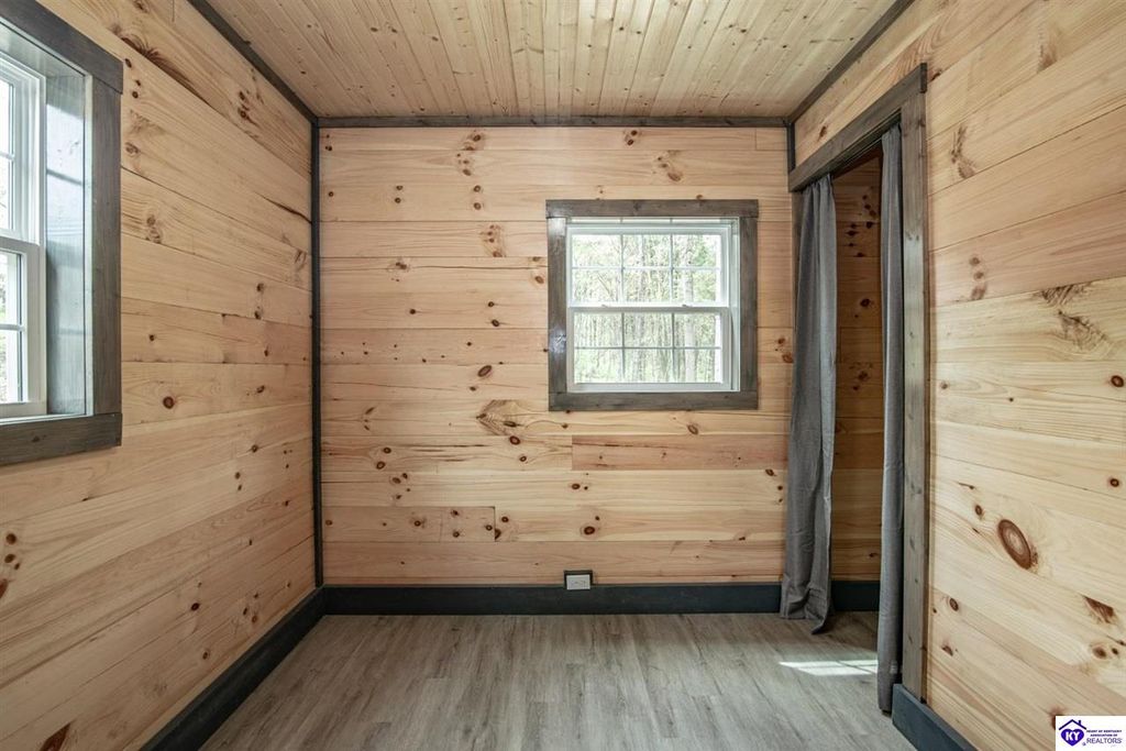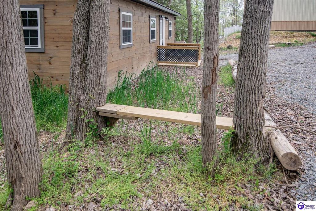 Tucked away in a peaceful setting near Barren River, this brand-new white pine log cabin sits on over half an acre, spanning 4 lots, and blends timeless rustic style with modern conveniences. Just 4 minutes from Walnut Creek Marina, the home offers 3 spacious bedrooms and 2 full baths, thoughtfully finished with custom cabinetry. Comfort is ensured year-round with a Denali mini split heating and cooling system and a tankless water heater. Whether you're seeking a private getaway or a place to call home, this retreat offers the perfect balance of space, relaxation, and accessibility - only an hour and a half from Nashville and two hours from Louisville.