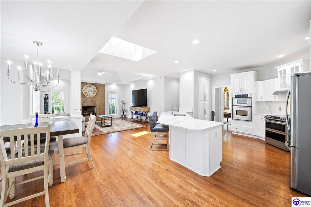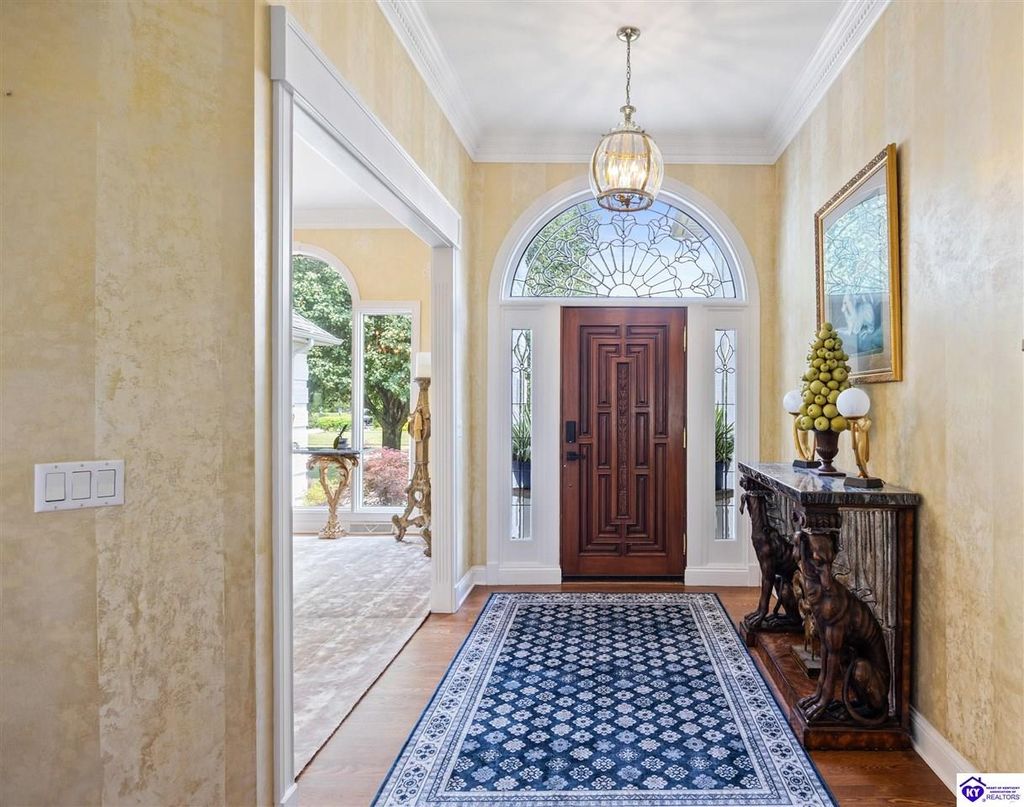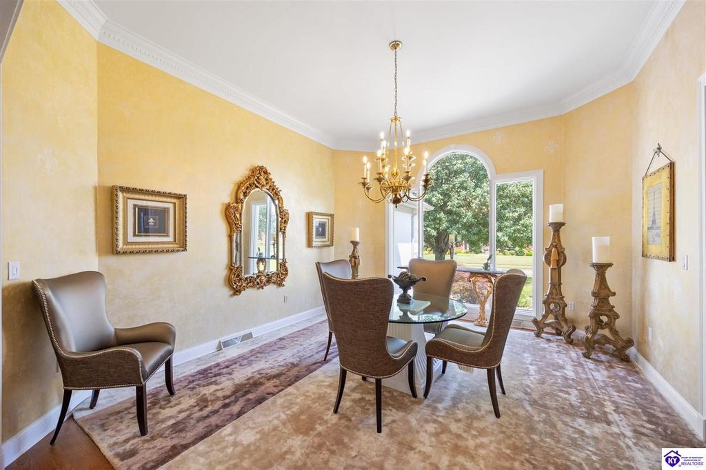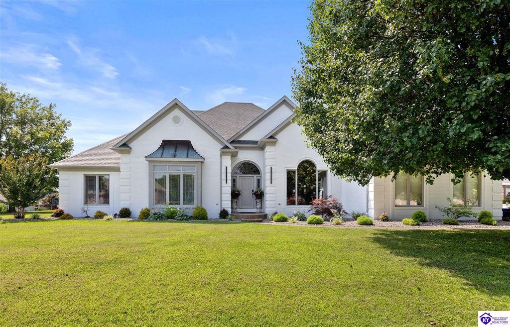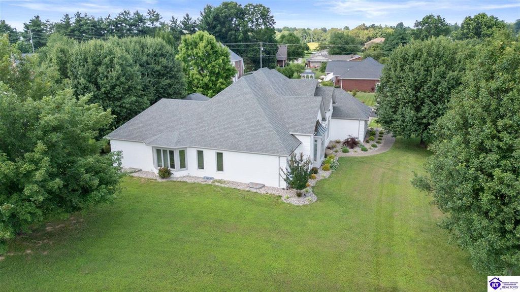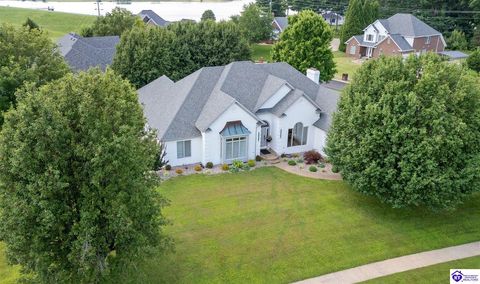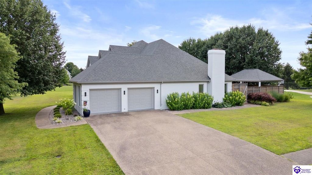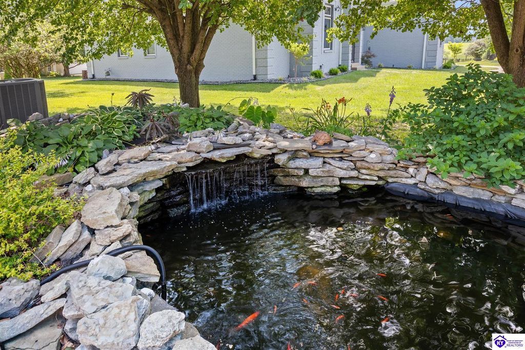 Welcome to a rare blend of timeless elegance & lakeside luxury. This beautifully updated, custom-crafted retreat is in one of Elizabethtown's most coveted neighborhoods. The elegant home sits proudly on a scenic corner lot directly across from the beautifully revitalized Freeman Lake Park - featuring brand new tennis courts, playground, amphitheater, and miles of walking and biking trails just steps from your front door. From the moment you arrive, the striking architecture and manicured grounds create an immediate sense of elevated living. Inside, natural light floods the expansive layout, where soaring ceilings, designer finishes, and rich hardwood floors meet an atmosphere of quiet sophistication. The grand primary suite features four closets, a charming bay window, and a private bonus room perfect for an office, nursery, or fitness space. The indulgent spa-inspired bath is finished with an oversized shower with luxe spray features and sleek, anti-fog illuminated mirrors. Downstairs, a thoughtfully designed lower level blends comfort and versatility with multiple flex rooms, a private theater, and a stylish kitchenette, perfect for extended guests or relaxed evenings at home. Outdoors, your private backyard oasis awaits with a tranquil koi pond, a custom luxurious pavilion, and two expansive side yards to offer even more possibilities. From the thoughtful upgrades to the unbeatable access to recreation, this home truly has it all. The current owners have poured love and pride into every update, and now it's ready to become your dream home. Schedule your private tour today.
