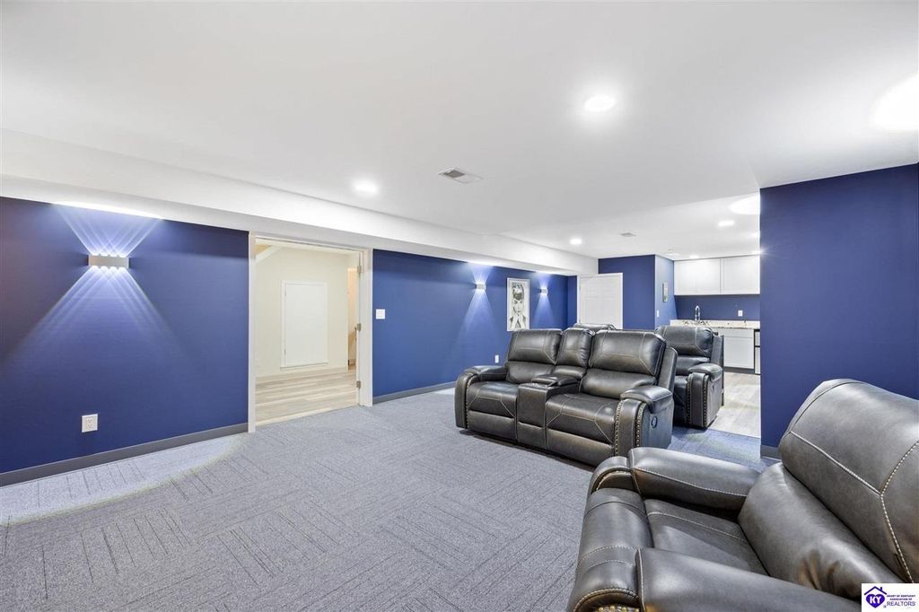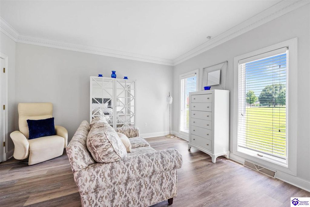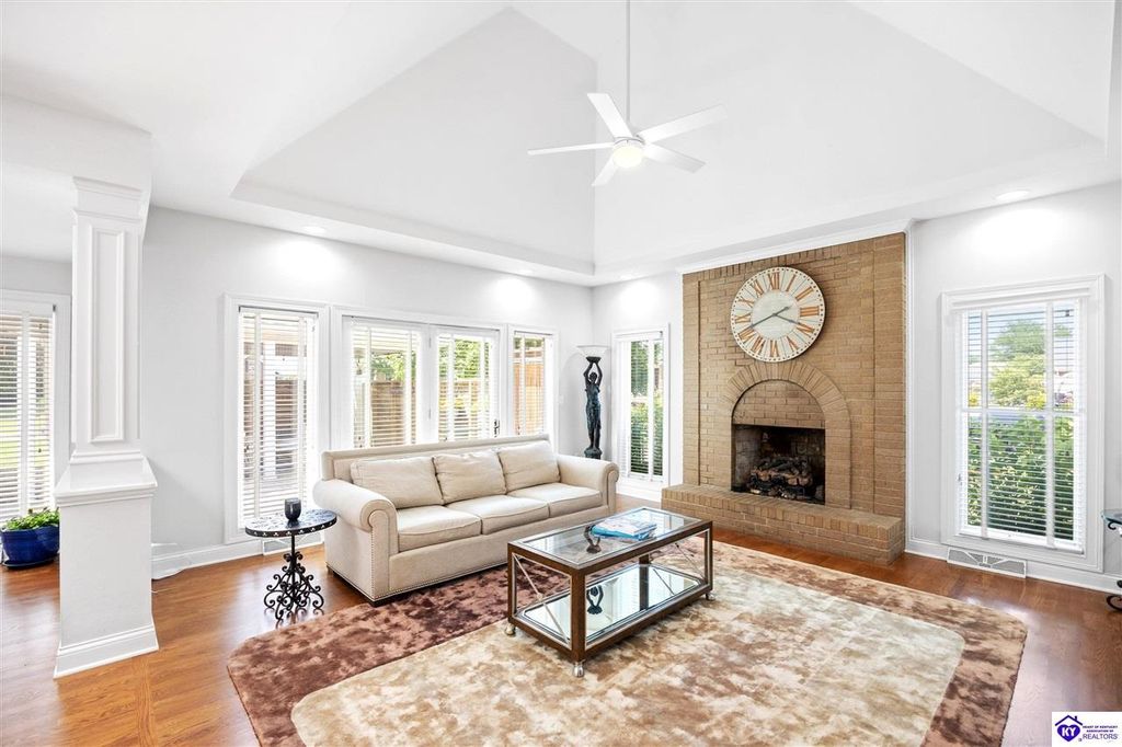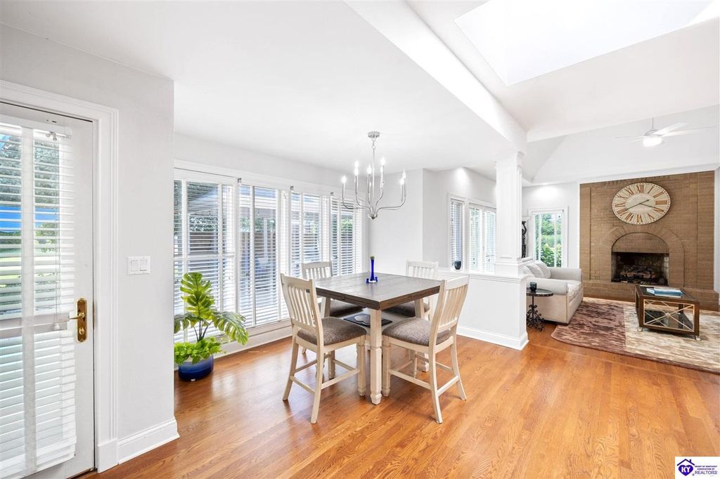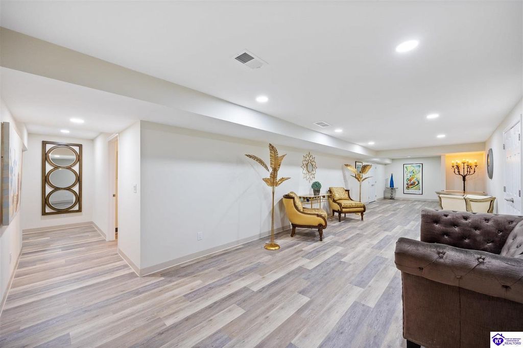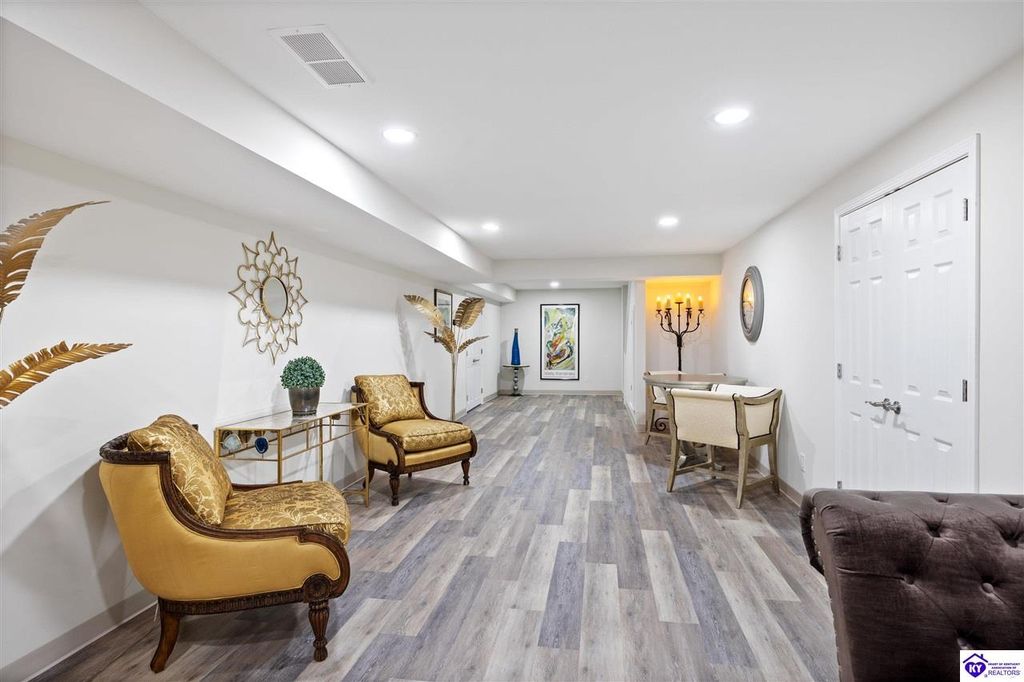 Welcome to a rare blend of timeless elegance & lakeside luxury. This beautifully updated, custom-crafted retreat is in one of Elizabethtown's most coveted neighborhoods. The elegant home sits proudly on a scenic corner lot directly across from the beautifully revitalized Freeman Lake Park - featuring brand new tennis courts, playground, amphitheater, and miles of walking and biking trails just steps from your front door. From the moment you arrive, the striking architecture and manicured grounds create an immediate sense of elevated living. Inside, natural light floods the expansive layout, where soaring ceilings, designer finishes, and rich hardwood floors meet an atmosphere of quiet sophistication. The grand primary suite features four closets, a charming bay window, and a private bonus room perfect for an office, nursery, or fitness space. The indulgent spa-inspired bath is finished with an oversized shower with luxe spray features and sleek, anti-fog illuminated mirrors. Downstairs, a thoughtfully designed lower level blends comfort and versatility with multiple flex rooms, a private theater, and a stylish kitchenette, perfect for extended guests or relaxed evenings at home. Outdoors, your private backyard oasis awaits with a tranquil koi pond, a custom luxurious pavilion, and two expansive side yards to offer even more possibilities. From the thoughtful upgrades to the unbeatable access to recreation, this home truly has it all. The current owners have poured love and pride into every update, and now it's ready to become your dream home. Schedule your private tour today.