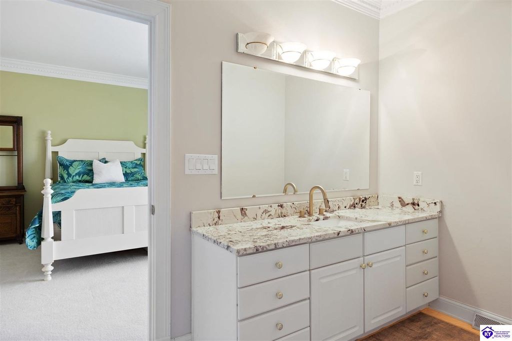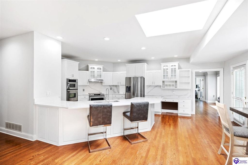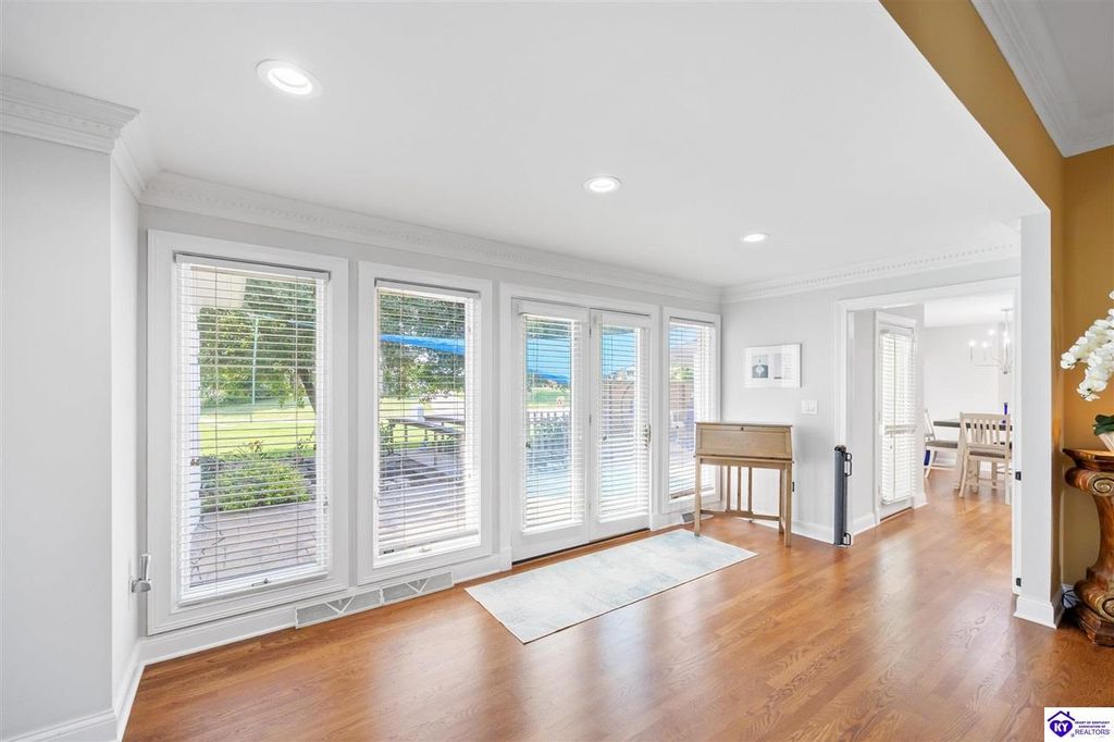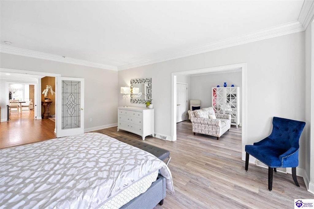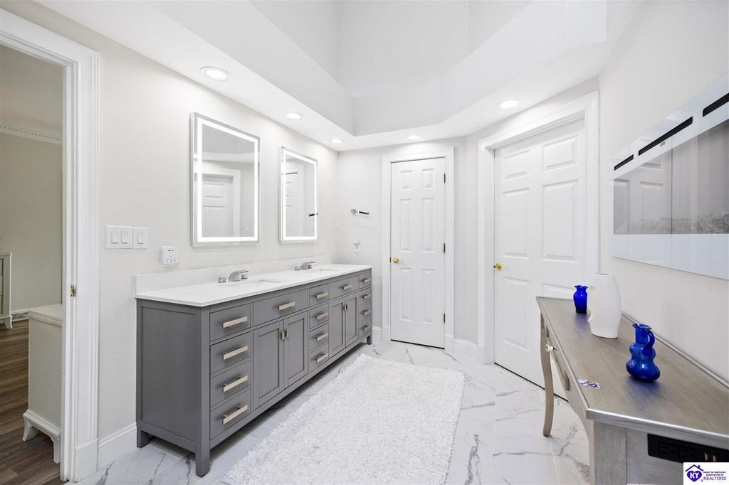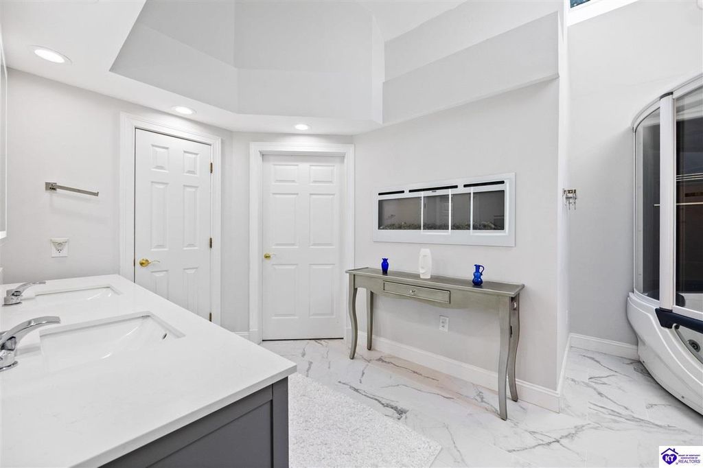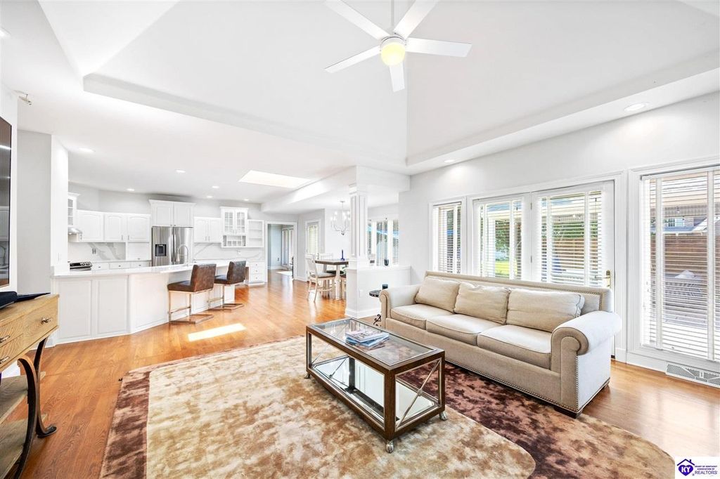 Welcome to a rare blend of timeless elegance & lakeside luxury. This beautifully updated, custom-crafted retreat is in one of Elizabethtown's most coveted neighborhoods. The elegant home sits proudly on a scenic corner lot directly across from the beautifully revitalized Freeman Lake Park - featuring brand new tennis courts, playground, amphitheater, and miles of walking and biking trails just steps from your front door. From the moment you arrive, the striking architecture and manicured grounds create an immediate sense of elevated living. Inside, natural light floods the expansive layout, where soaring ceilings, designer finishes, and rich hardwood floors meet an atmosphere of quiet sophistication. The grand primary suite features four closets, a charming bay window, and a private bonus room perfect for an office, nursery, or fitness space. The indulgent spa-inspired bath is finished with an oversized shower with luxe spray features and sleek, anti-fog illuminated mirrors. Downstairs, a thoughtfully designed lower level blends comfort and versatility with multiple flex rooms, a private theater, and a stylish kitchenette, perfect for extended guests or relaxed evenings at home. Outdoors, your private backyard oasis awaits with a tranquil koi pond, a custom luxurious pavilion, and two expansive side yards to offer even more possibilities. From the thoughtful upgrades to the unbeatable access to recreation, this home truly has it all. The current owners have poured love and pride into every update, and now it's ready to become your dream home. Schedule your private tour today.