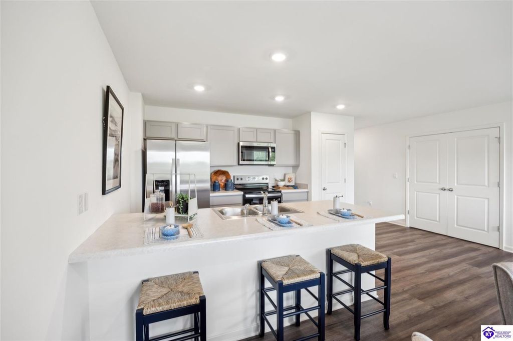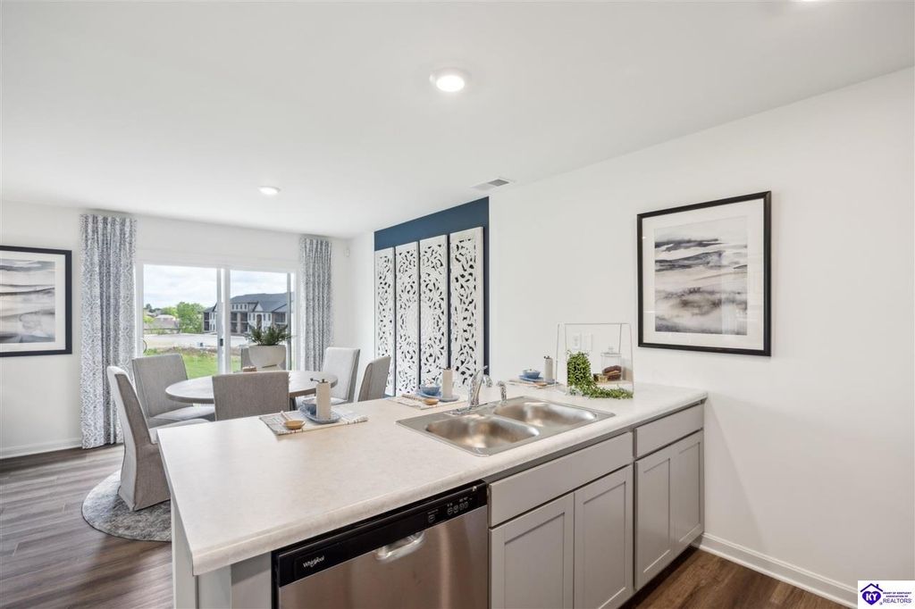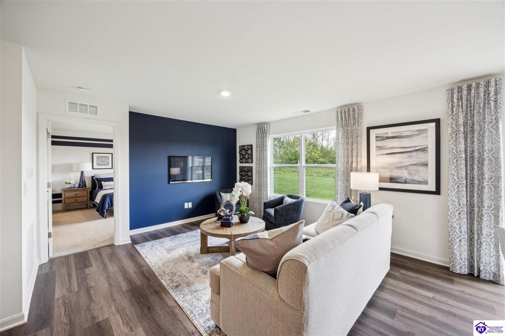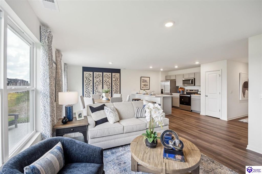 Looking for easy, one level living? The Freeport at Cowley Farms offers just that. With an open concept design that makes everyday life effortless, stylish yet durable LVP flooring flows throughout the main living spaces, seamlessly connecting them. The eat-in breakfast island is a perfect spot for family meals or entertaining friends. The primary suite is tucked away from three secondary bedrooms, giving everyone their own space. Attached two car garage and included smart home features for added convenience. Ideally located in the desirable Cowley Farms community, you are minutes away from Ft. Knox or the everyday conveniences of Elizabethtown. Start making memories in a home designed for today's lifestyle, schedule your tour today!