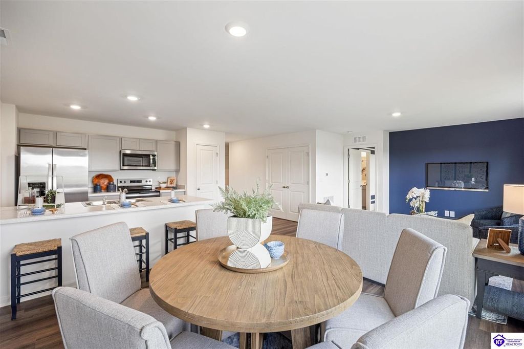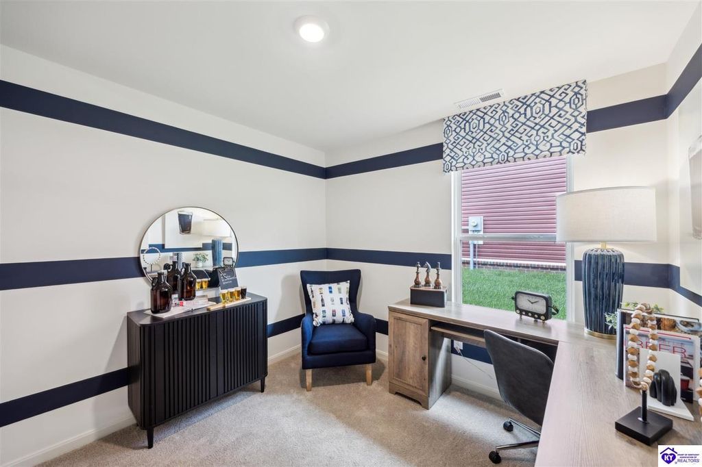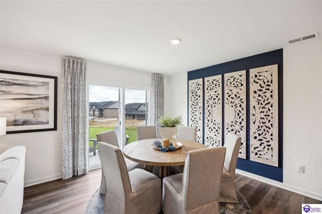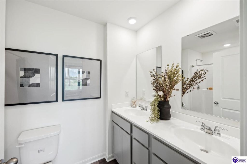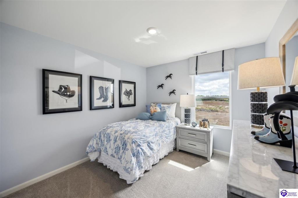 Looking for easy, one level living? The Freeport at Cowley Farms offers just that. With an open concept design that makes everyday life effortless, stylish yet durable LVP flooring flows throughout the main living spaces, seamlessly connecting them. The eat-in breakfast island is a perfect spot for family meals or entertaining friends. The primary suite is tucked away from three secondary bedrooms, giving everyone their own space. Attached two car garage and included smart home features for added convenience. Ideally located in the desirable Cowley Farms community, you are minutes away from Ft. Knox or the everyday conveniences of Elizabethtown. Start making memories in a home designed for today's lifestyle, schedule your tour today!