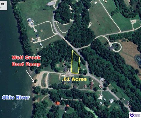 61 acre corner lot with a river view located in the Wolf Creek community of Meade County. This lot is located just down the street from Wolf Creek public boat ramp, it is zoned R1-Residential, has county water available and has been septic site test approved for a 3 bedroom septic system in 2022. This real estate fronts Rick Stansbury St., Bridge St. and Cedar Flat Rd. Per the FEMA flood map, there is a portion of the lot that is not located in the 100 year flood zone. Owner financing is available for qualified buyers.